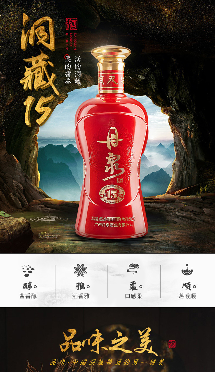 广西丹泉洞藏15 酱香型白酒53度500ml/1瓶/2瓶/6瓶整箱