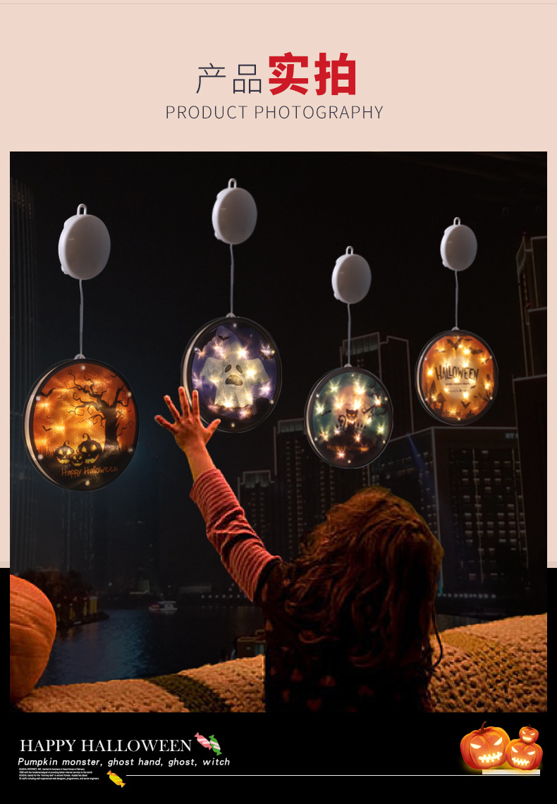 万圣节吸盘灯3个装 夜灯饰发光道具 装饰用品 挂饰/挂件/窗贴