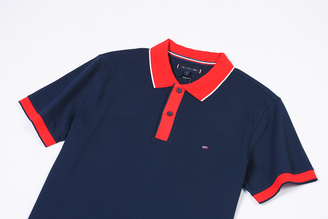 领后字母撞色边 微弹短袖POLO衫 特惠 T-1188