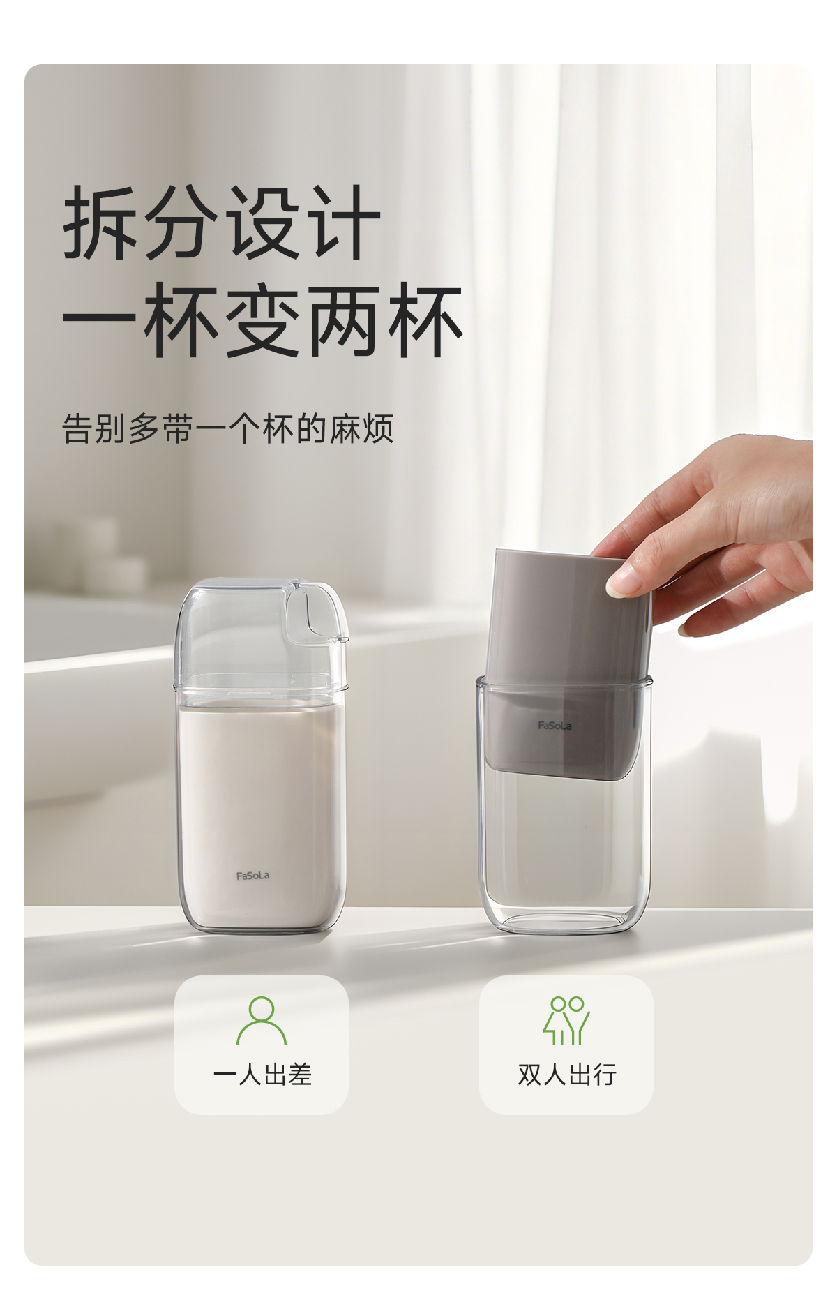 FaSoLa水杯旅行便携式杯子户外露营刷牙漱口杯可拆分亲扣旅行杯