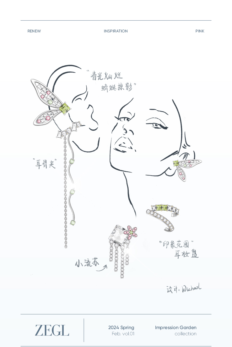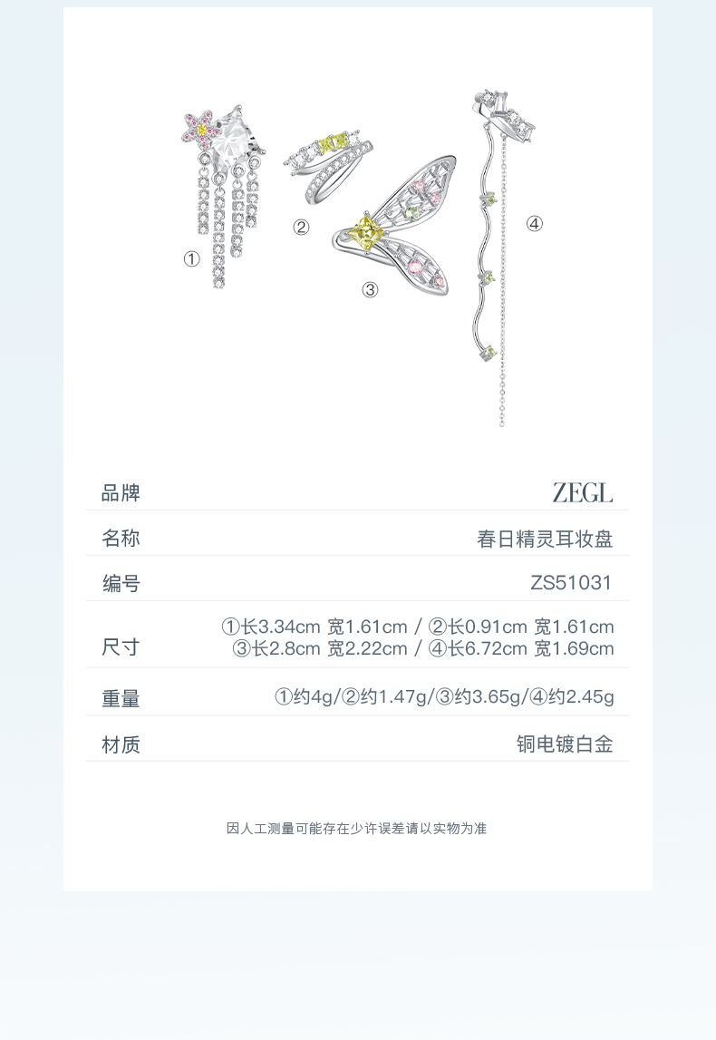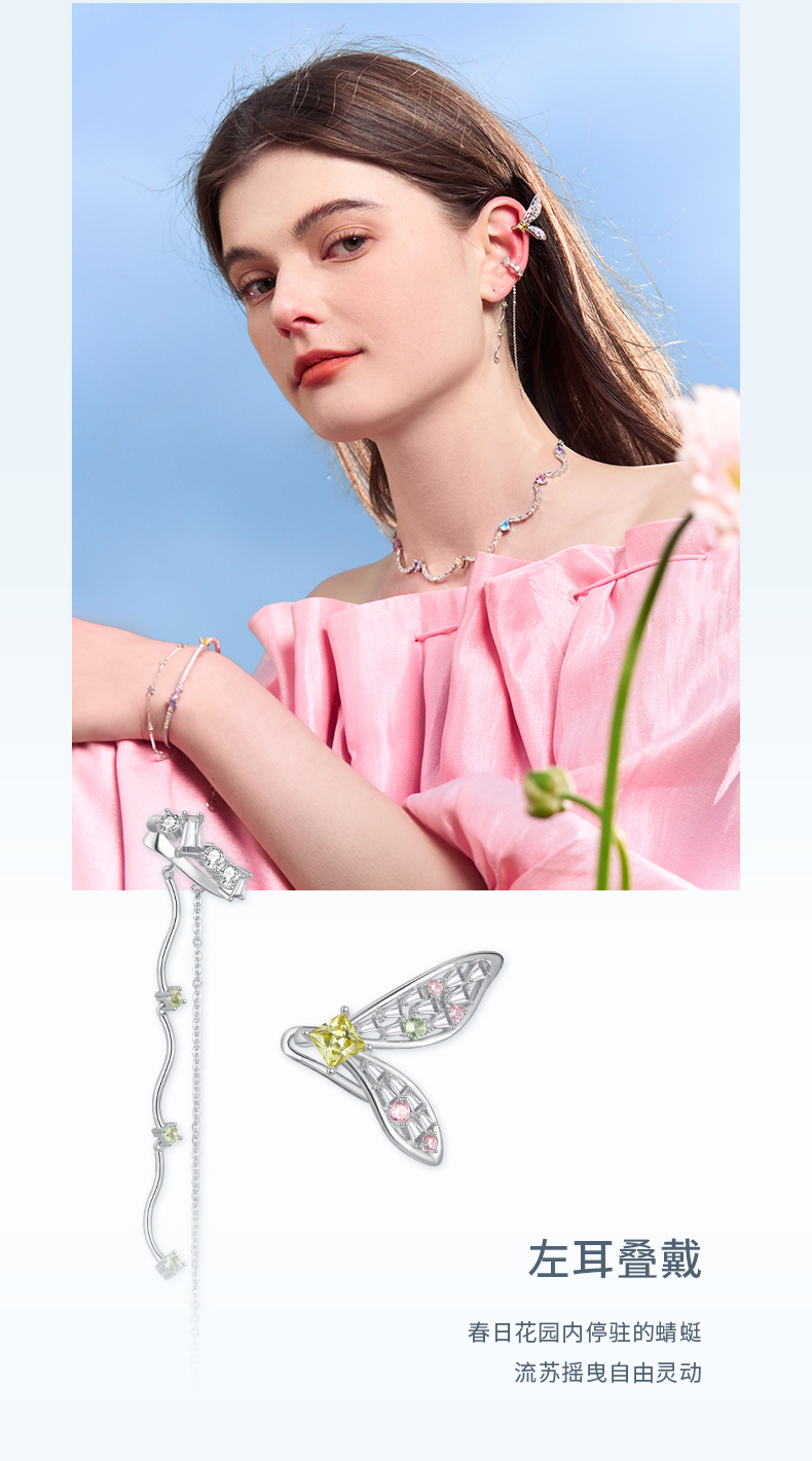 【ZEGL耳妆盘】印象花园系列蜻蜓蝴蝶耳环耳夹女无耳洞耳骨夹耳饰