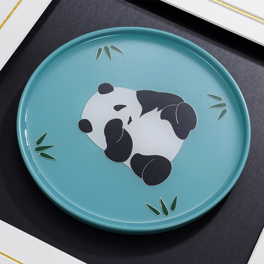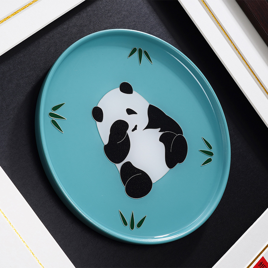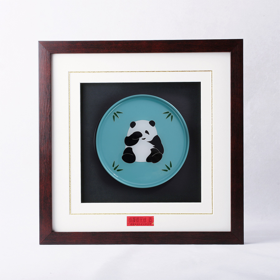子佩集纯手工制作熊猫系列银花丝珐琅掐丝挂画(含框 手工定制预售 20天出货)大师工坊原创设计2403
