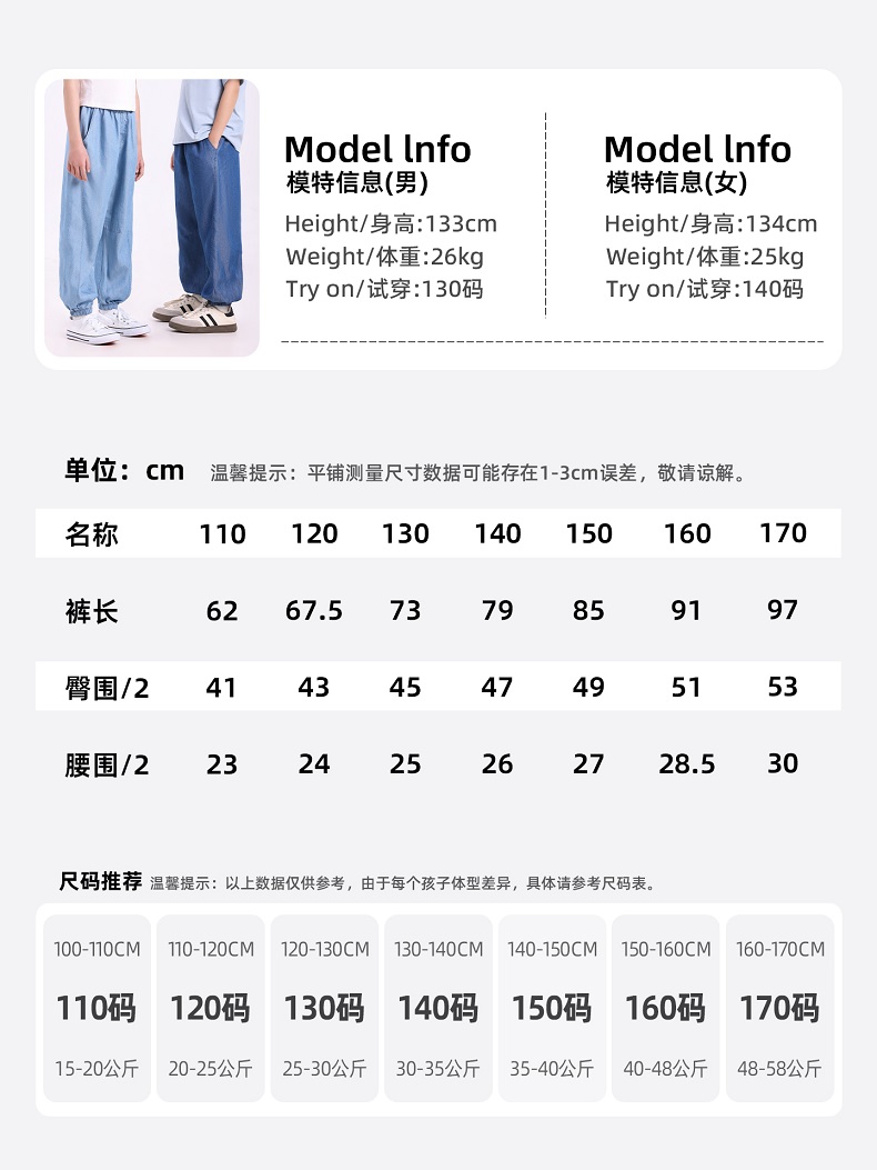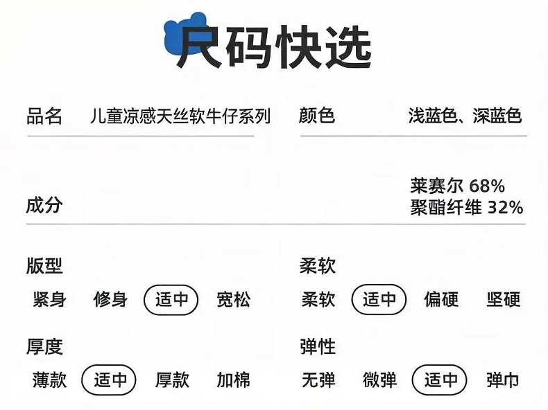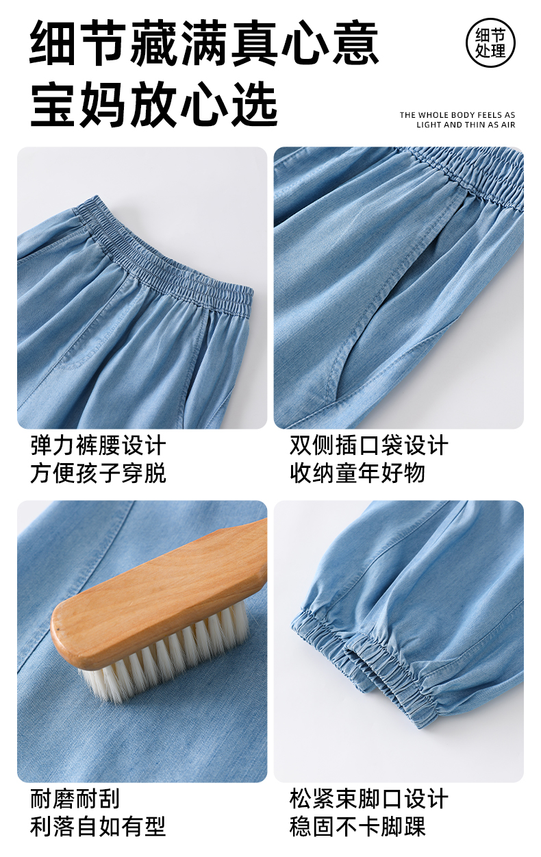 【UPF50+,接触冷感】夏季新款儿童天丝莱赛尔牛仔裤防蚊长裤裙子冷感防晒软牛仔系列
