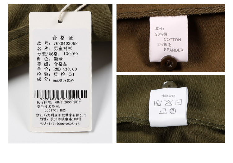 | 材质成分: 棉98% 聚氨酯弹性纤维(氨纶)2% |