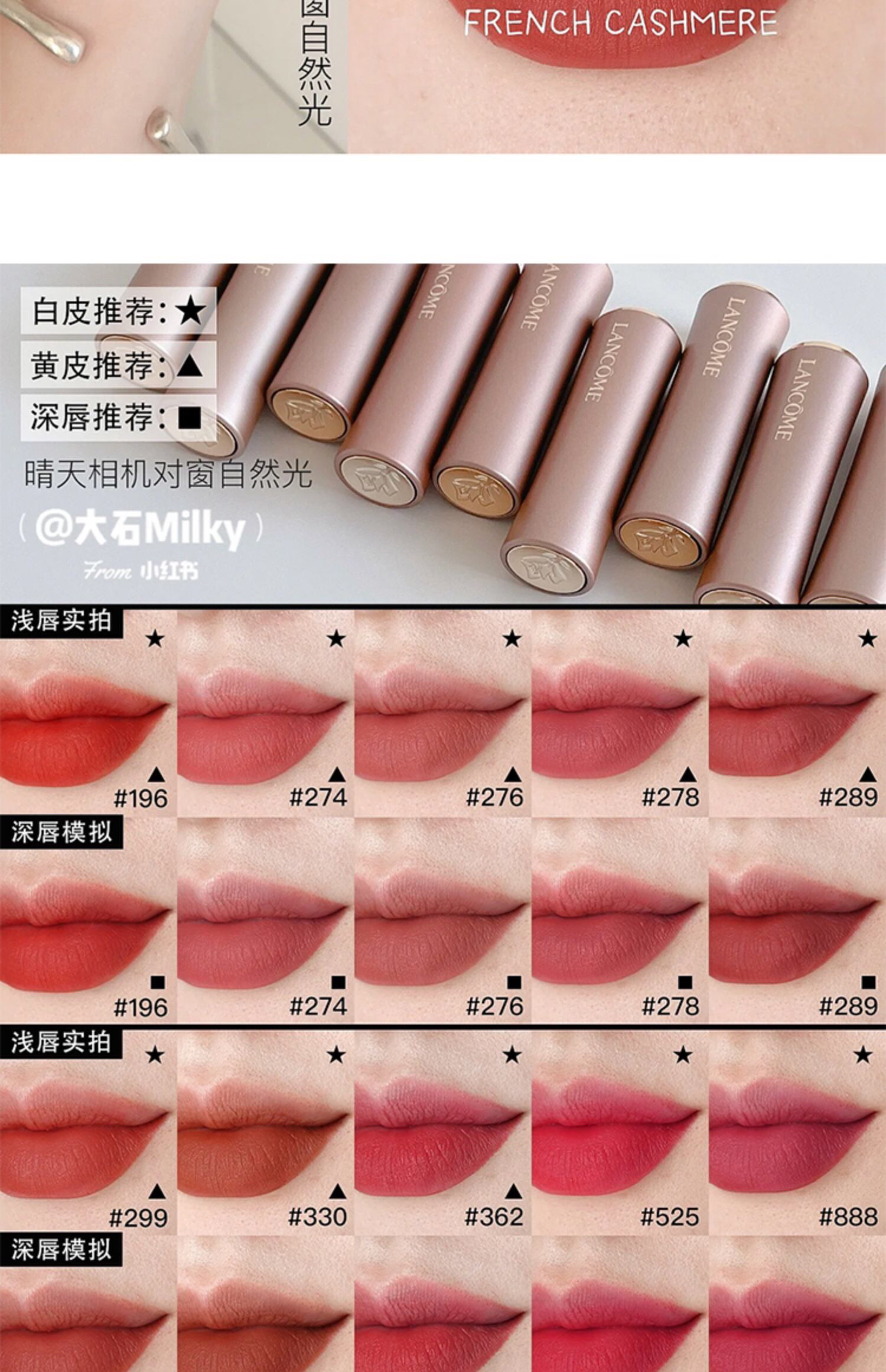 【海关保税直发】💄Lancome兰蔻小蛮腰粉金管口红-289 299 330 278 274 276-会员5折