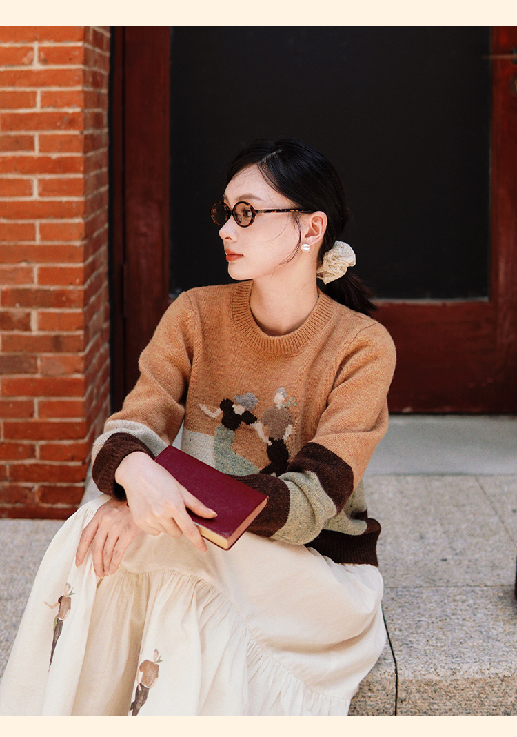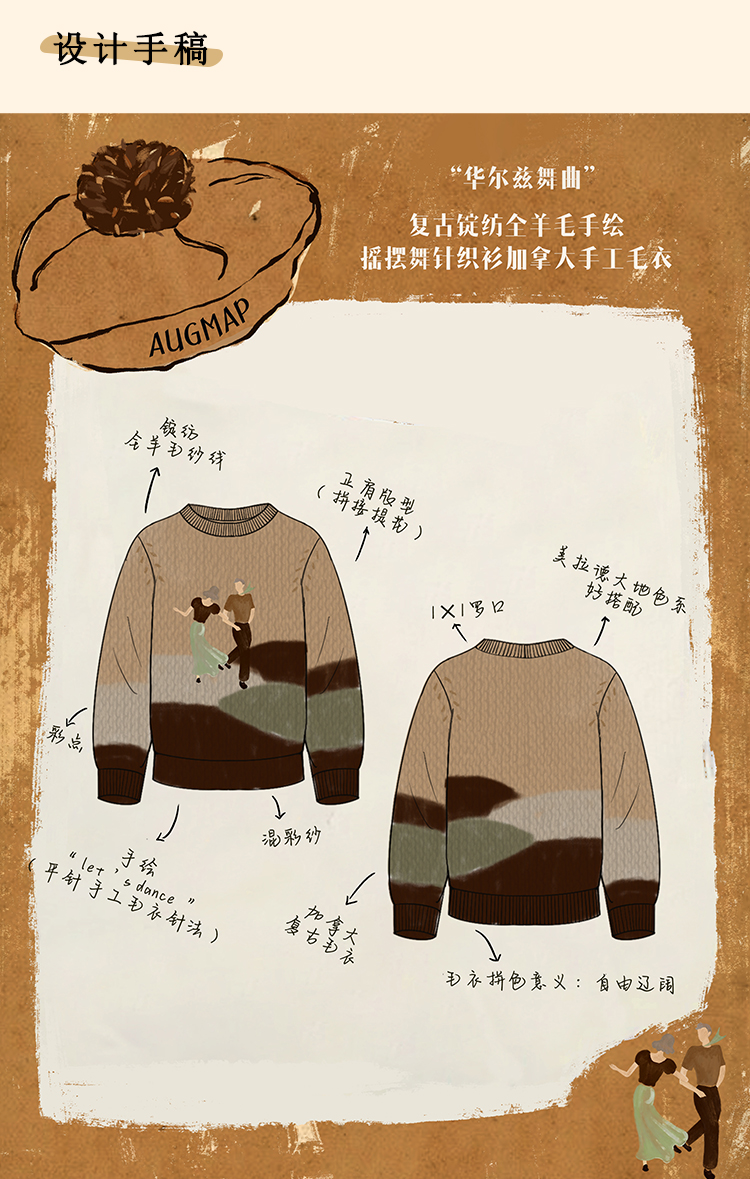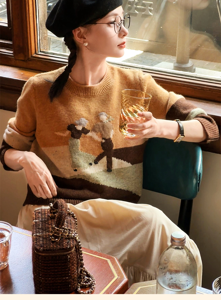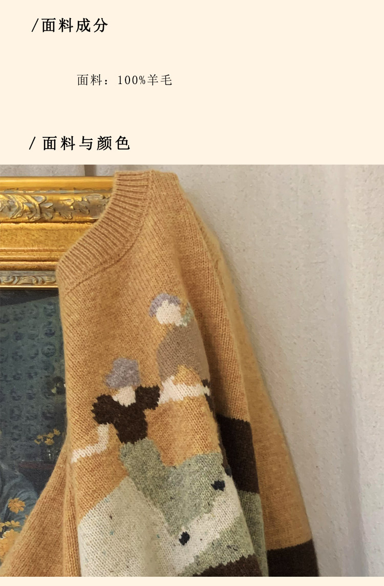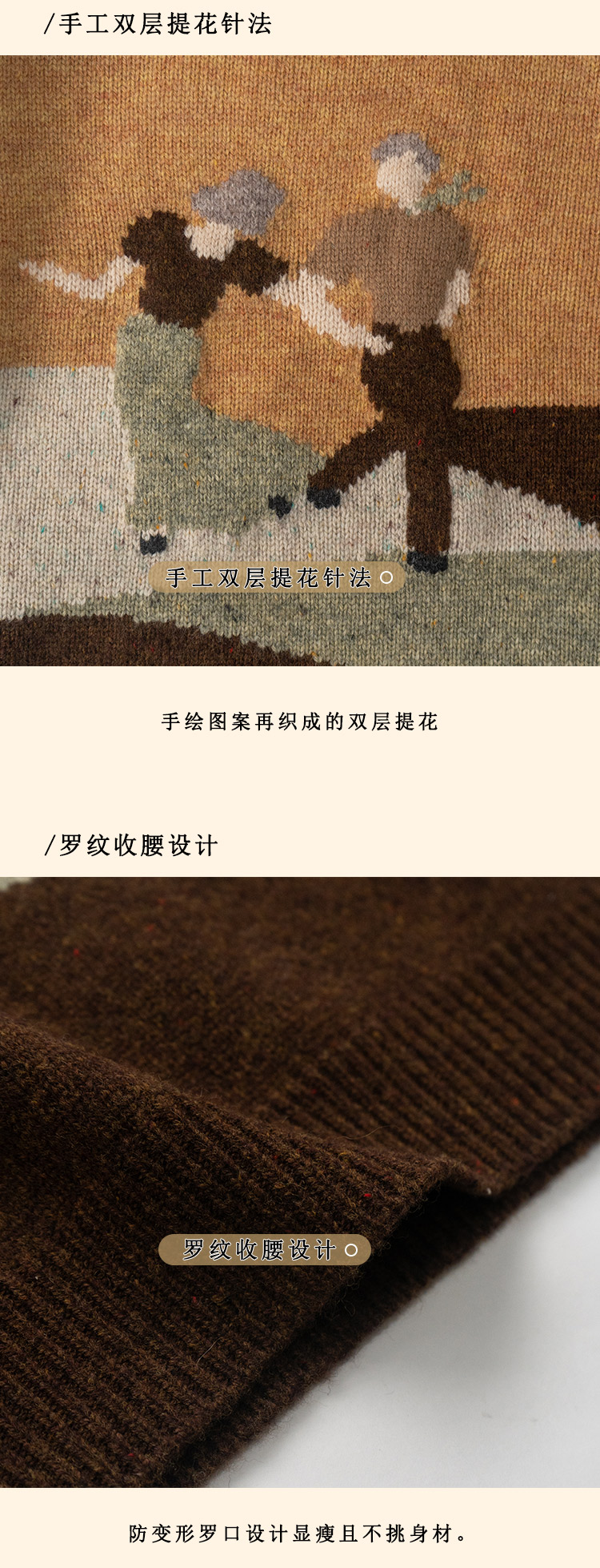 浮生八记/24D153/复古锭纺手绘摇摆舞针织衫加拿大手工毛衣