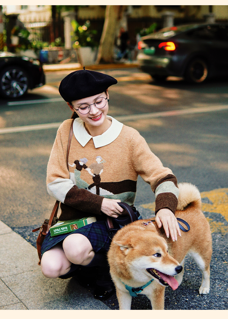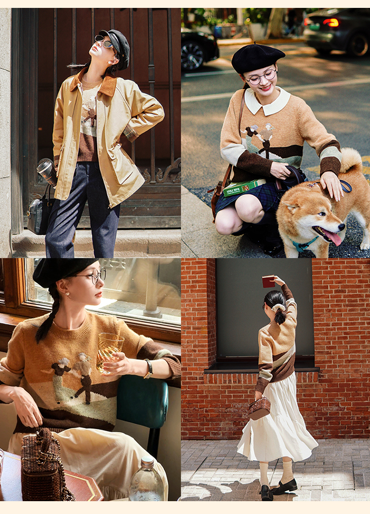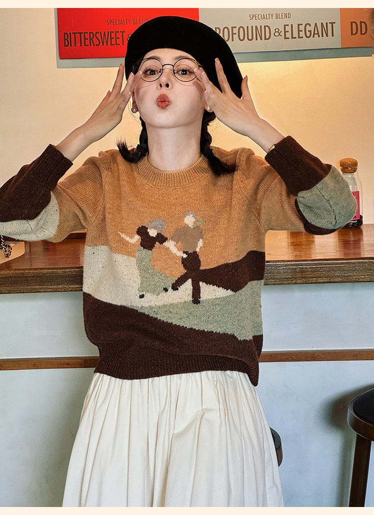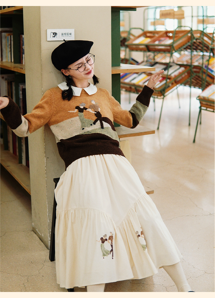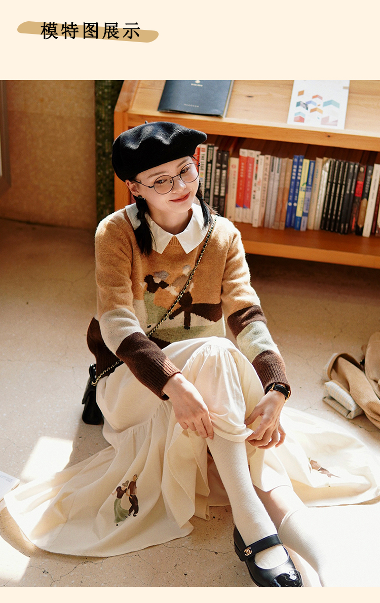 浮生八记/24D153/复古锭纺手绘摇摆舞针织衫加拿大手工毛衣