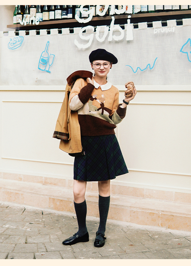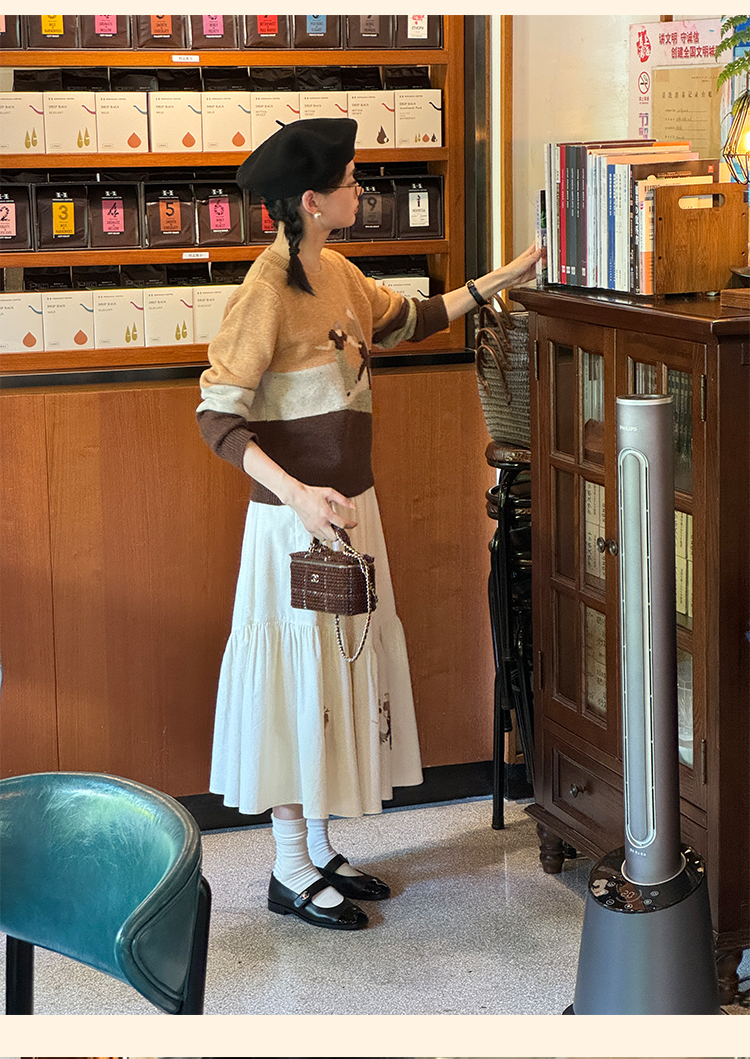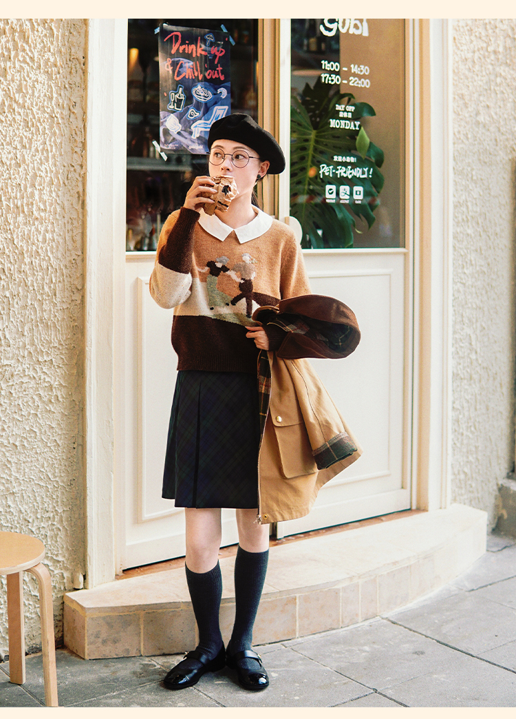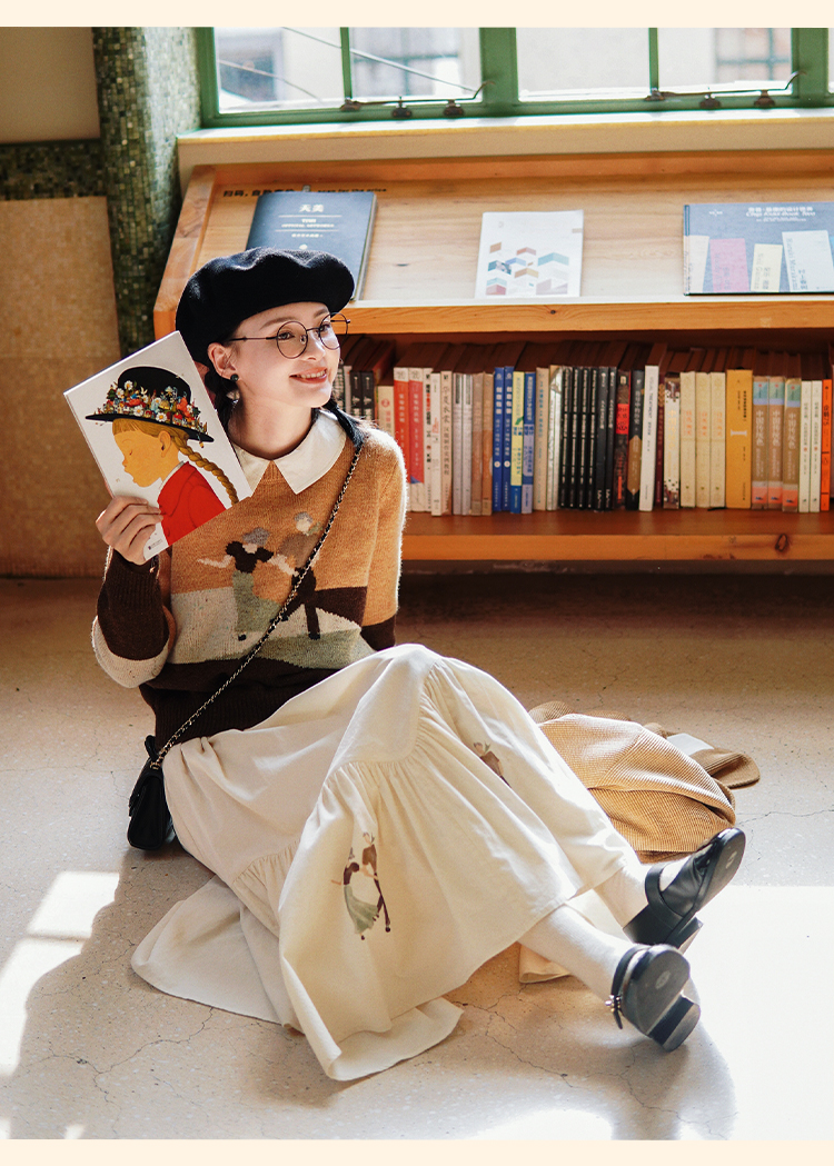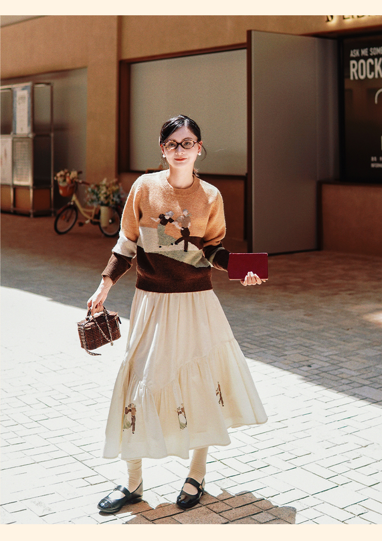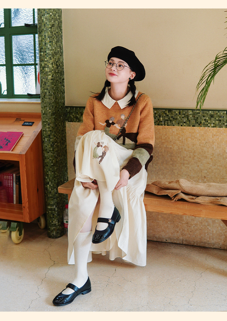 浮生八记/24D153/复古锭纺手绘摇摆舞针织衫加拿大手工毛衣
