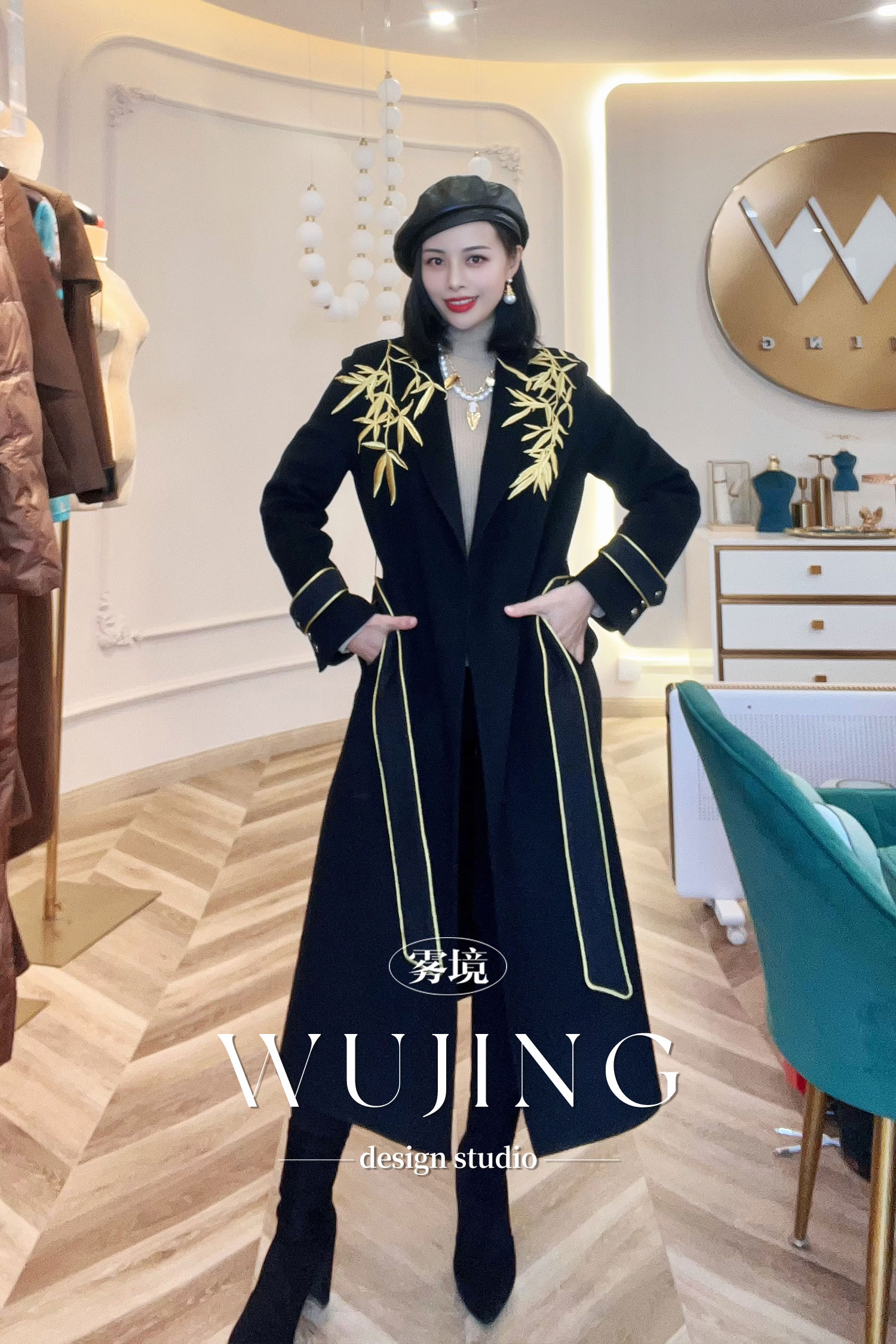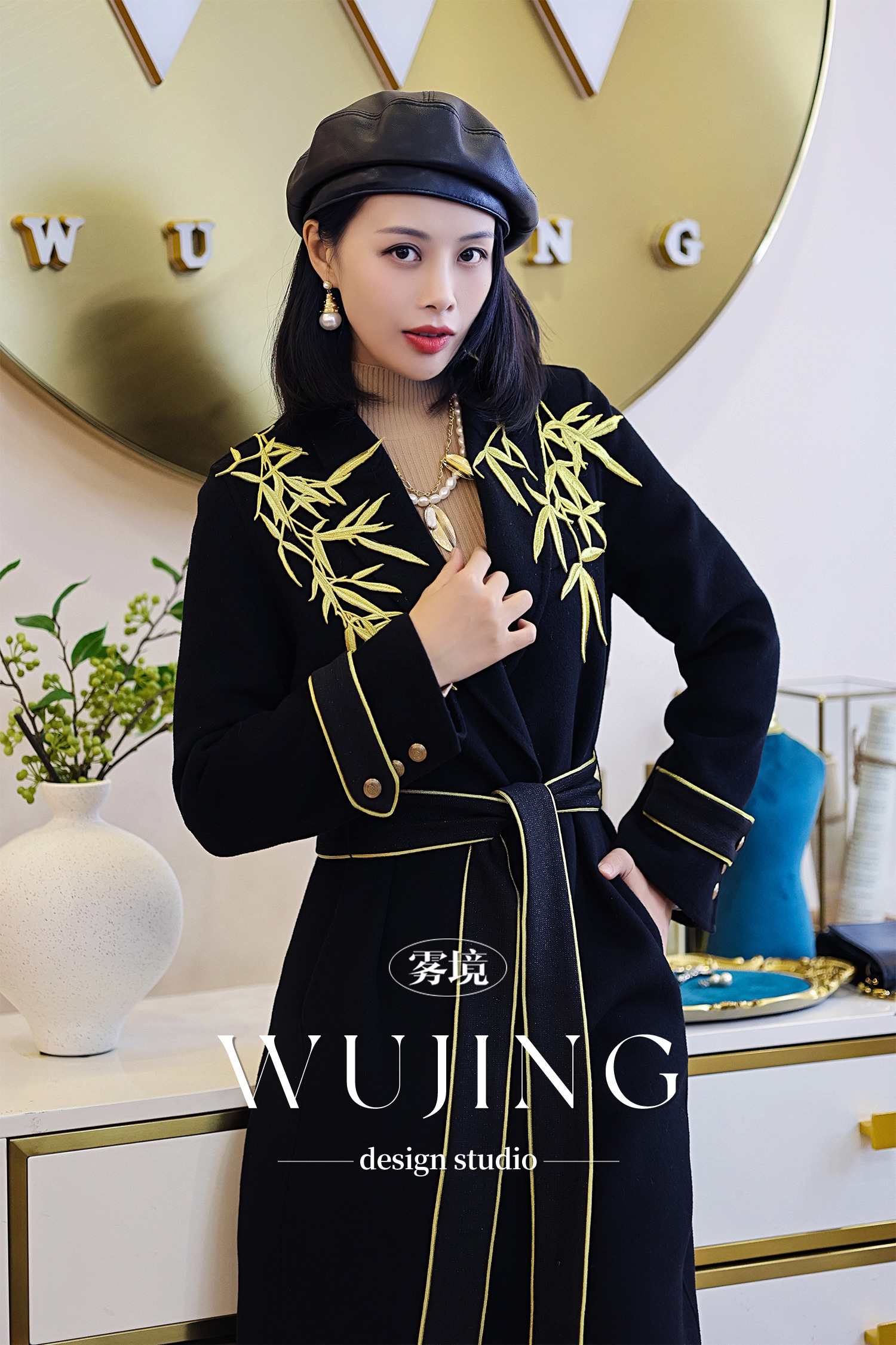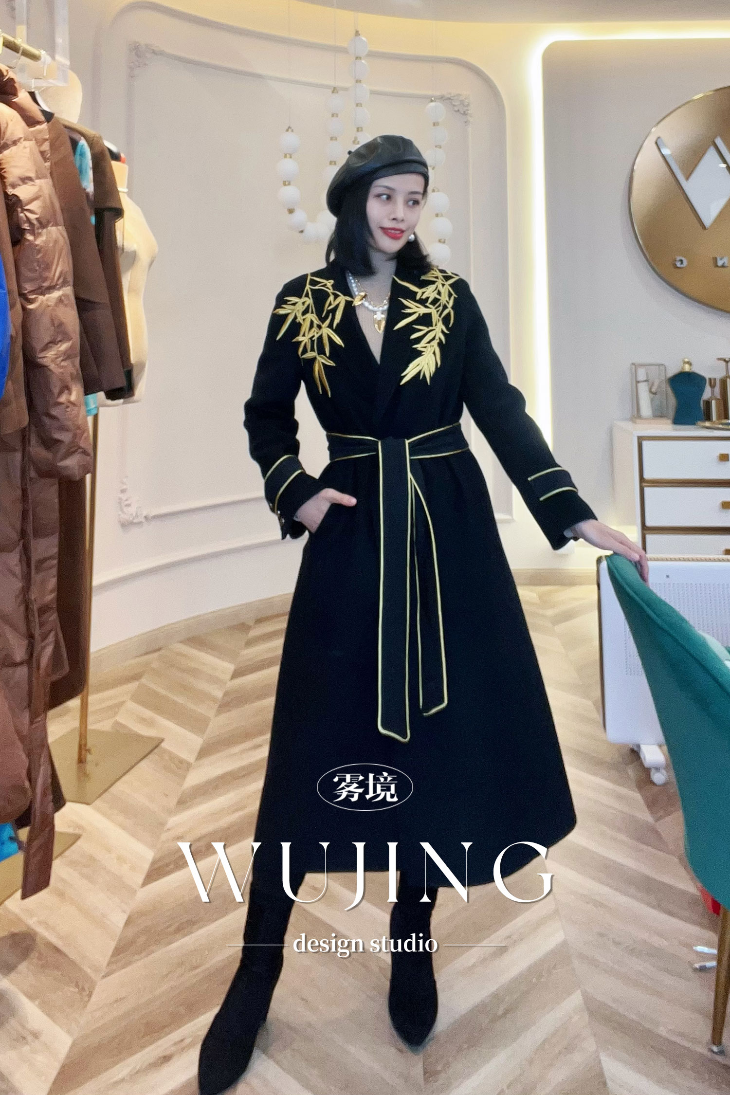 【雾境定制】限量款黑金锦竹霸气女王羊绒大衣 3203093