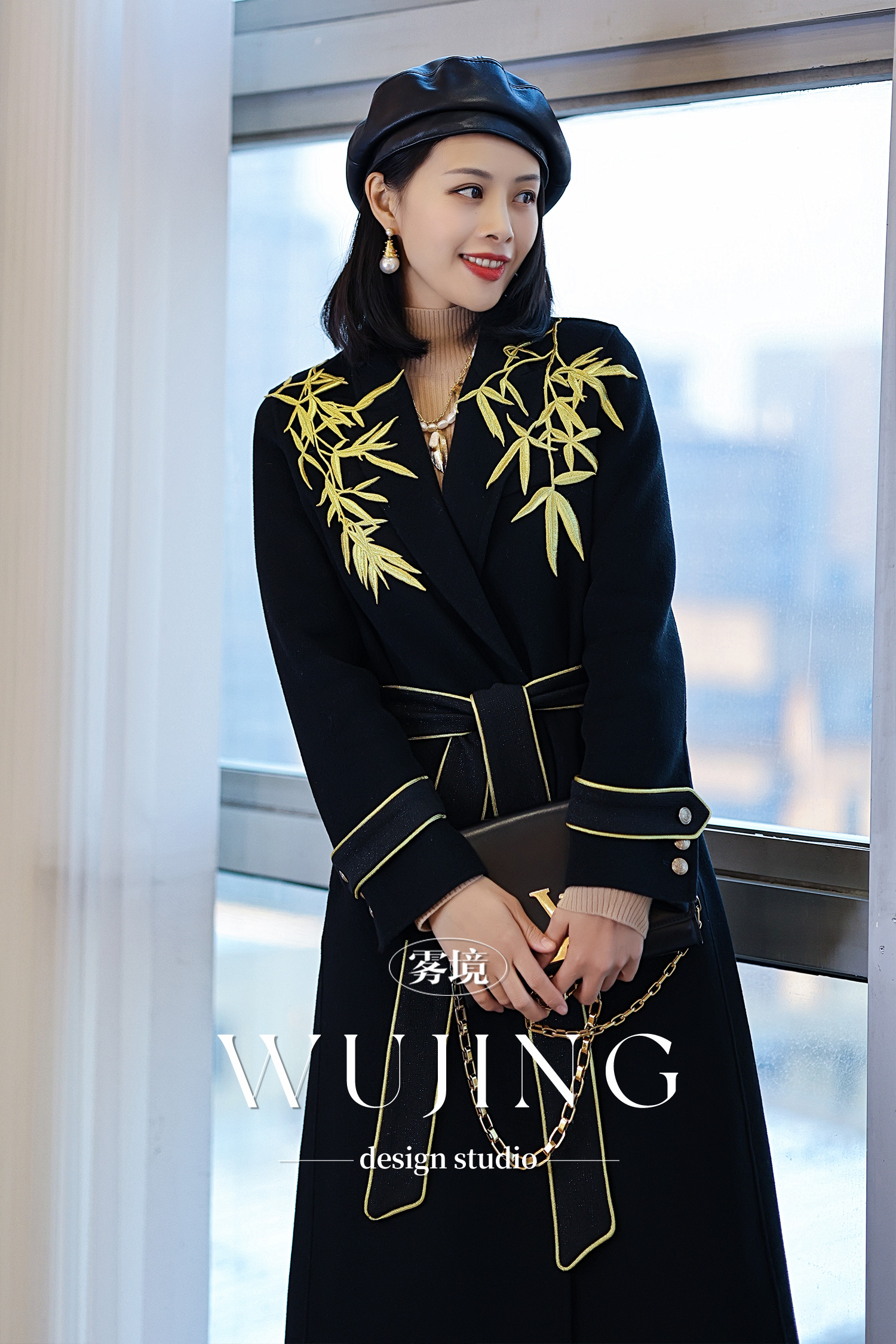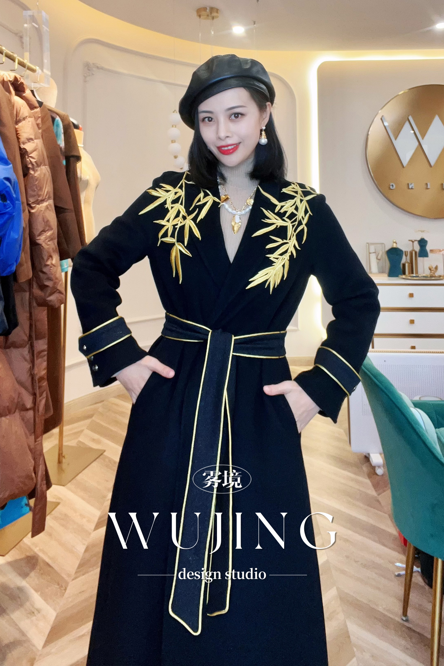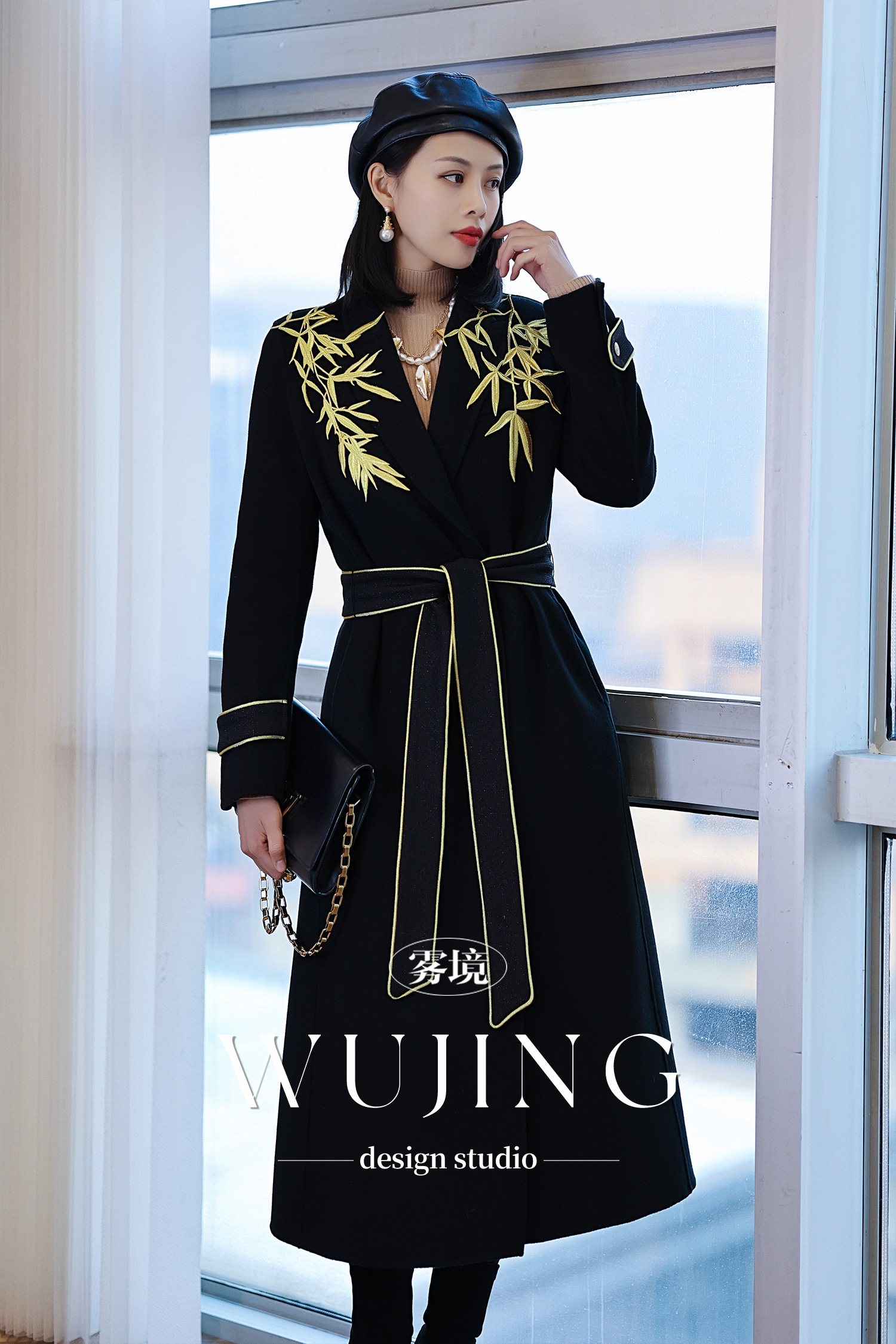 【雾境定制】限量款黑金锦竹霸气女王羊绒大衣 3203093