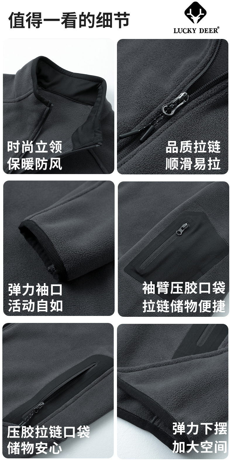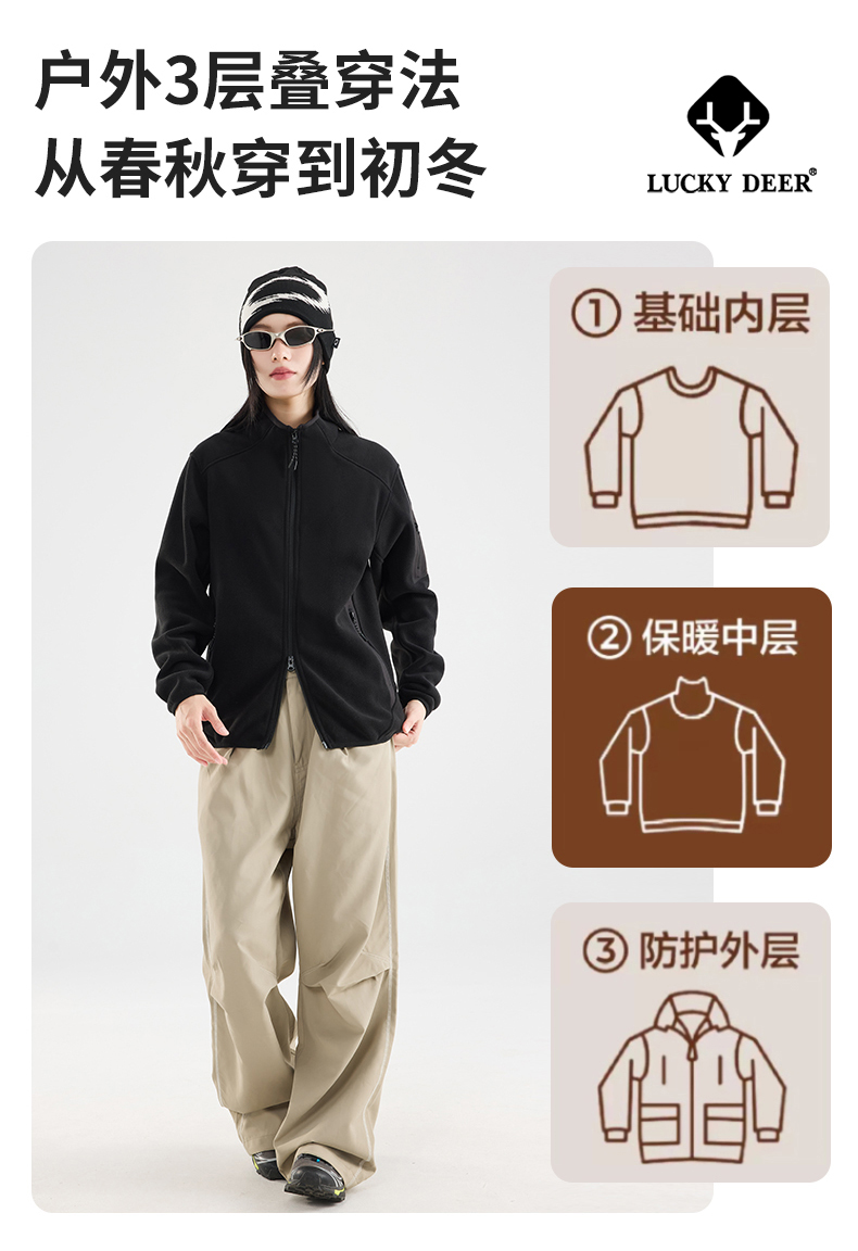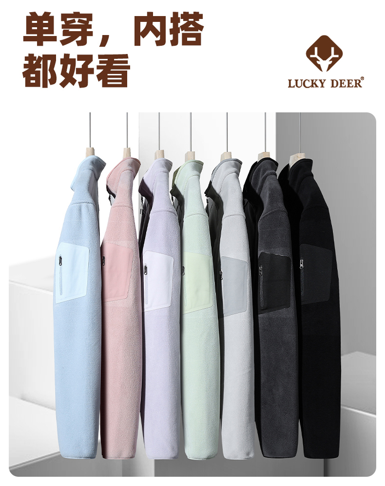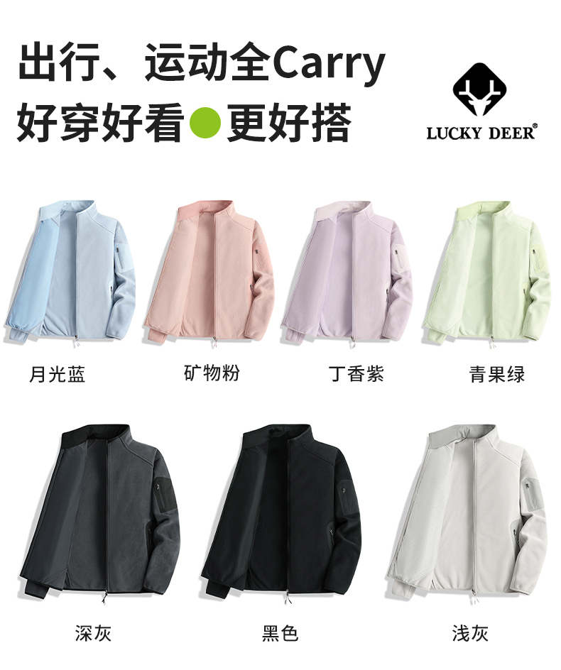 【秋冬新品!88元秒杀!】LUCKY DEER幸运鹿秋冬季时尚摇粒绒开衫外套户外轻保暖外套