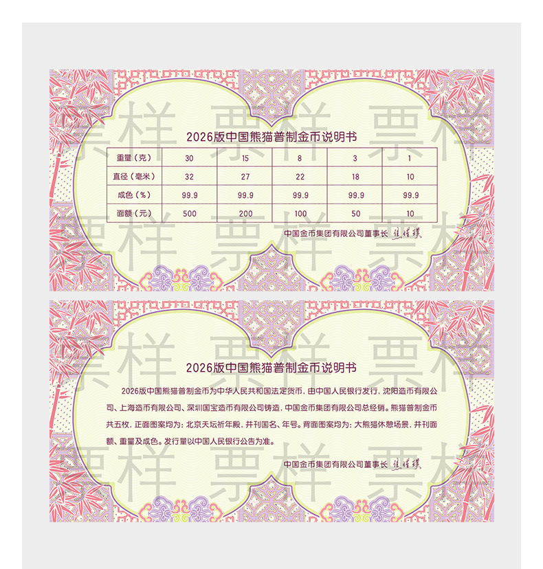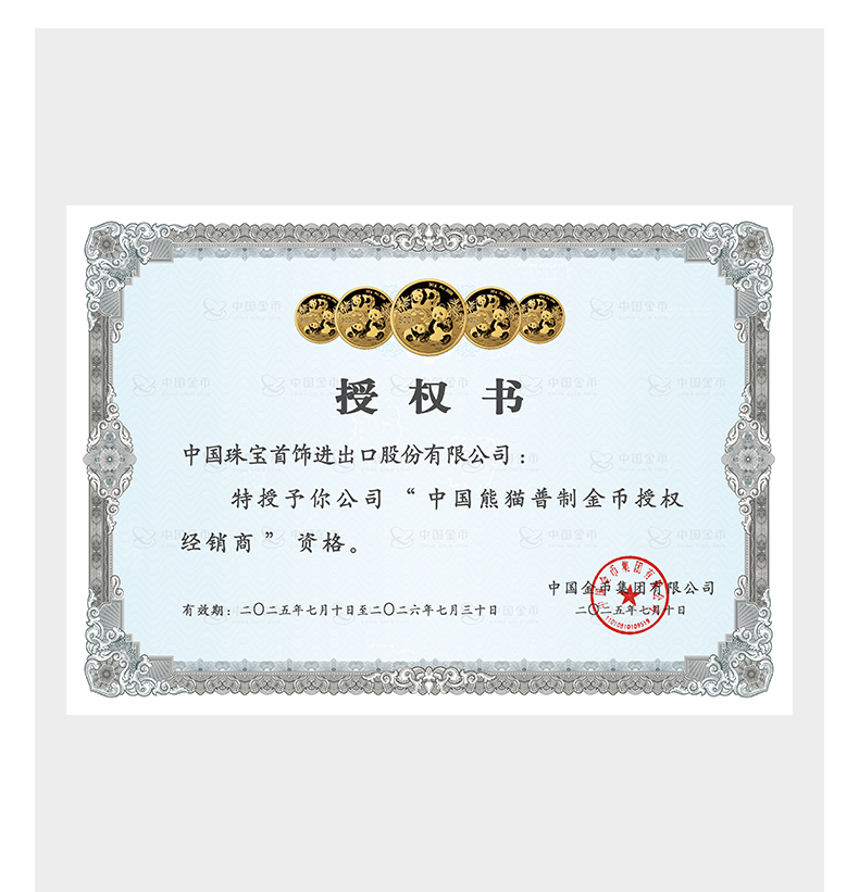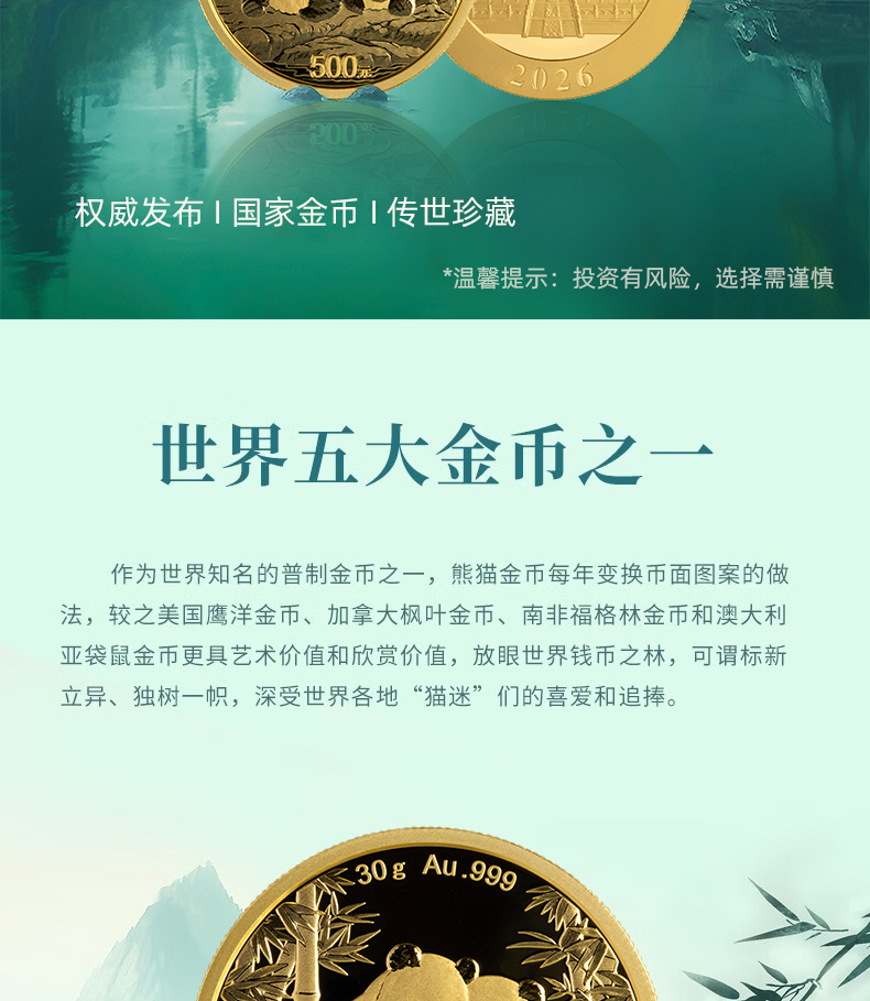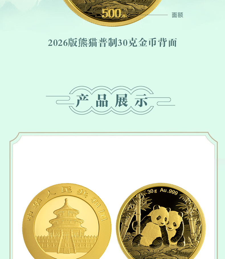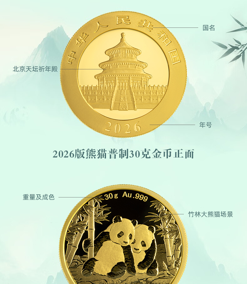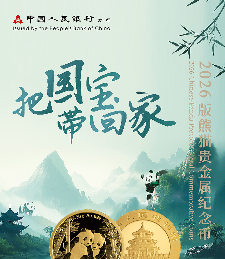 中国珠宝 2026版熊猫贵金属纪念币普制金币 投资收藏金条