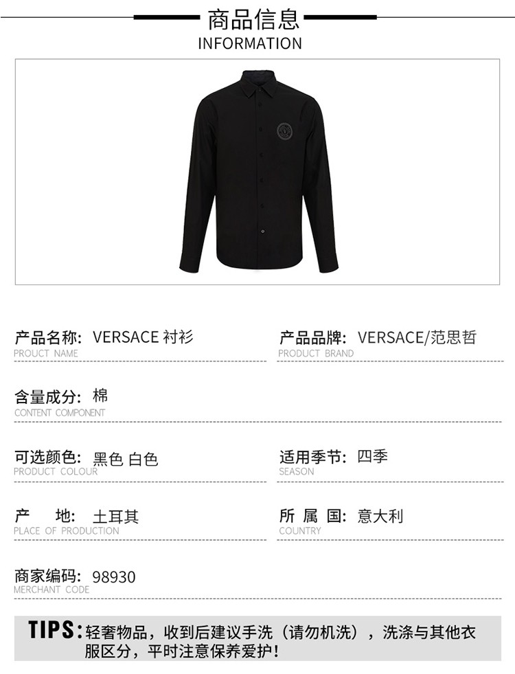 【超惠秒】Versace 范思哲 男士V 字徽章印花全棉衬衫 98930