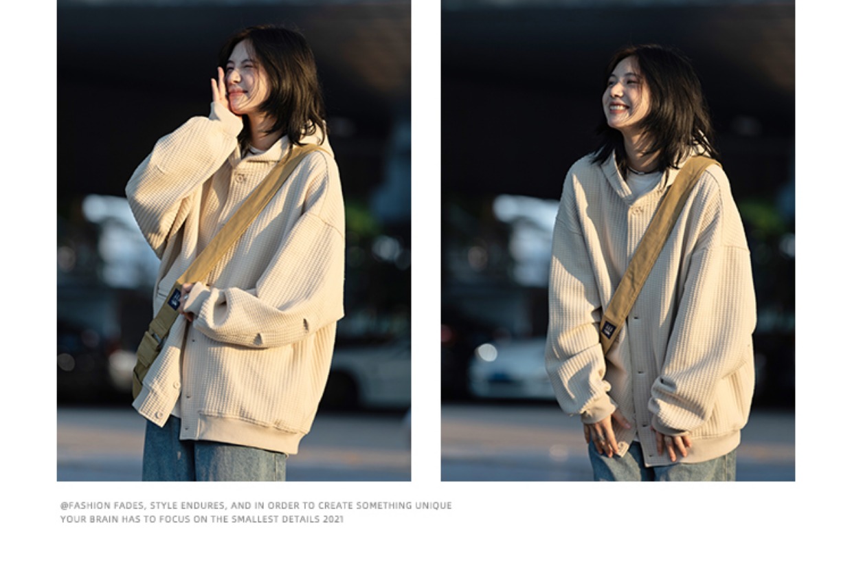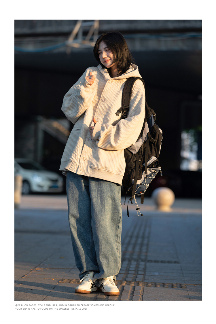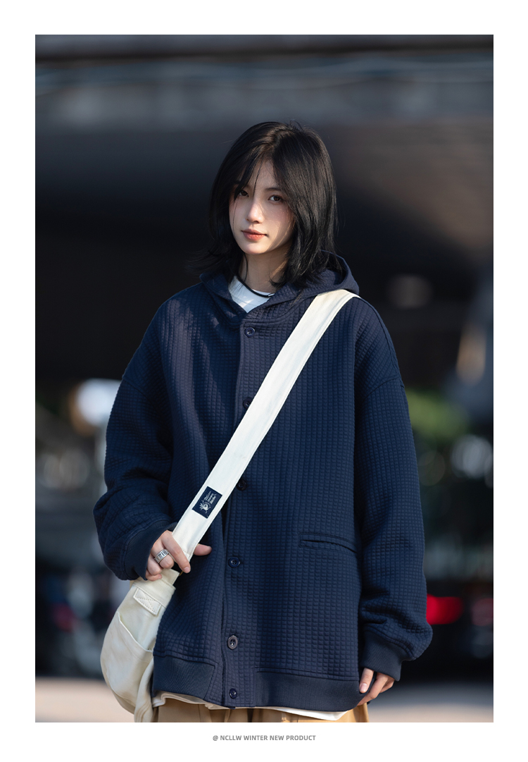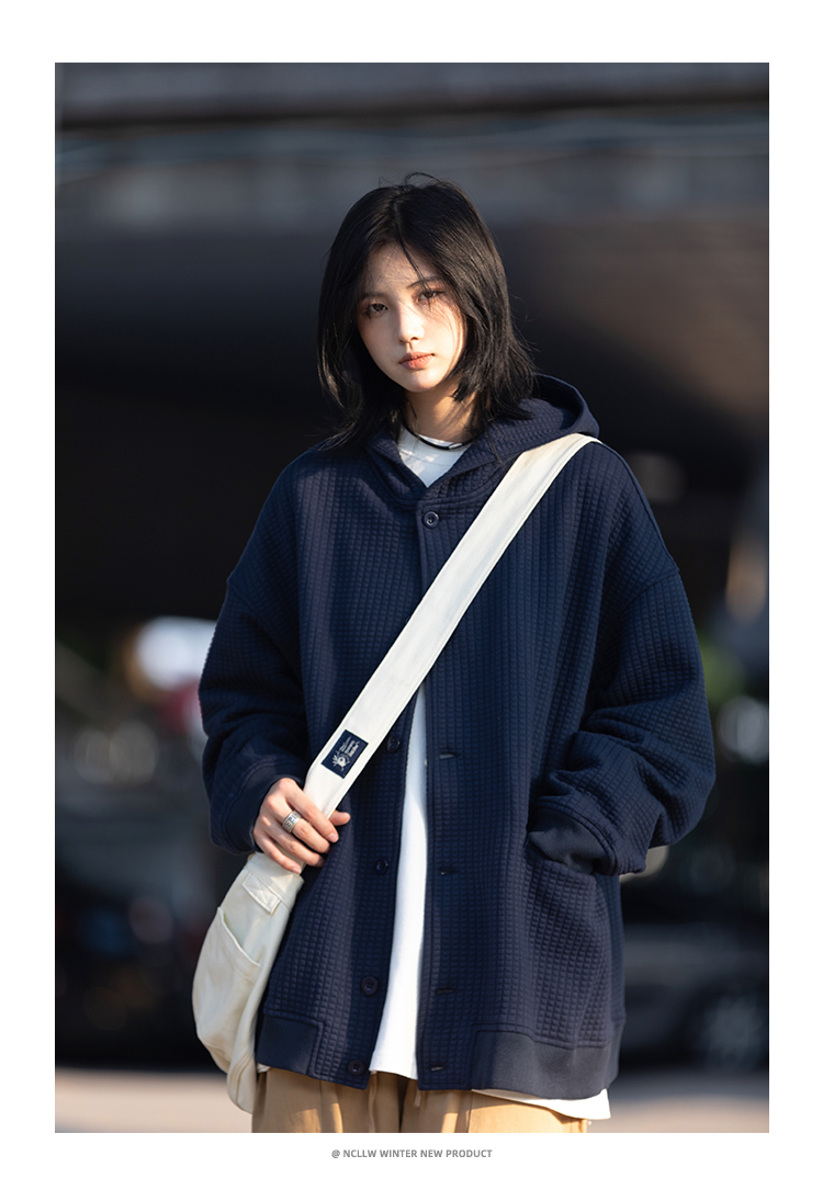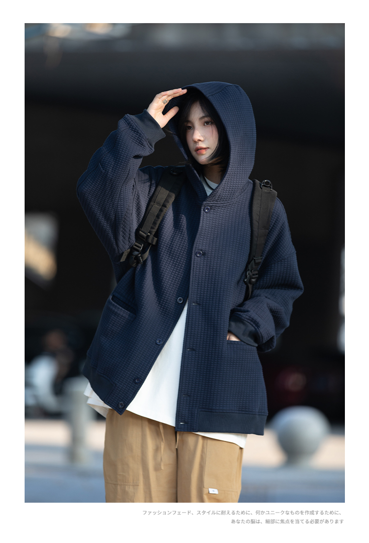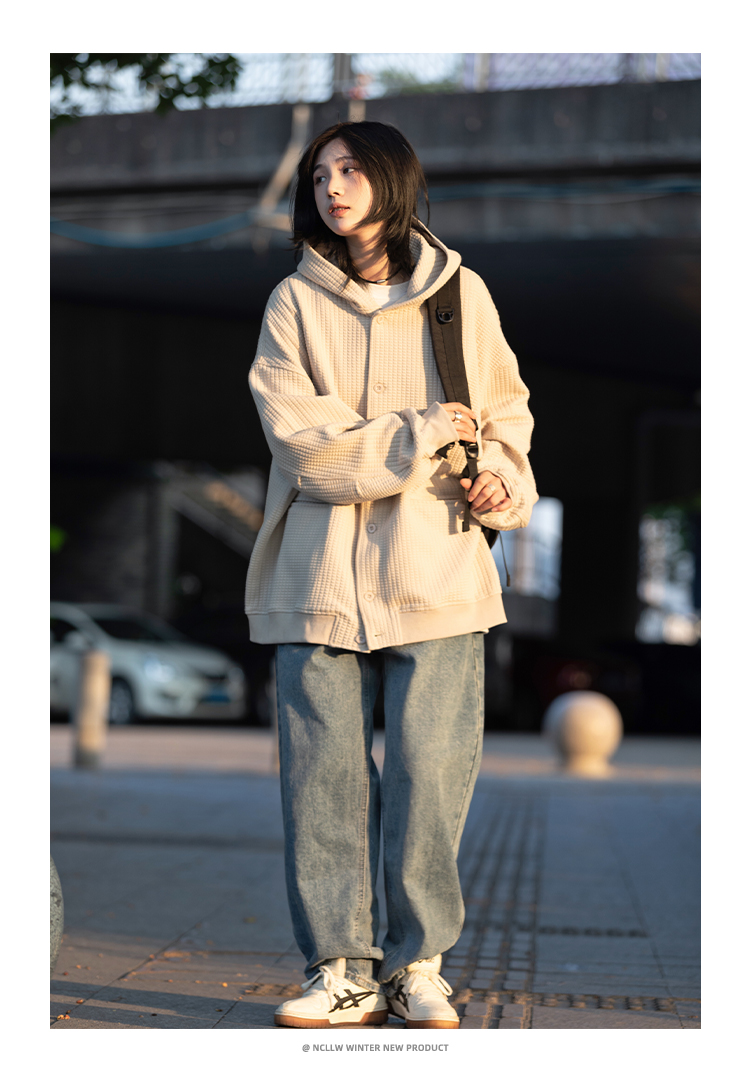 春秋季新款【休闲风华夫格外套女 纯色连帽开衫】夹克外套潮