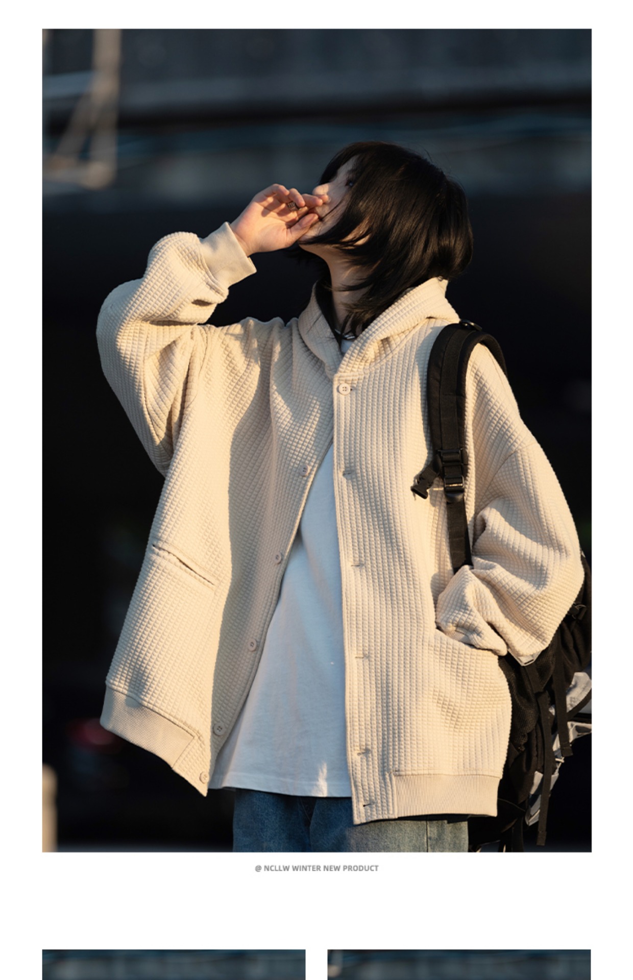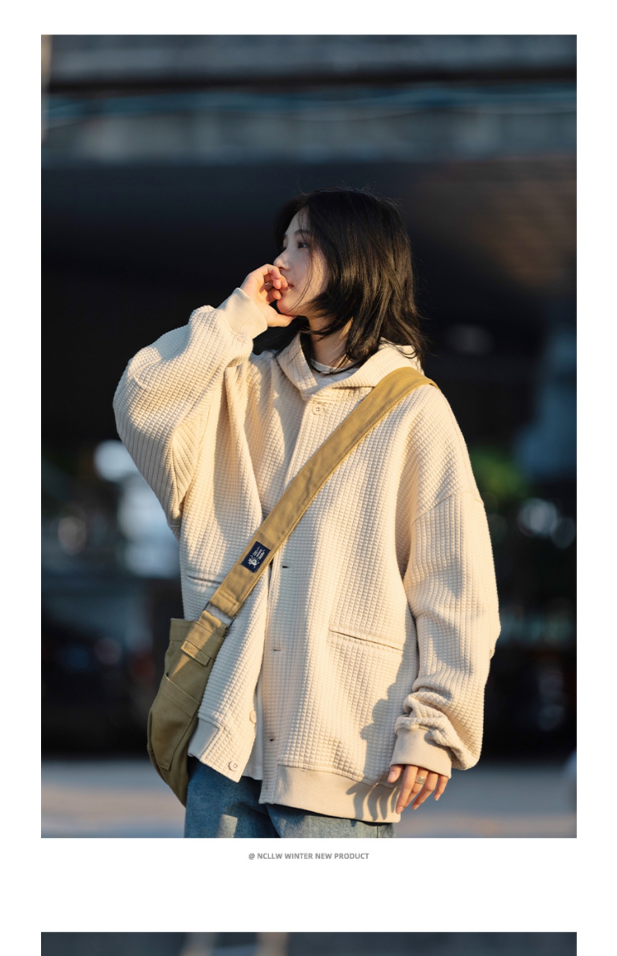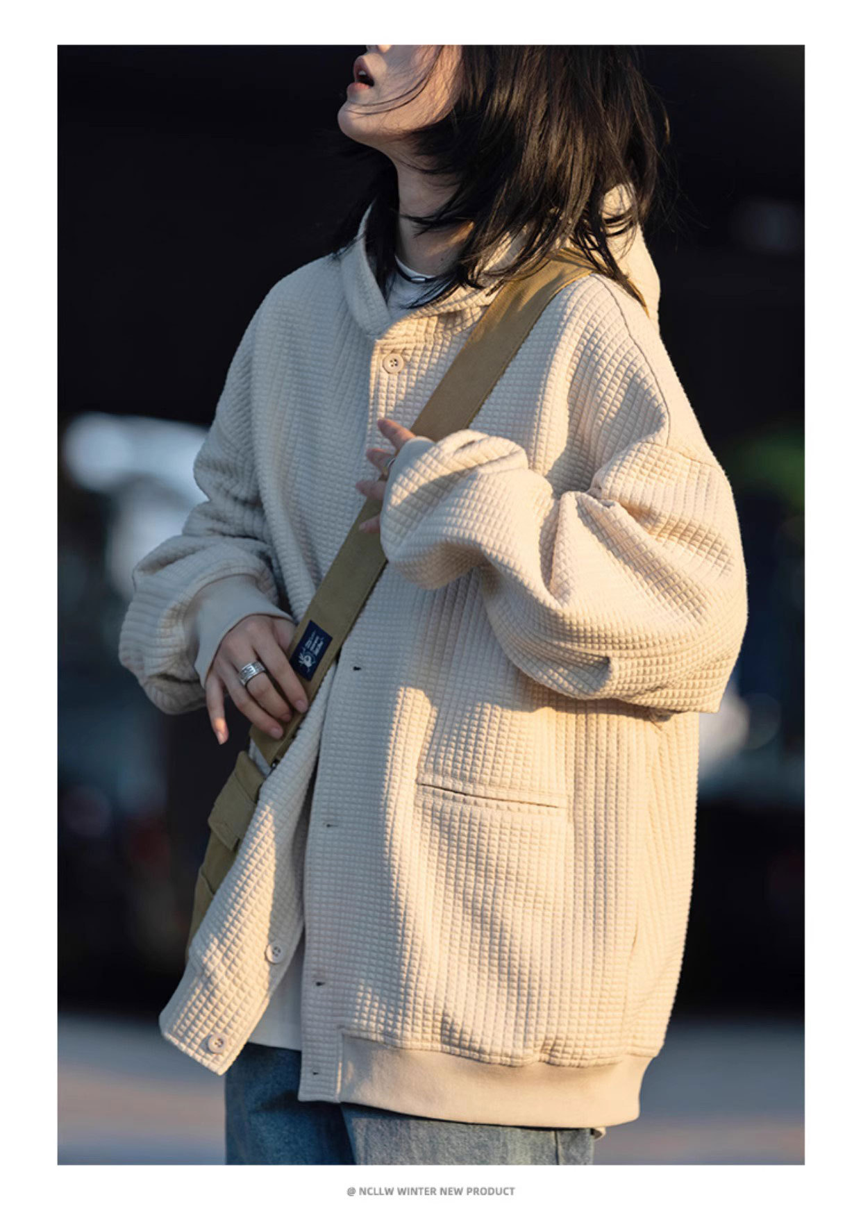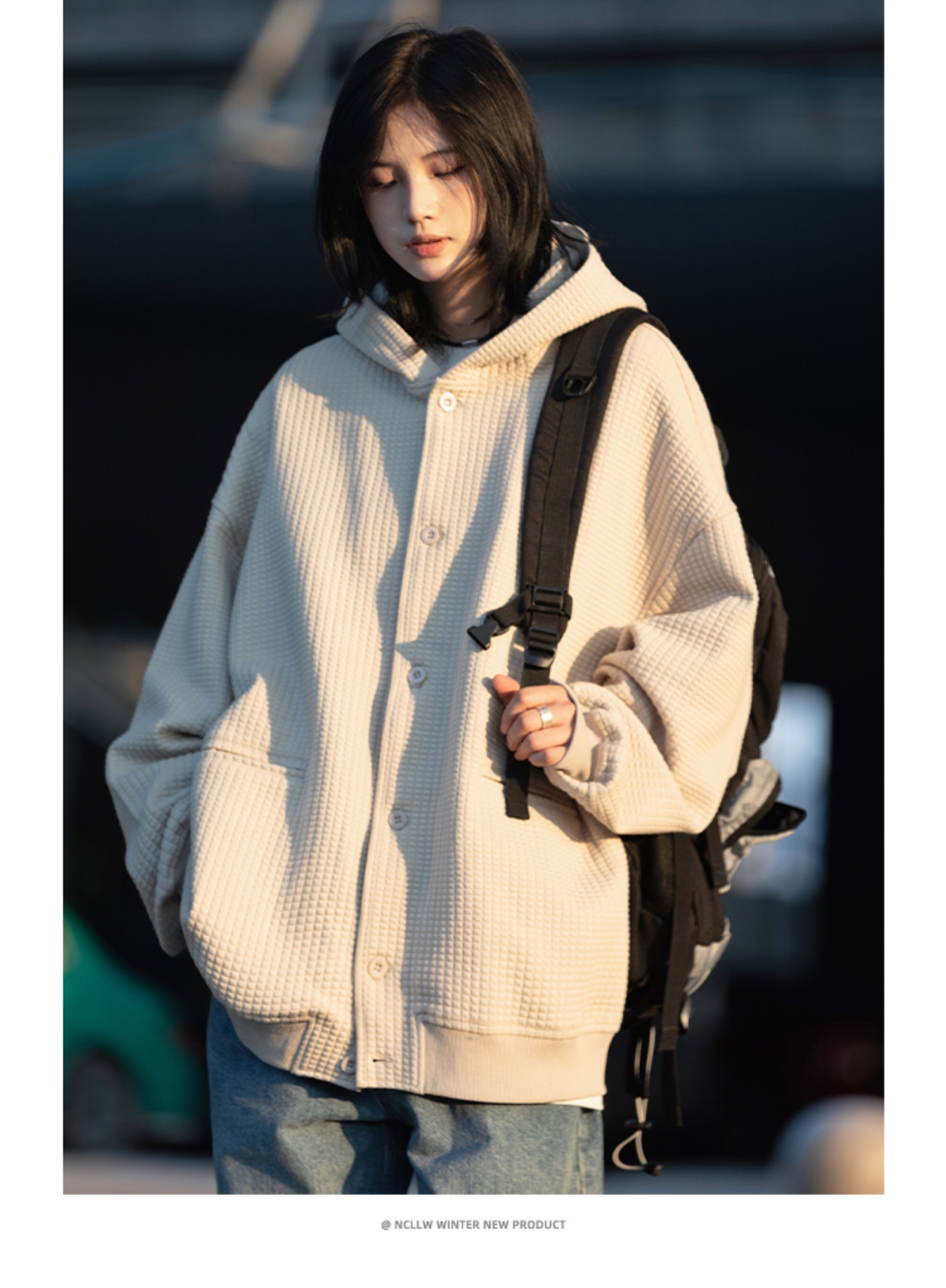 春秋季新款【休闲风华夫格外套女 纯色连帽开衫】夹克外套潮
