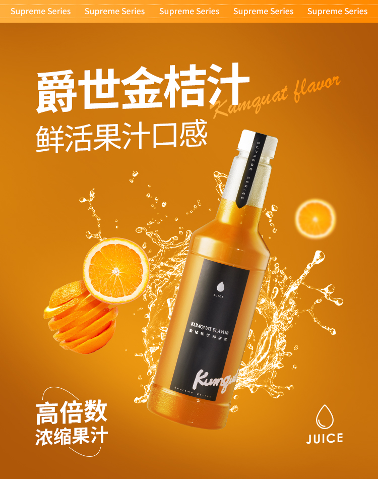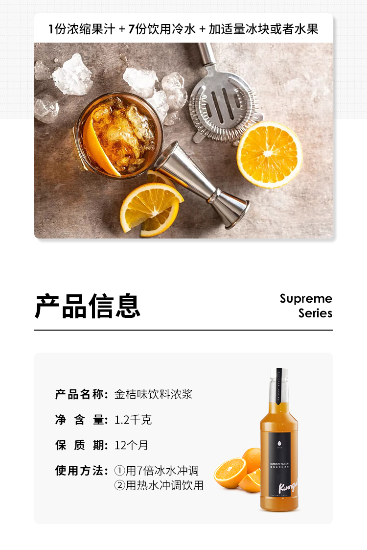 【爵世果汁系列】金桔味饮料浓浆1.2kg/瓶 天然水果糖浆金桔汁