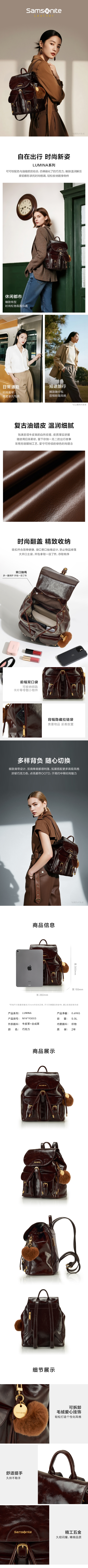 新秀丽LUMINA系列牛皮革时尚女士翻盖双肩包NY4*003