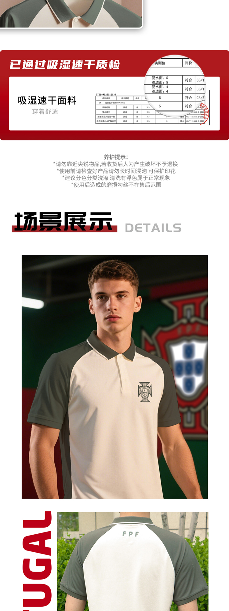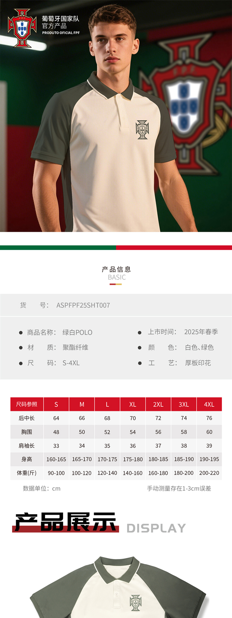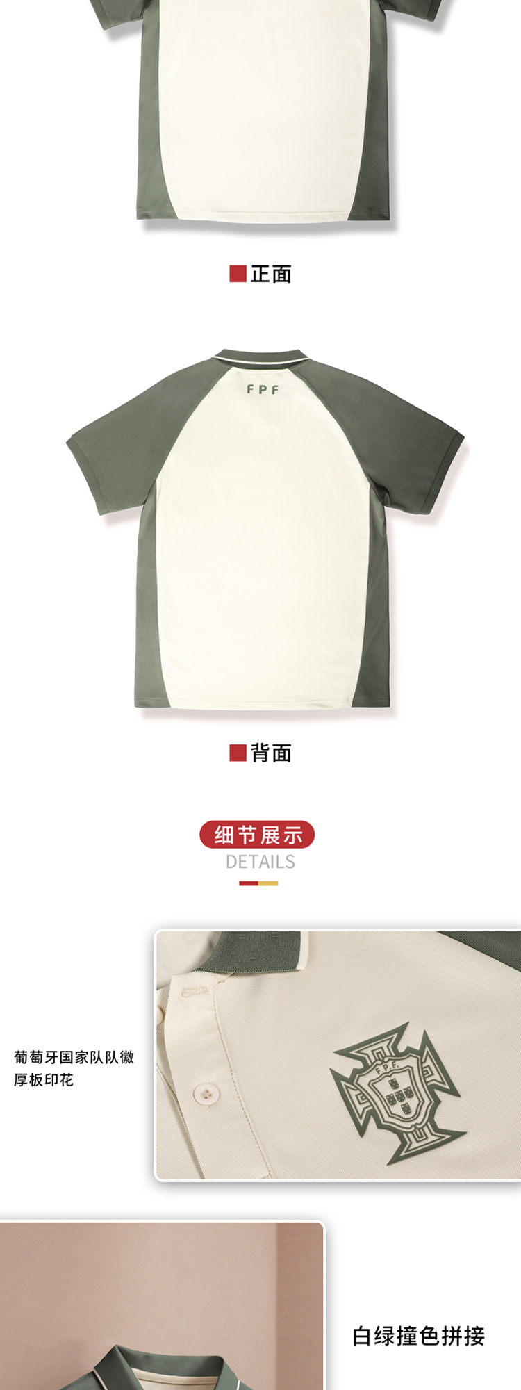 【官方正版】葡萄牙国家队 | 春夏绿白撞色POLO衫休闲短袖透气