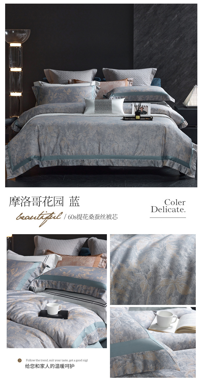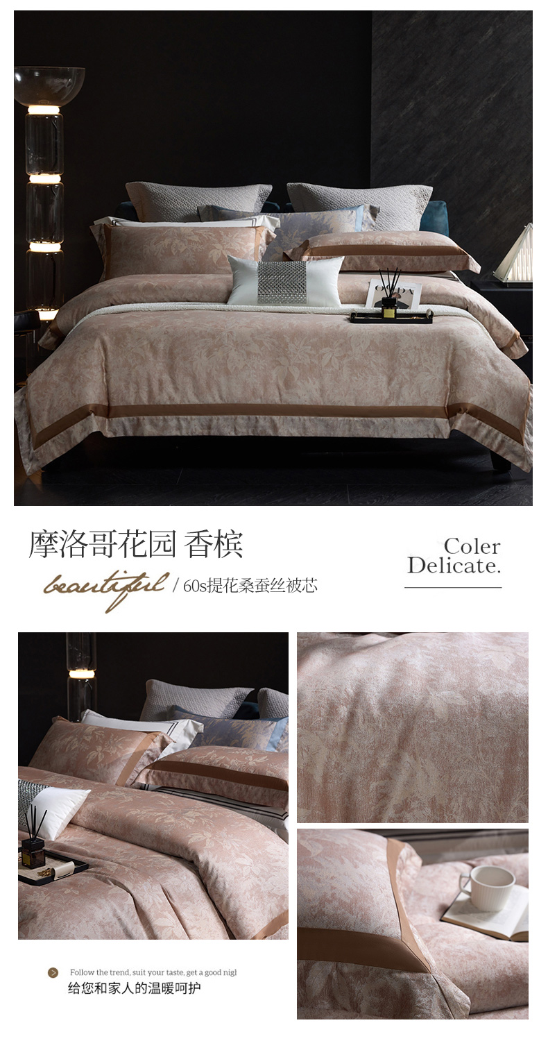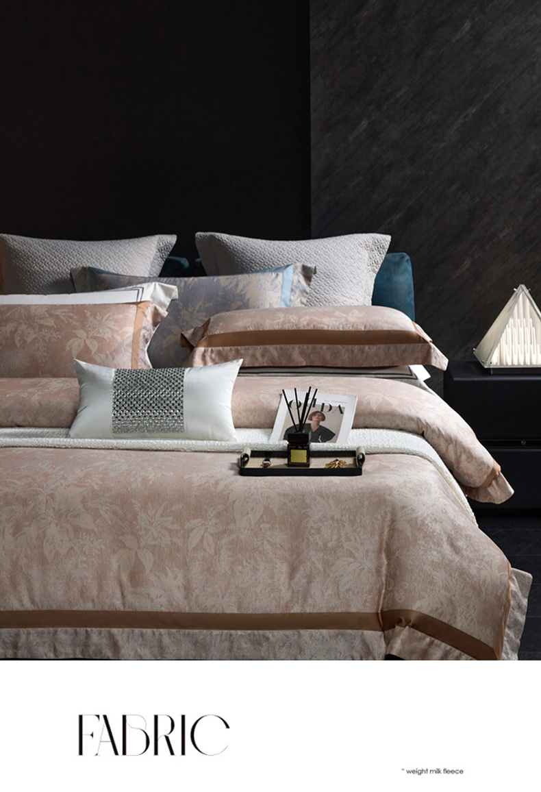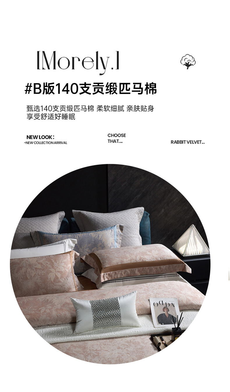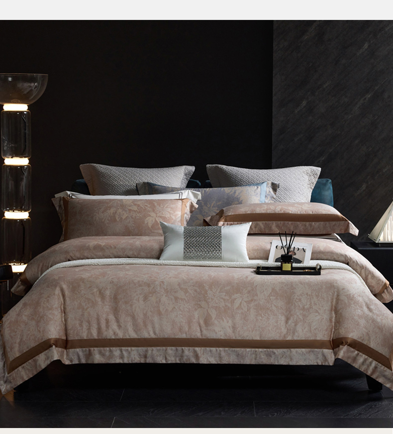 高奢品140支贡缎匹马棉色织提花四件套 欧世复购轻奢风套件