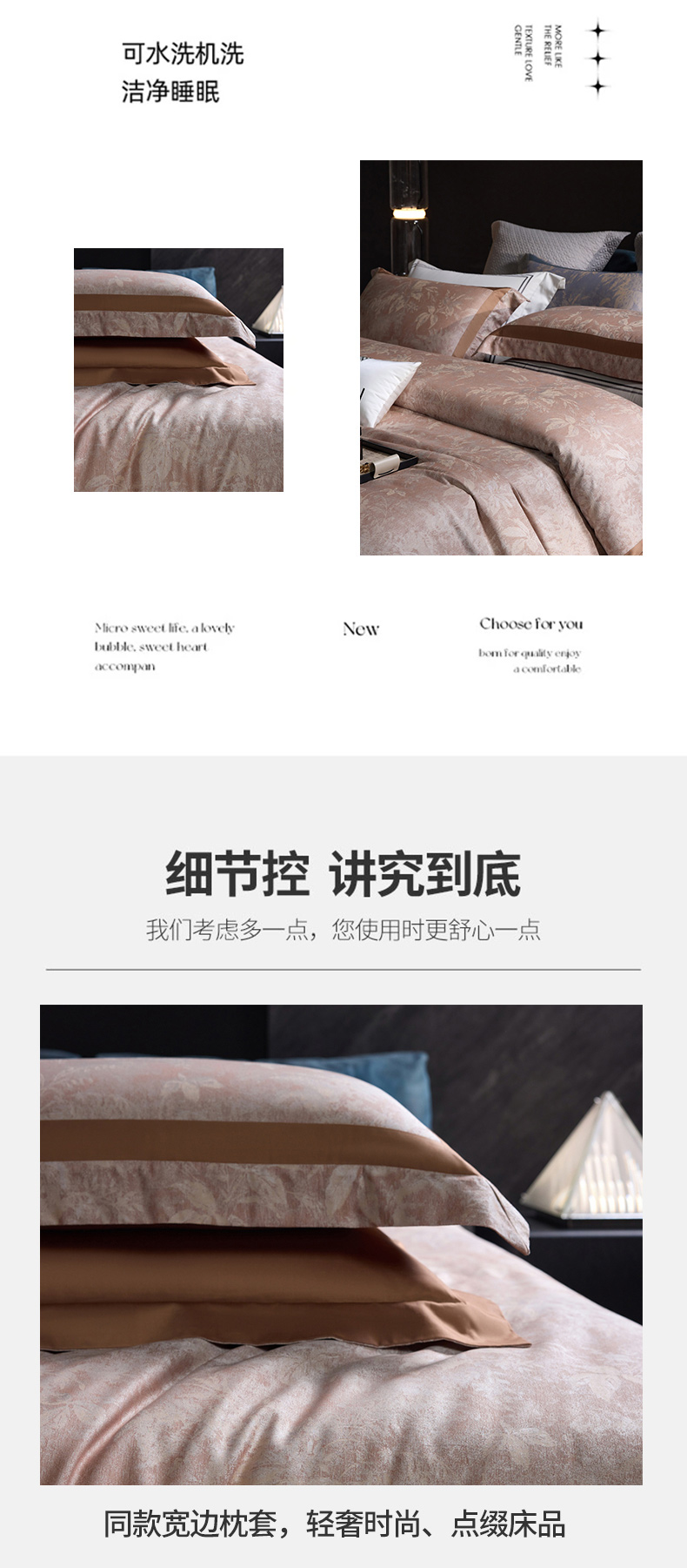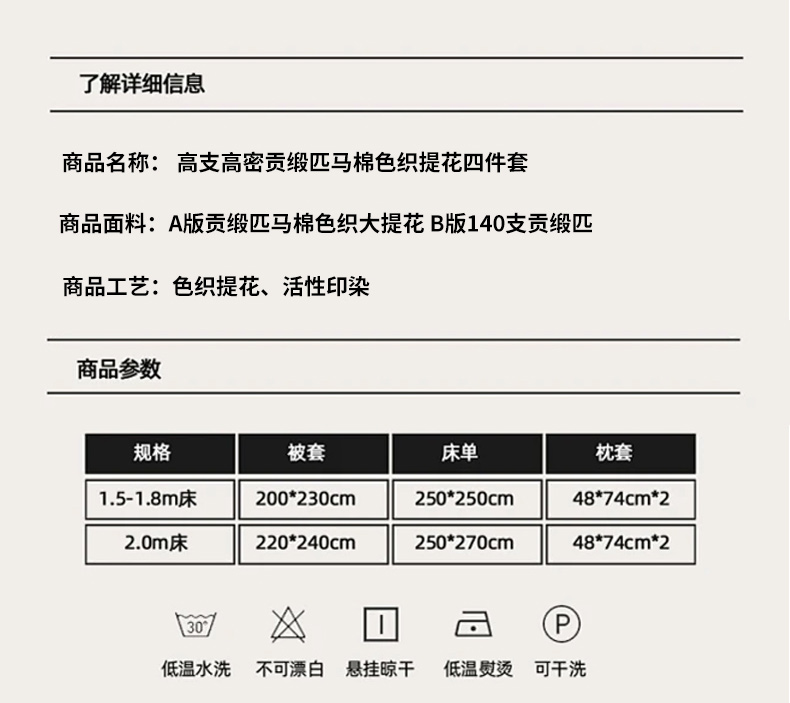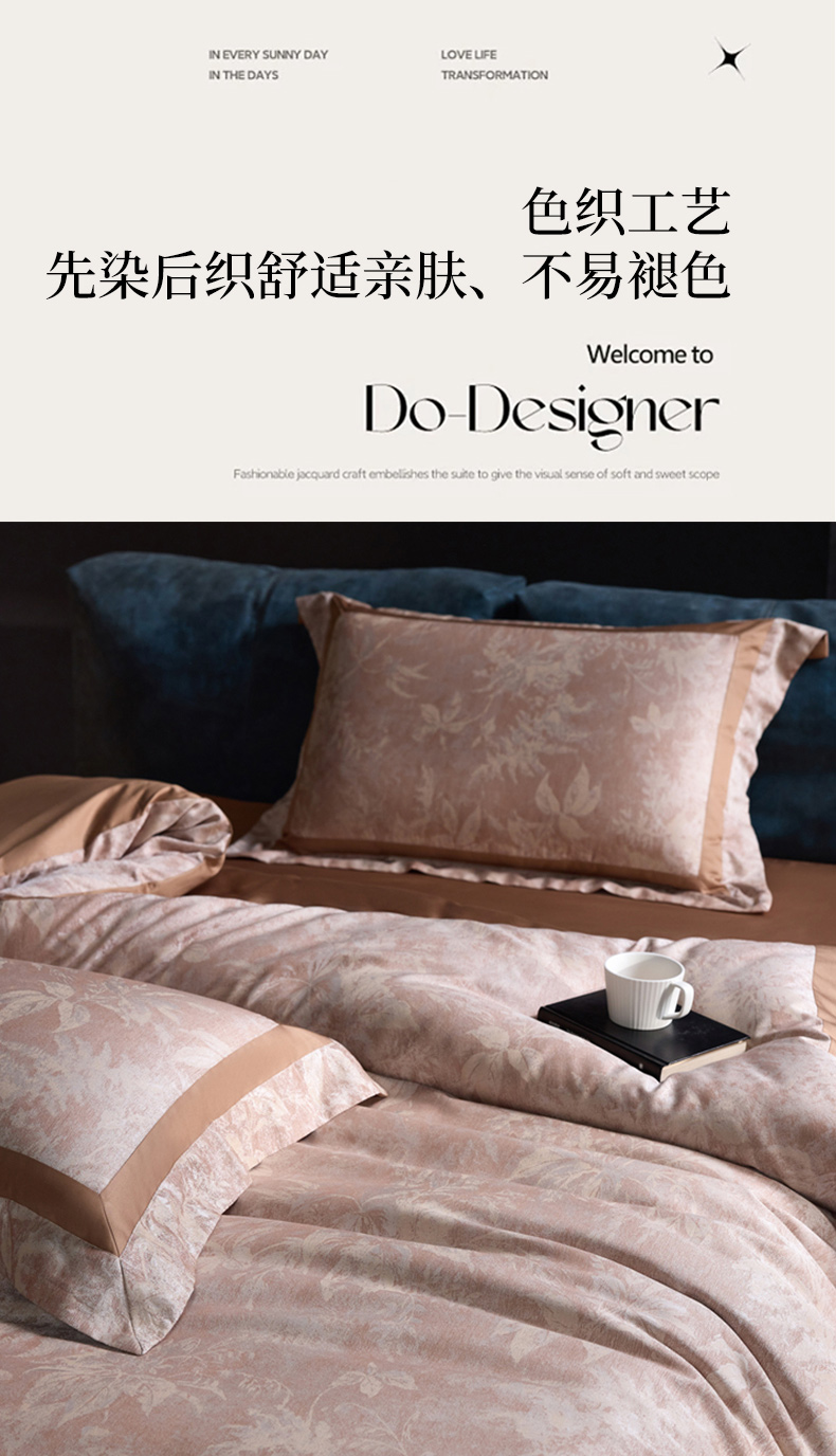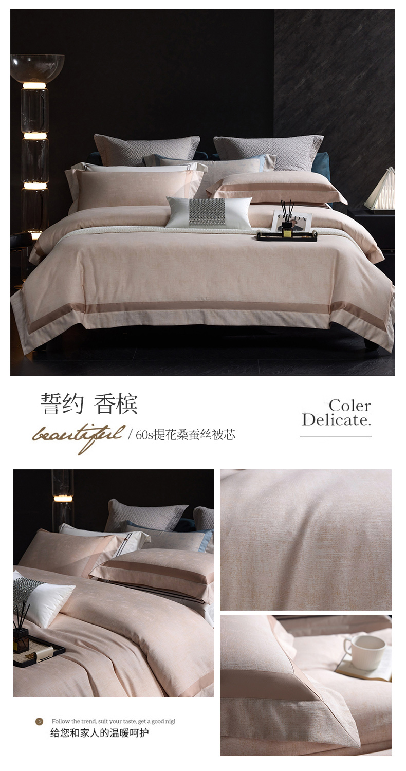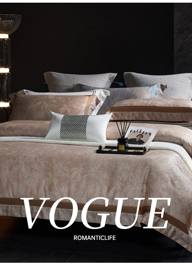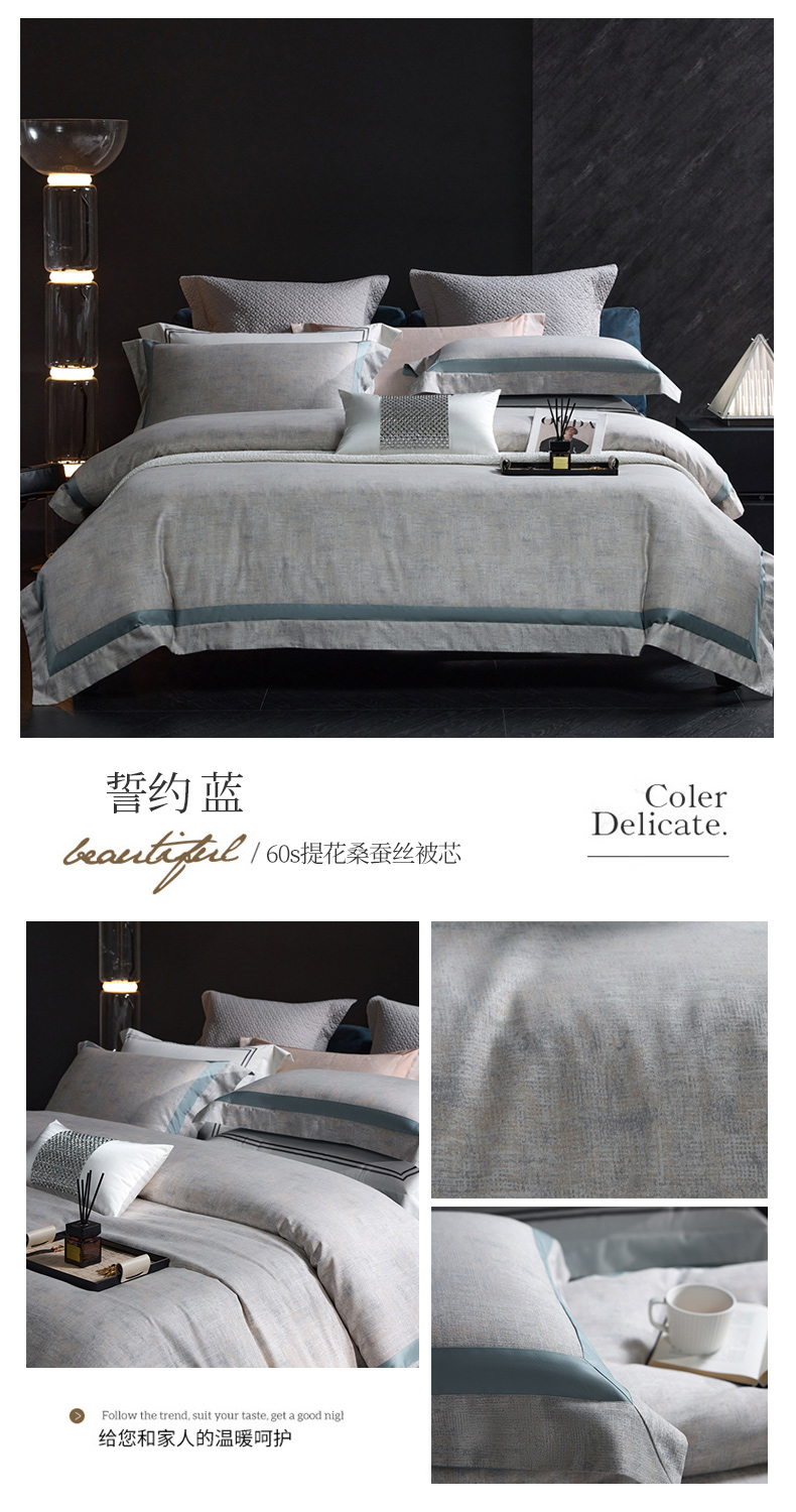 高奢品140支贡缎匹马棉色织提花四件套 欧世复购轻奢风套件