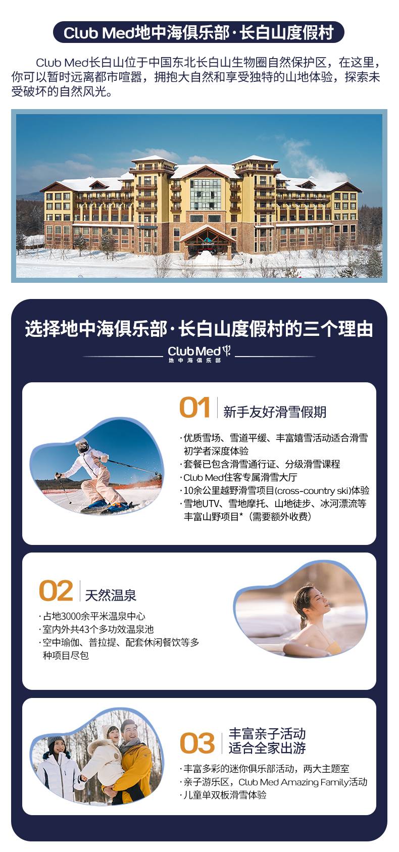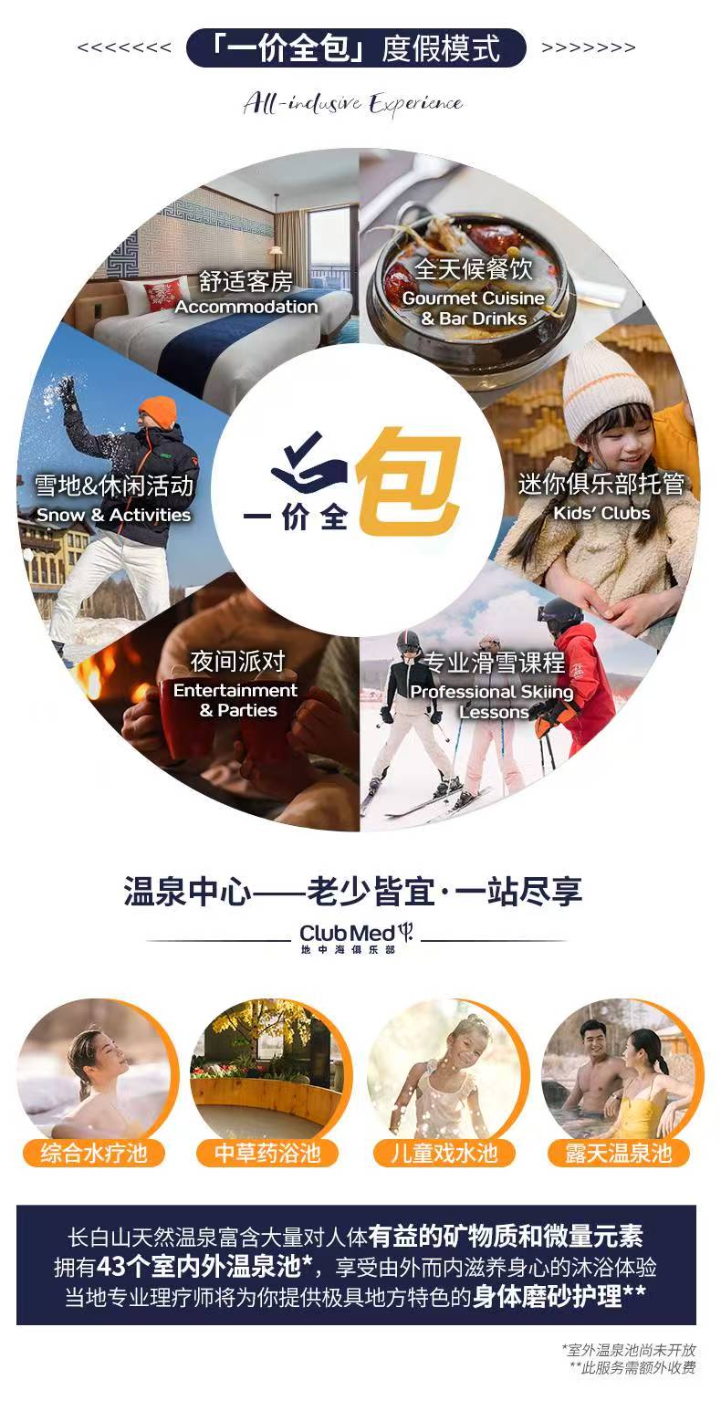 【雪季早鸟】长白山Club Med 天然温泉滑雪度假村 | 学滑雪、泡温泉、品人参料理!(所有价格和房态需以客服二次确认为准)