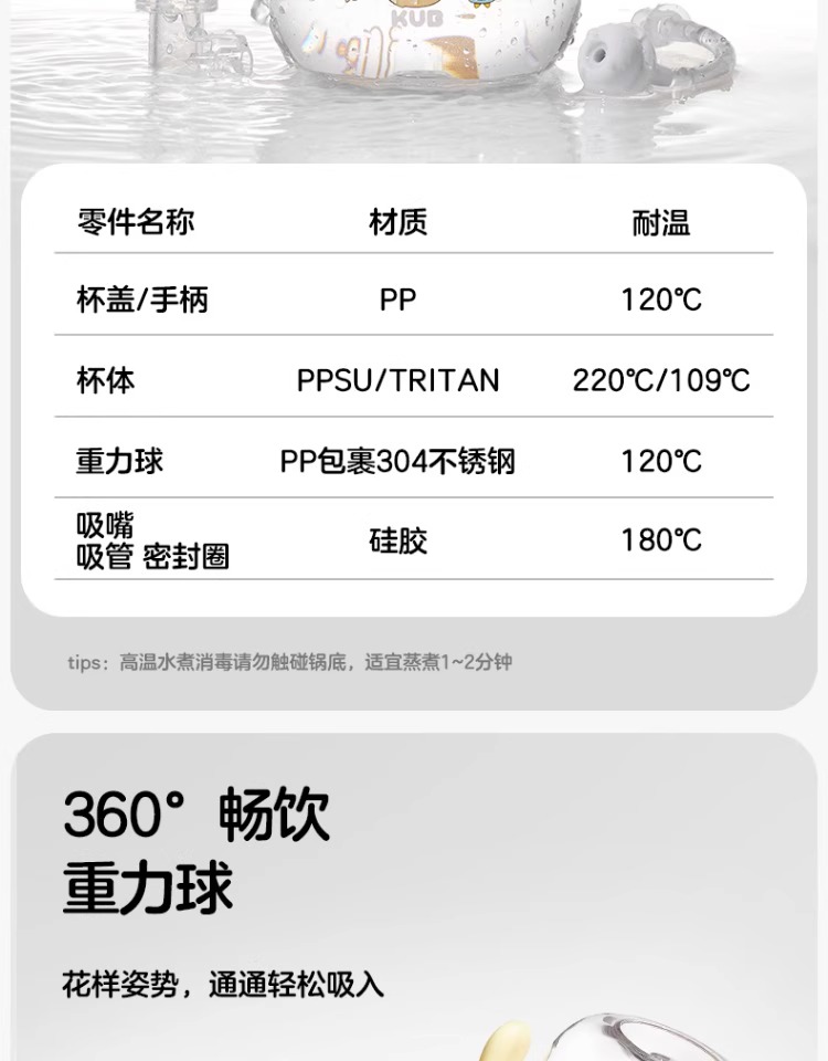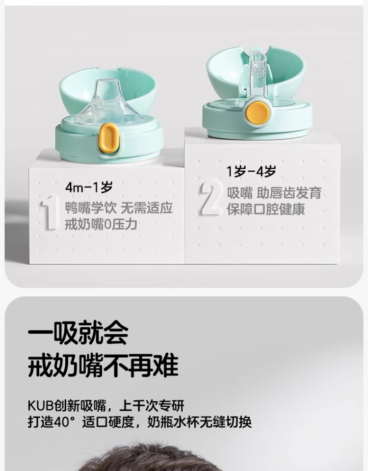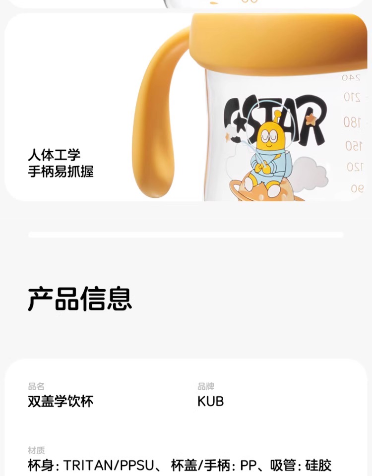 KUB可优比宝宝学饮杯鸭嘴杯儿童吸管杯婴儿水杯6个月以上喝水防呛