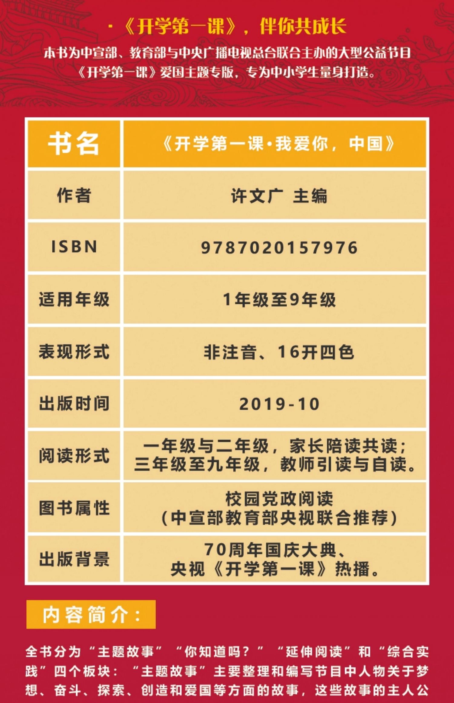 我爱你中国书籍 开学第一课 人民文学出版社fb一年级二年级课外书 小学生四五六年级寒假课外阅读图书儿童读物