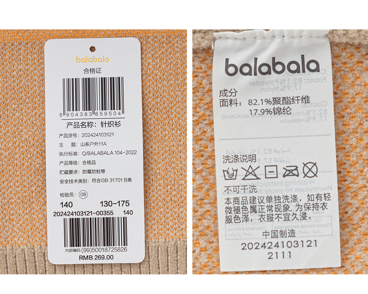 巴拉巴拉男童毛衣套头打底衫童装舒适柔软中大童针织衫百搭时尚潮