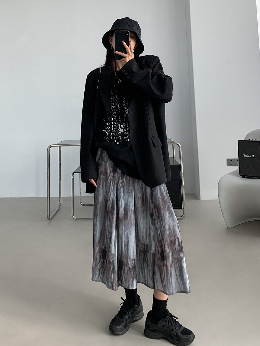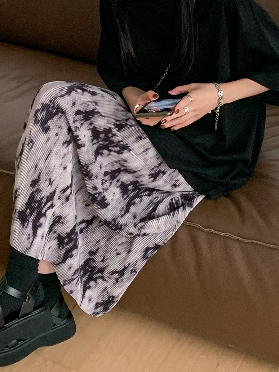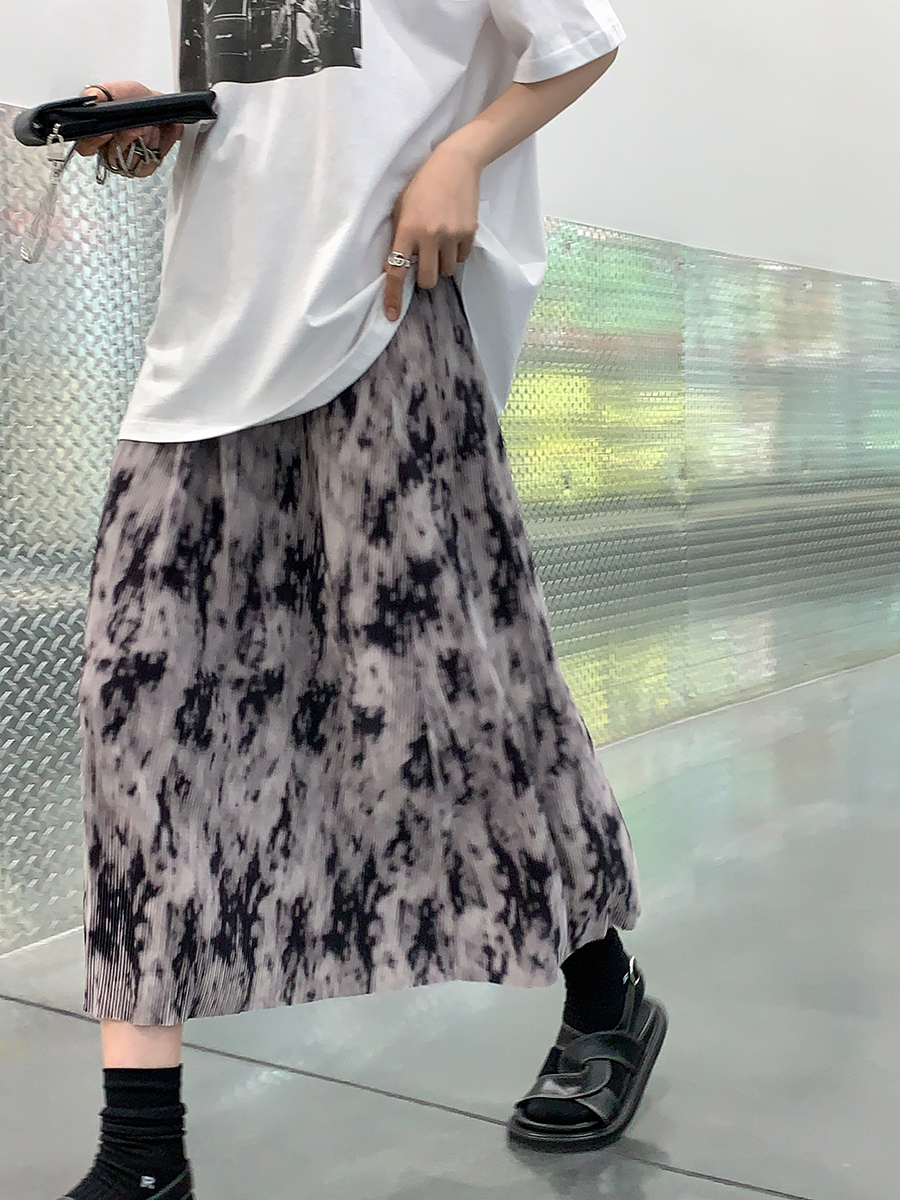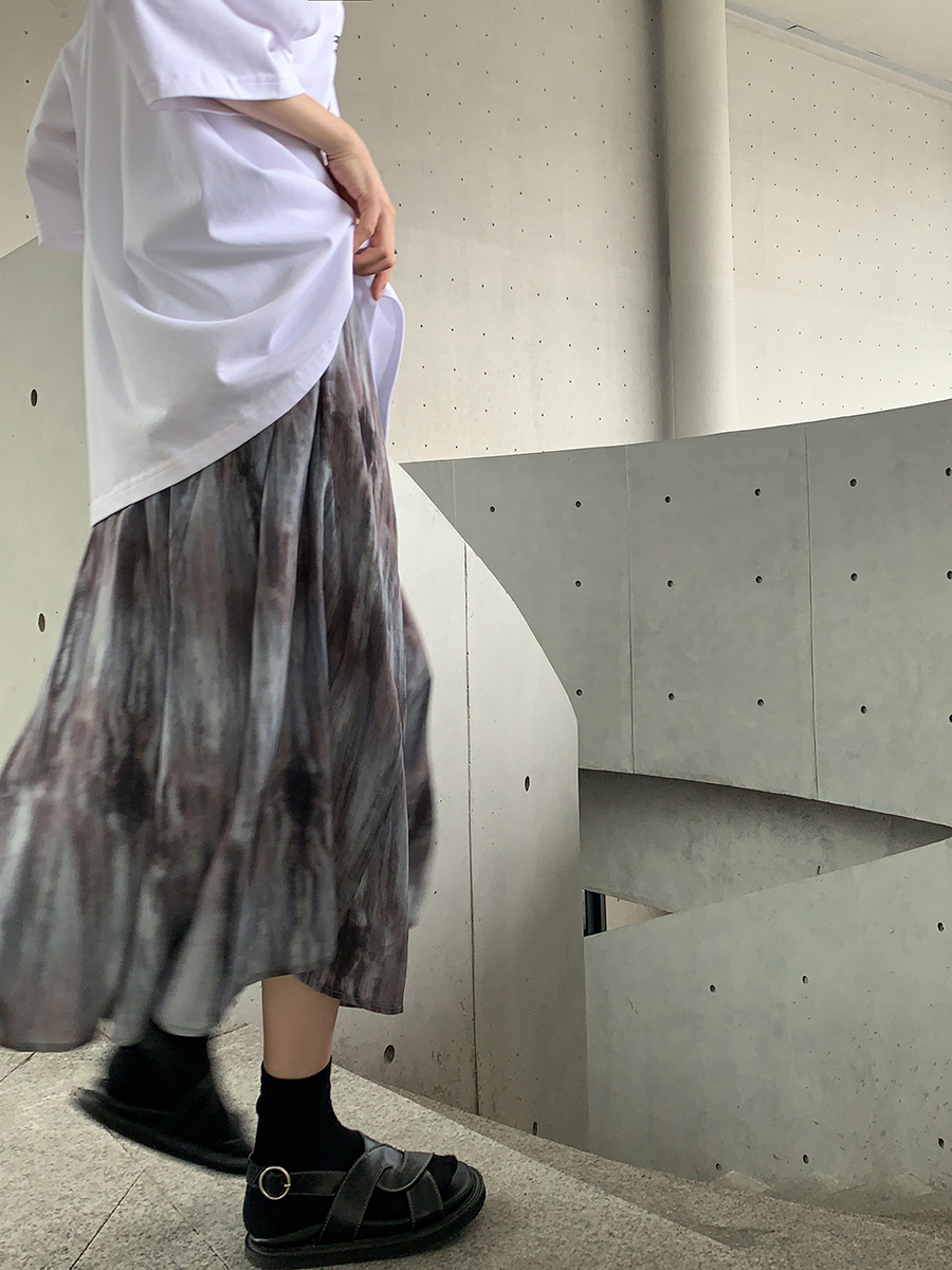 【品名】麦多惜水墨扎染 压褶半身裙女设计感宽松显瘦垂感中长裙