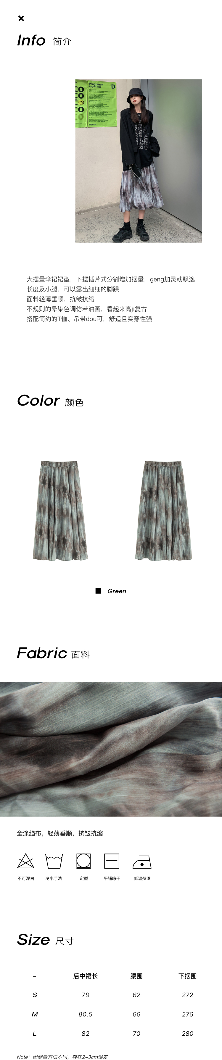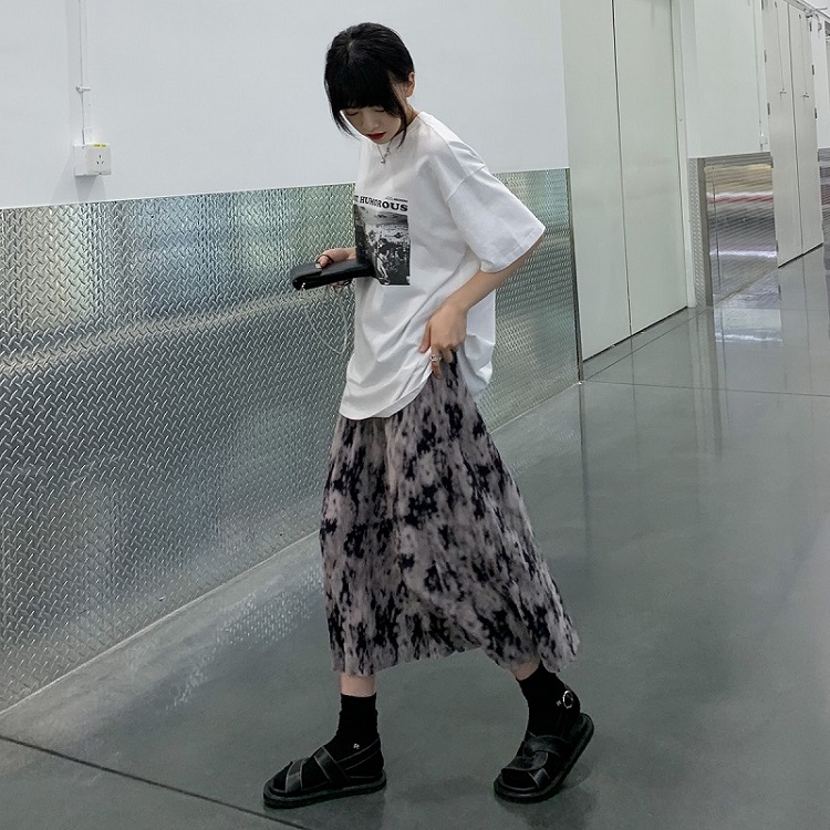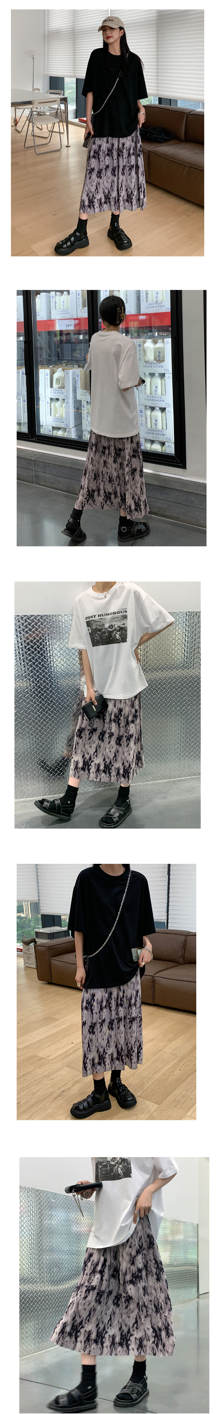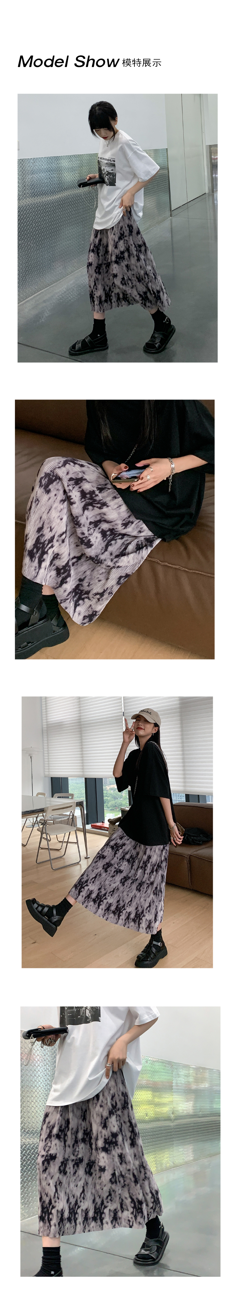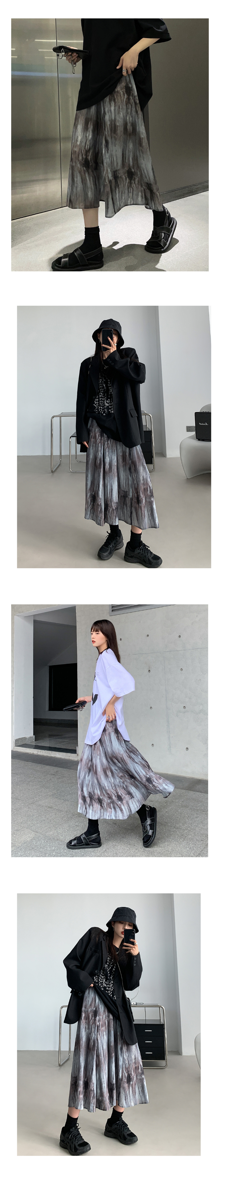 【品名】麦多惜水墨扎染 压褶半身裙女设计感宽松显瘦垂感中长裙