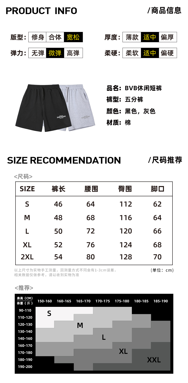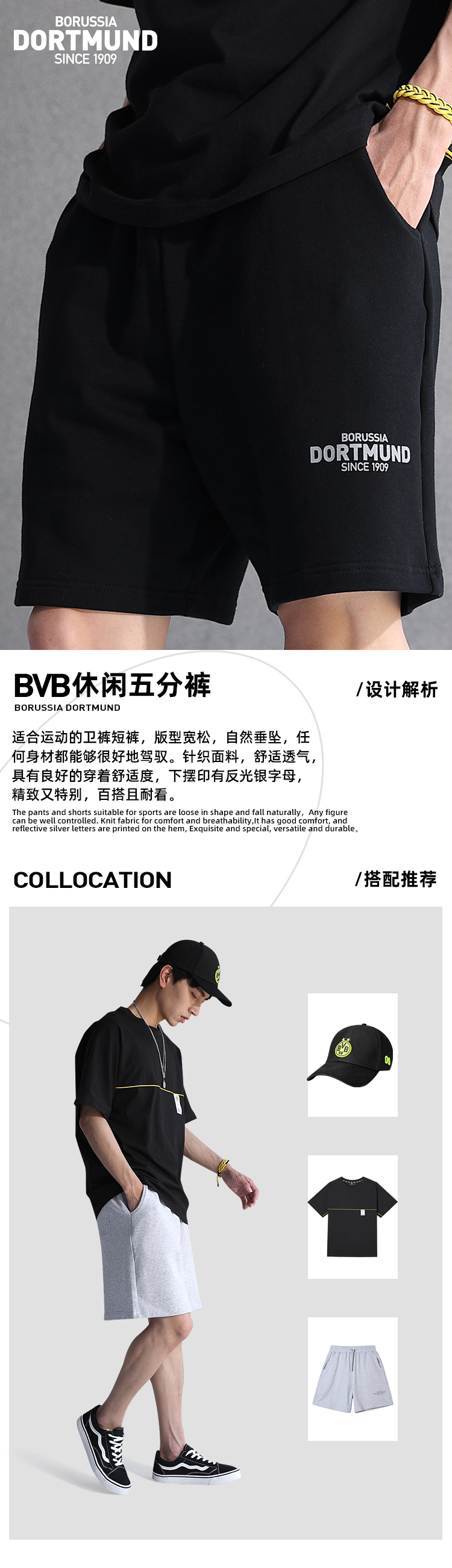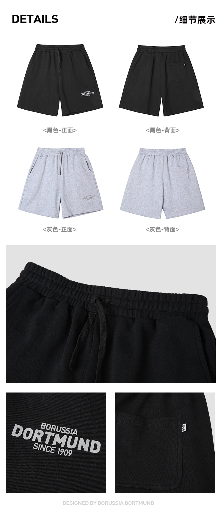 BVB多特蒙德时尚休闲运动短裤黑颜色BVB22SSDK01