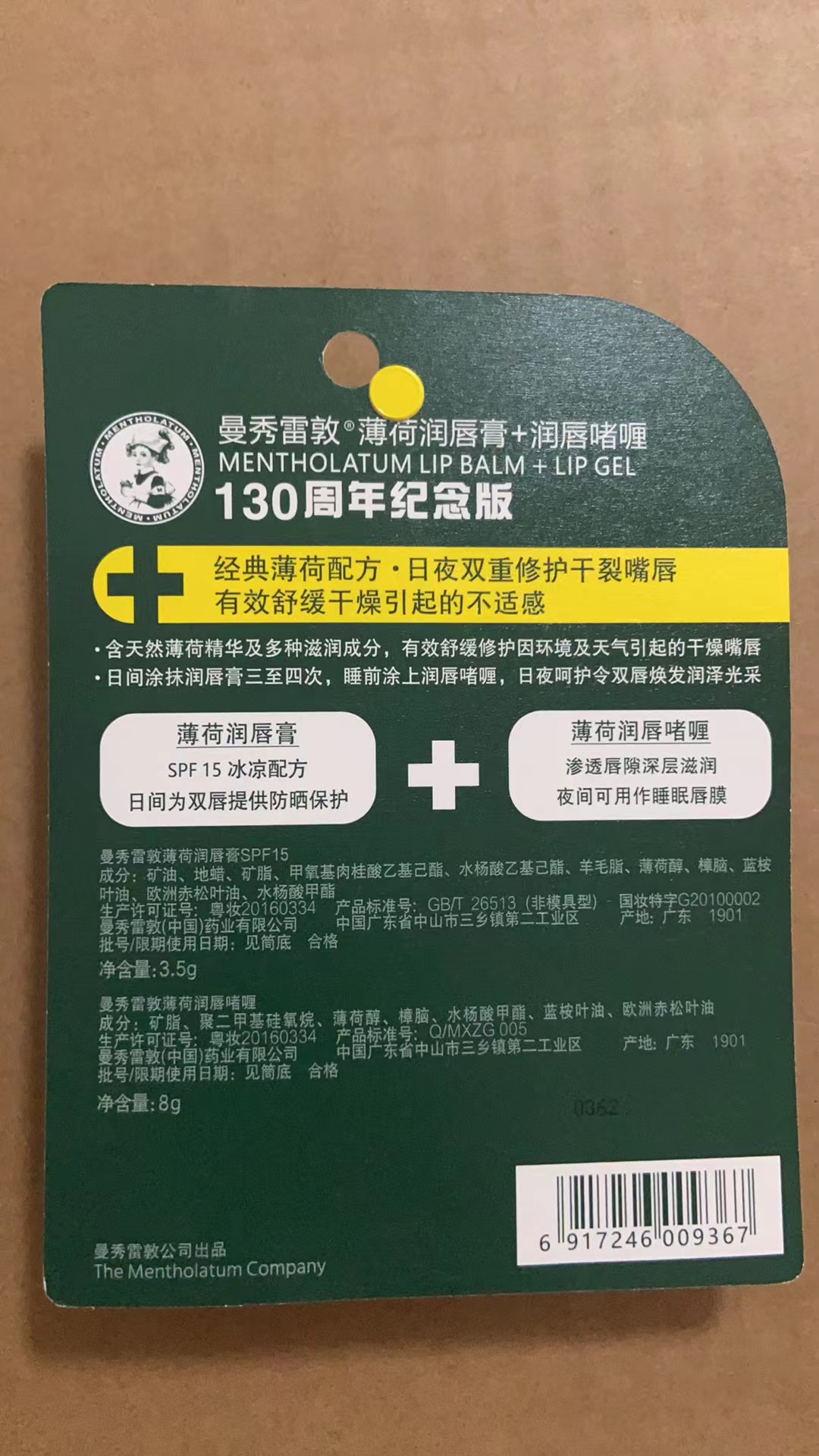 【曼秀雷敦薄荷润唇膏+润唇啫喱】