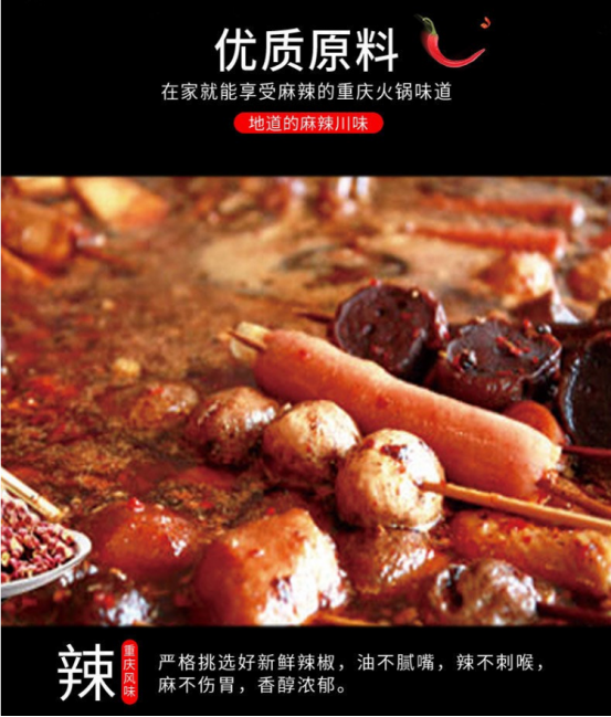 【成分】牛油、植物油、辣椒、花椒、豆瓣酱、食用盐等