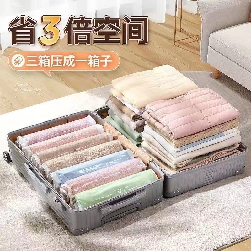 开学季好物【真空收纳❗️防潮防霉】手卷真空压缩行李箱衣服用衣物旅行纳羽绒服神器旅游压缩袋收纳袋。jd