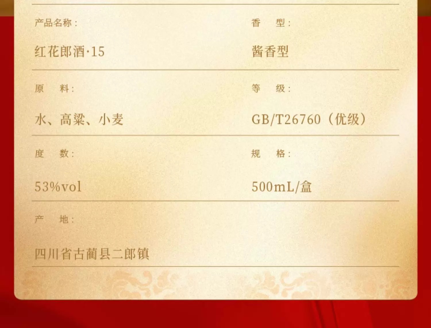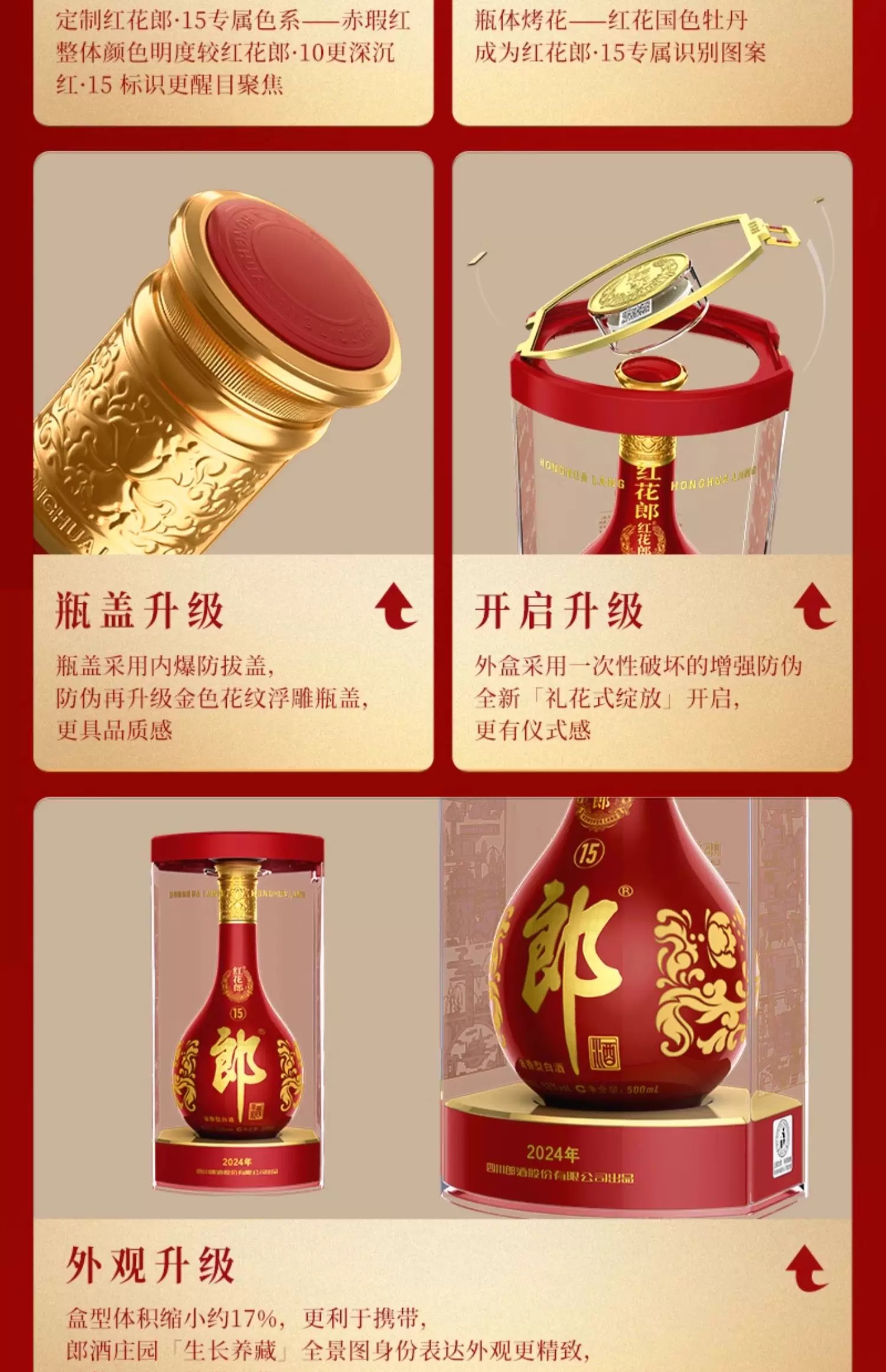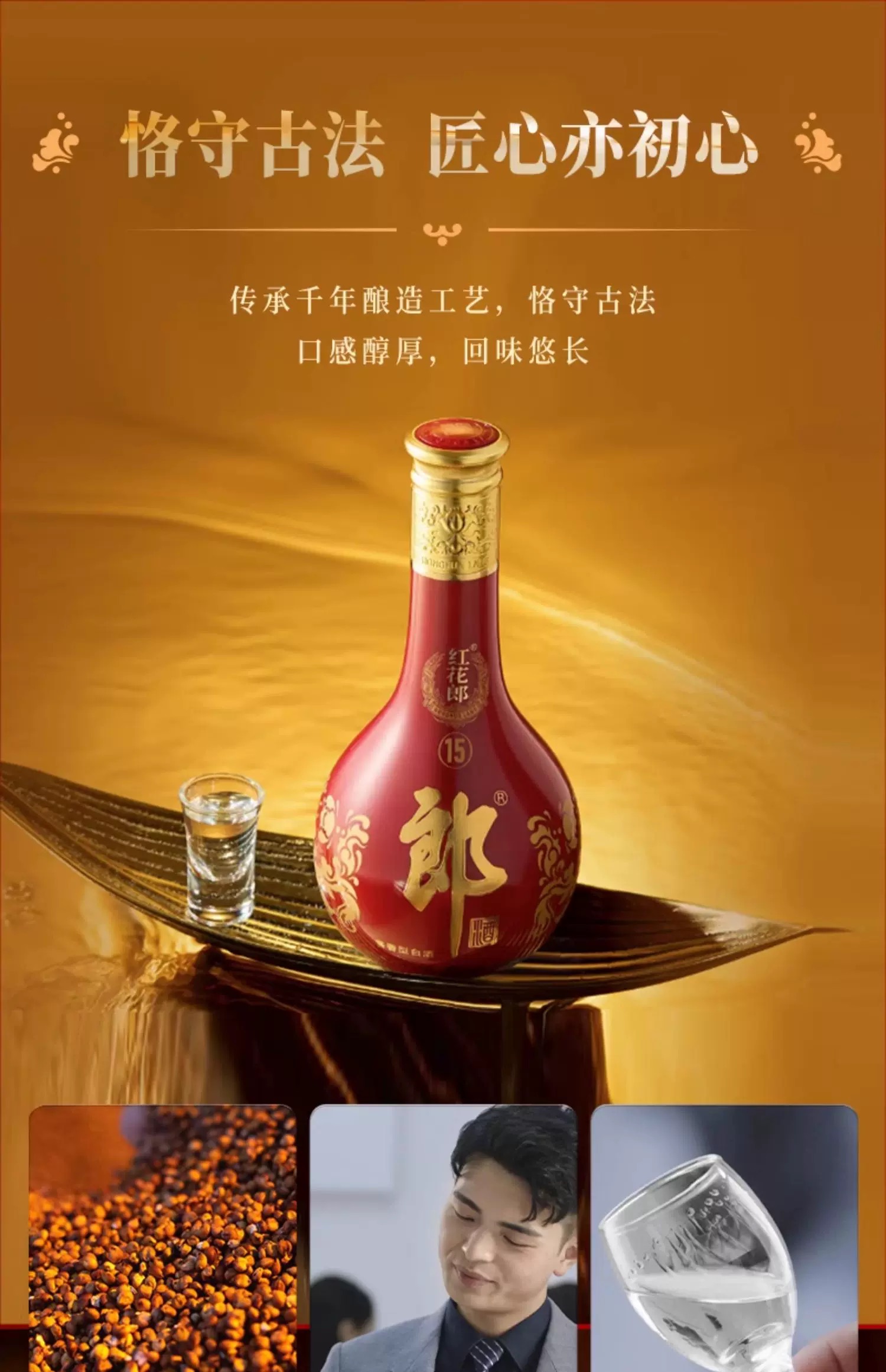 郎酒 红花郎·15 酱香型白酒53度 500ml 六瓶整件装【含礼袋】