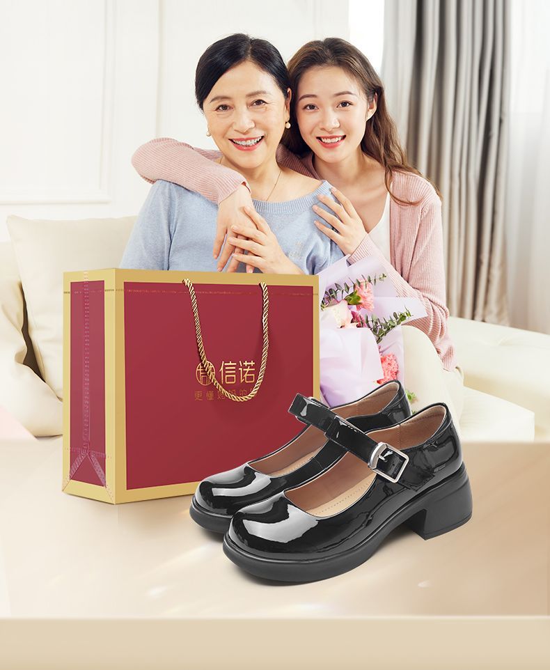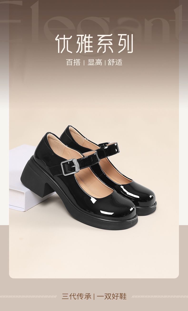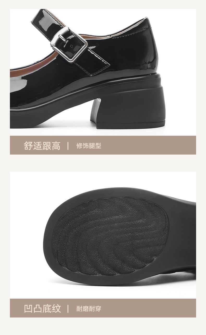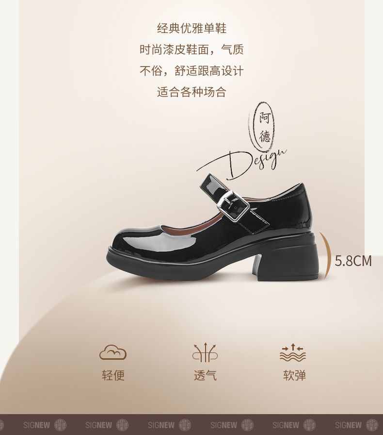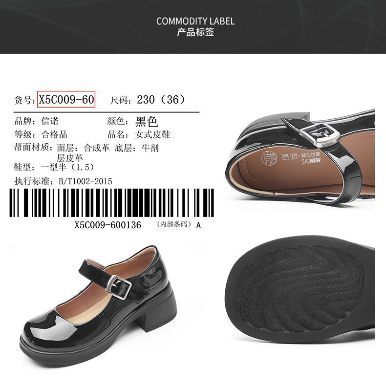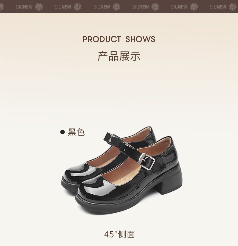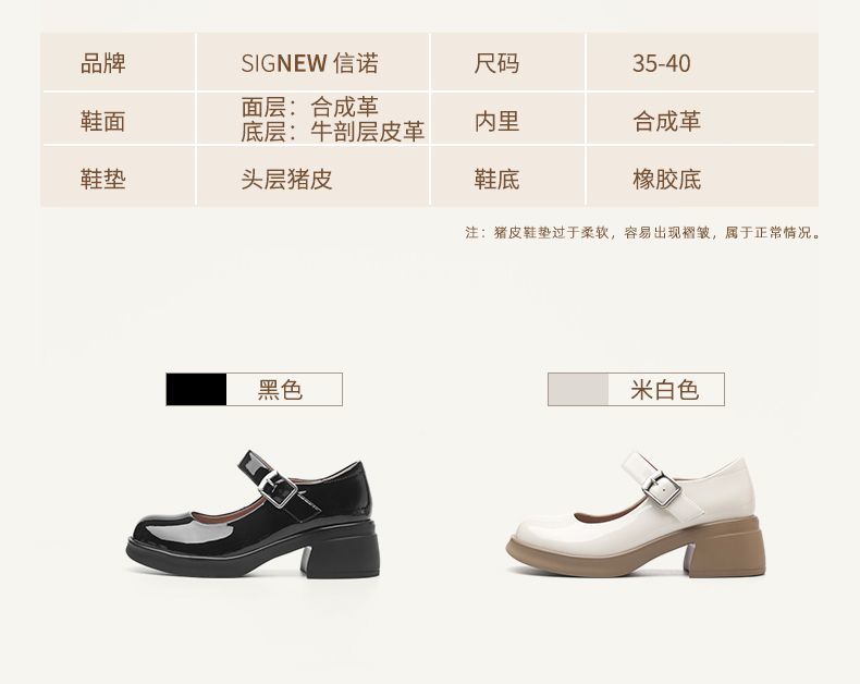 信诺厚底时尚漆皮鞋2025年春季新款浅口单鞋黑色气质增高玛丽珍鞋X5C009-60