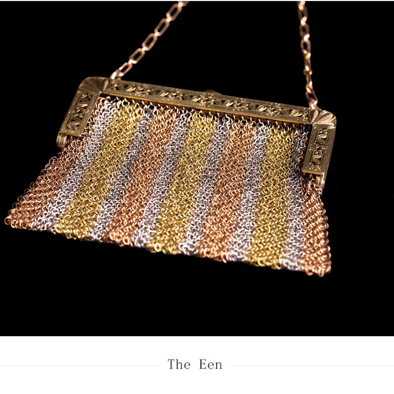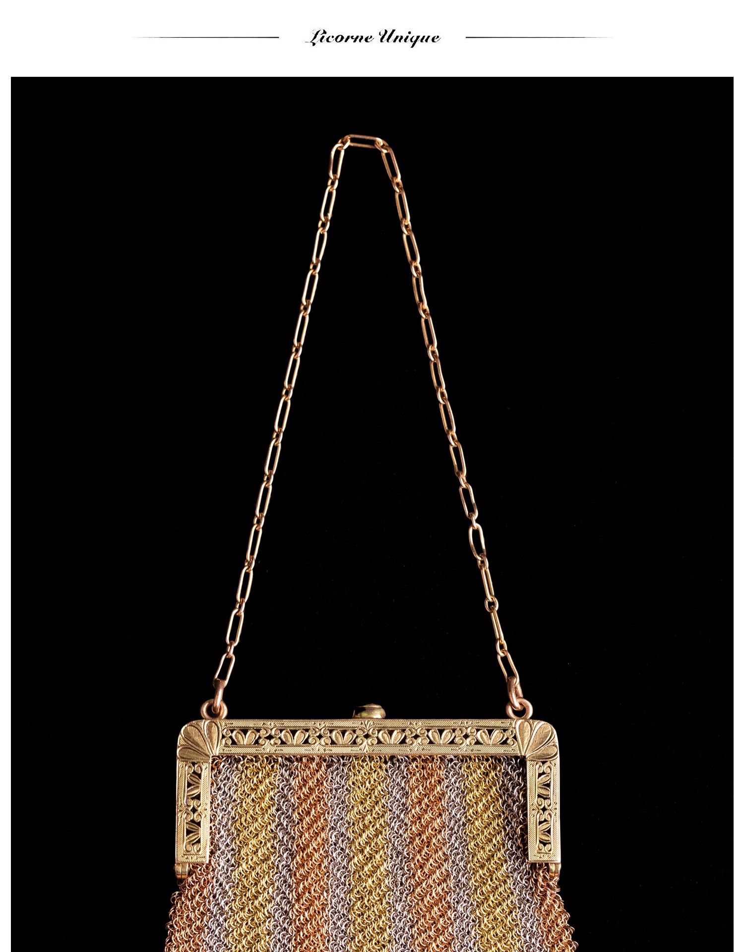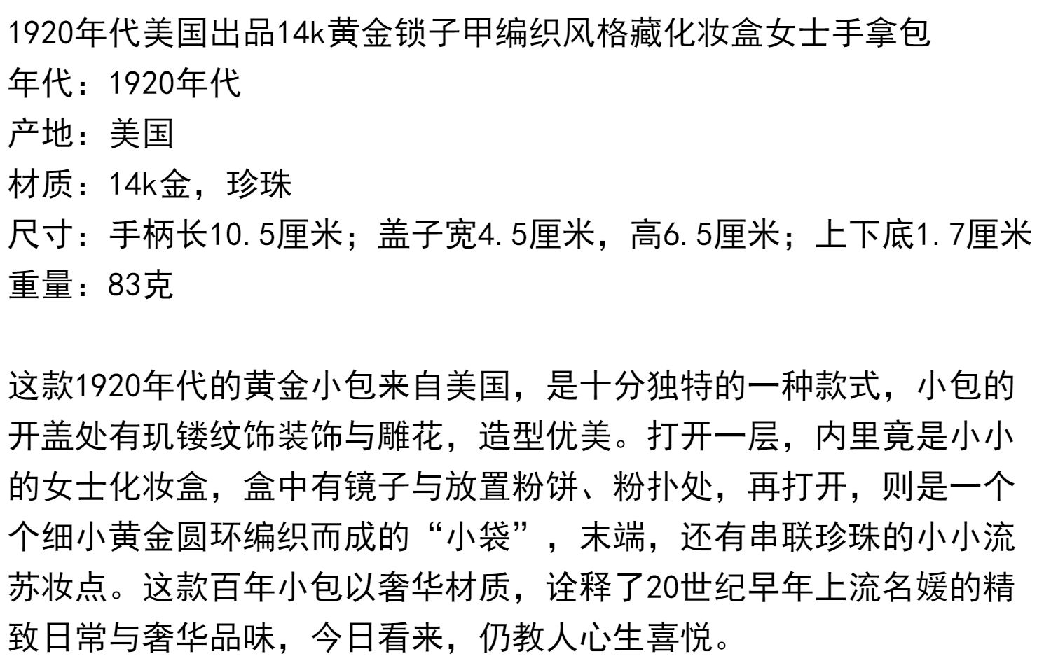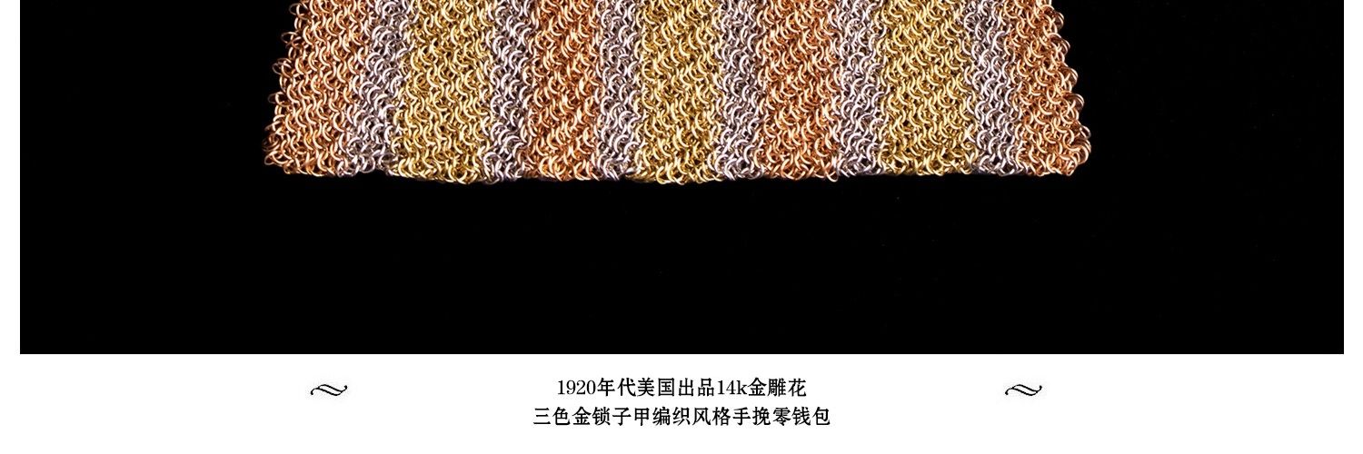 独角鹿西洋古董美国14K黄金锁子甲编织藏化妆盒女士手拿包晚宴包