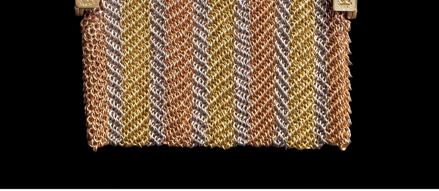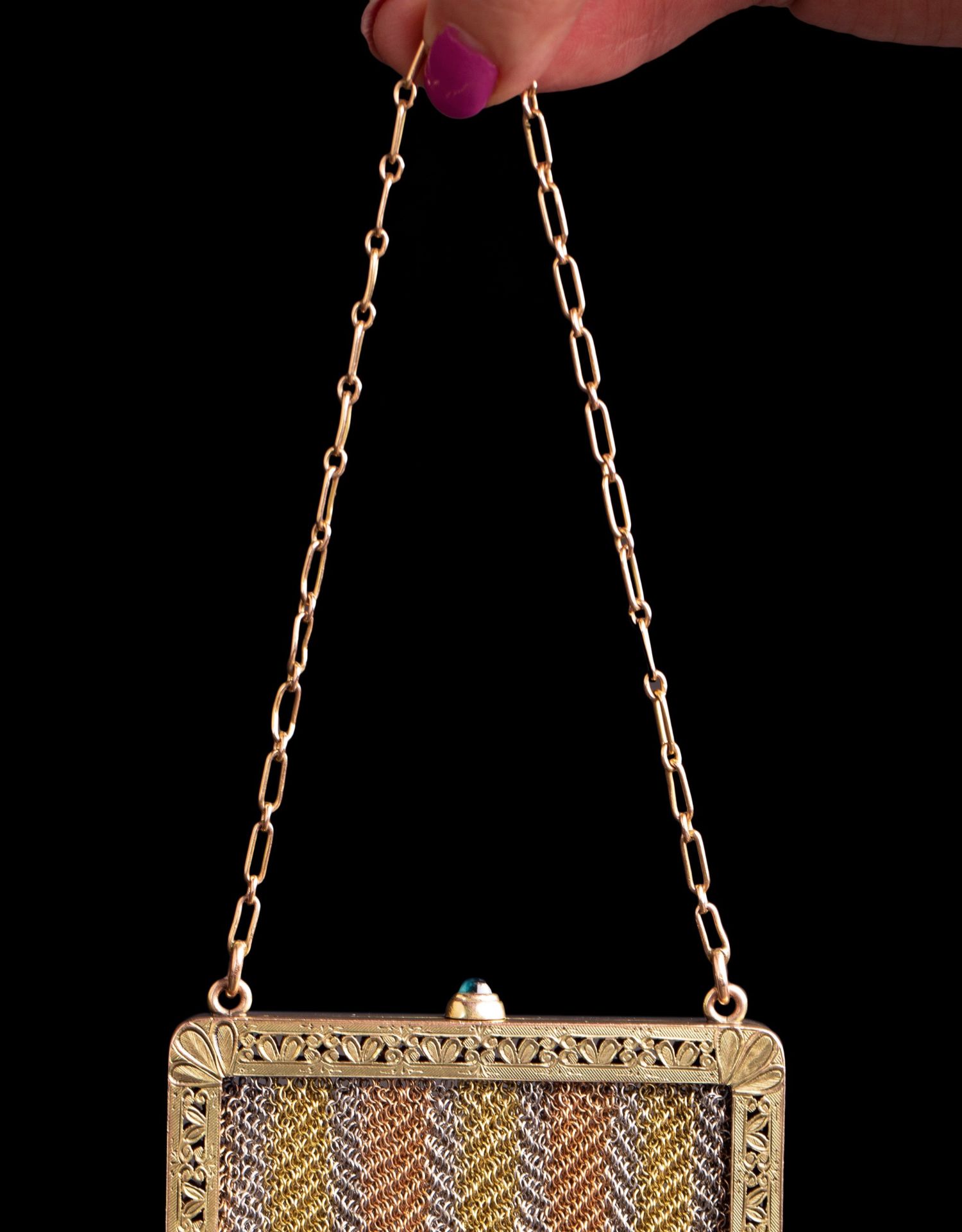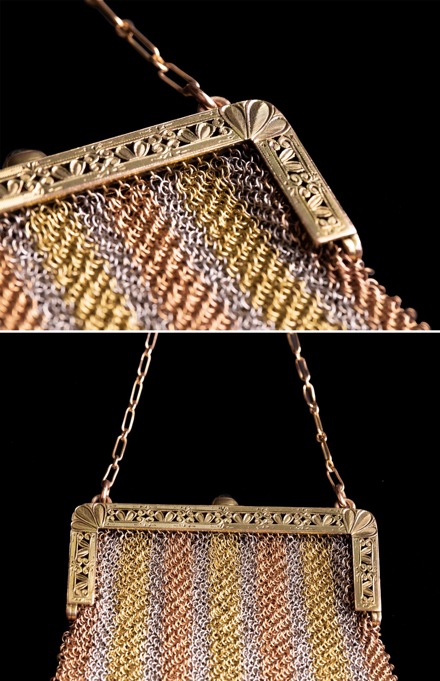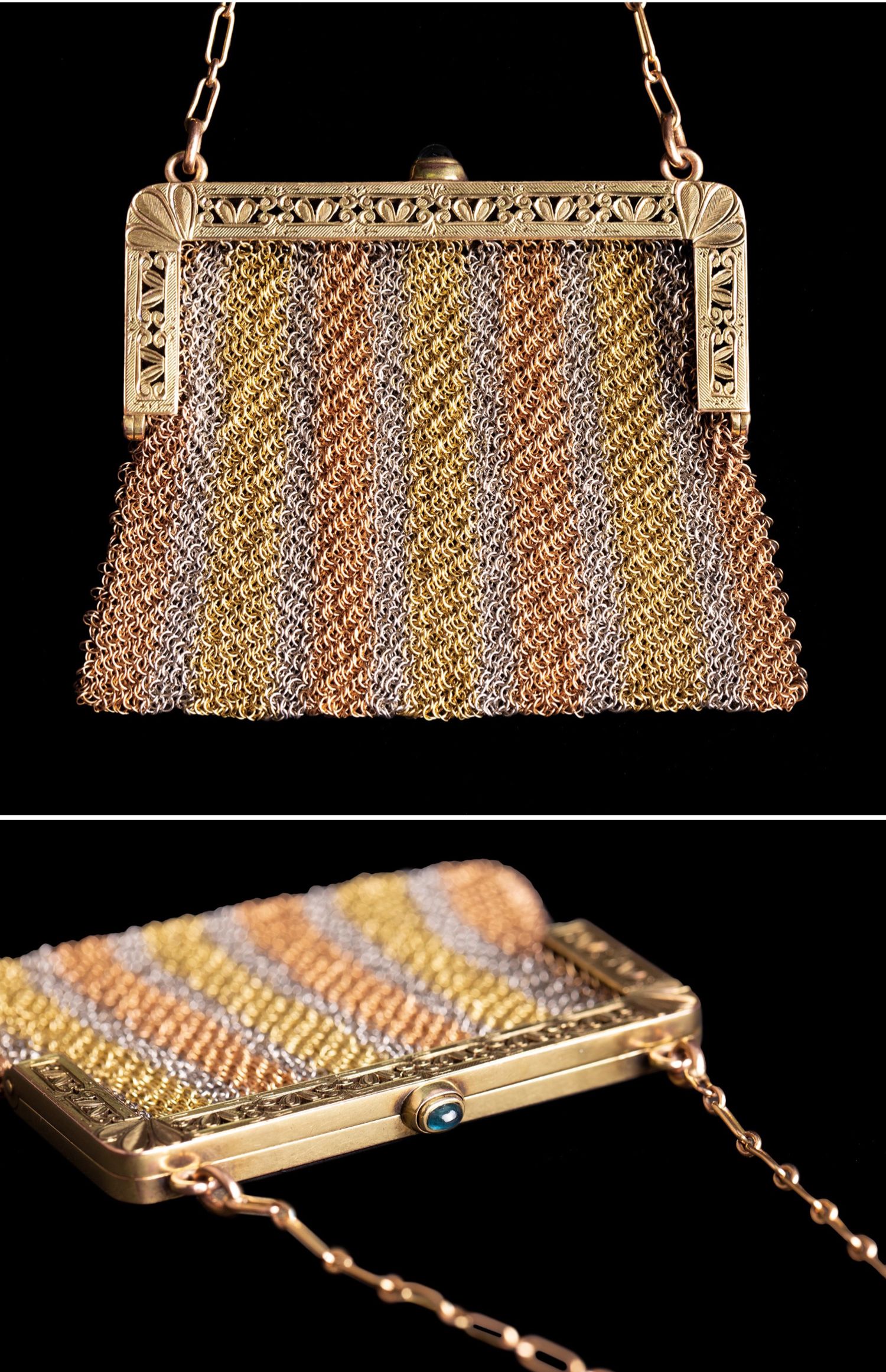独角鹿西洋古董美国14K黄金锁子甲编织藏化妆盒女士手拿包晚宴包