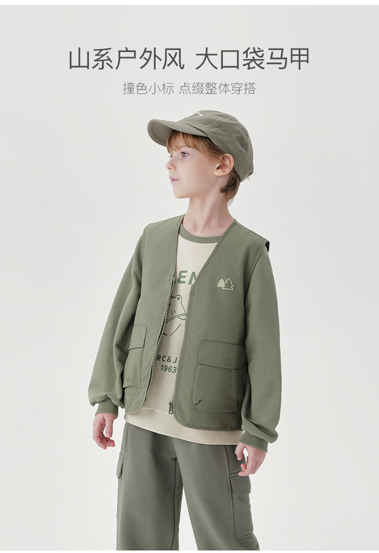 【山系户外】马克珍妮男童多口袋无袖工装风马甲上衣春秋装550352