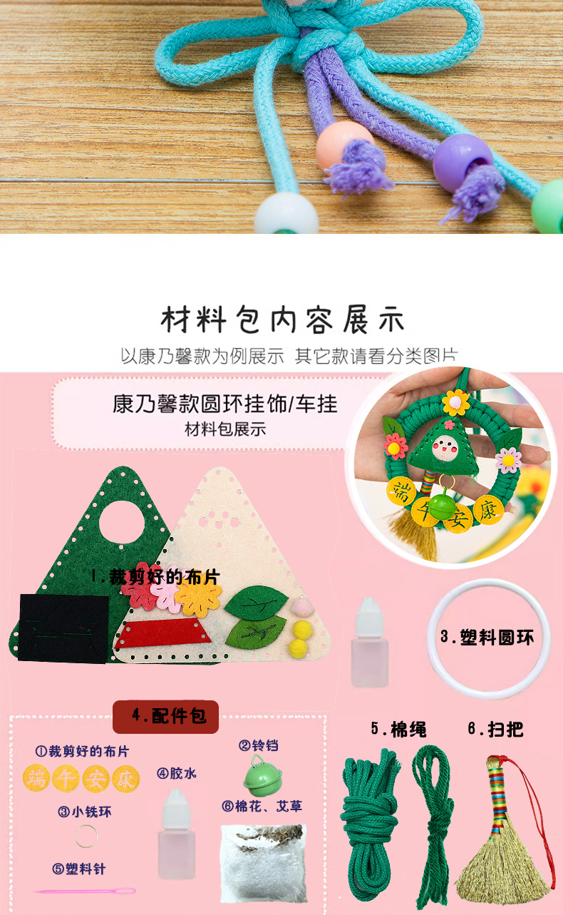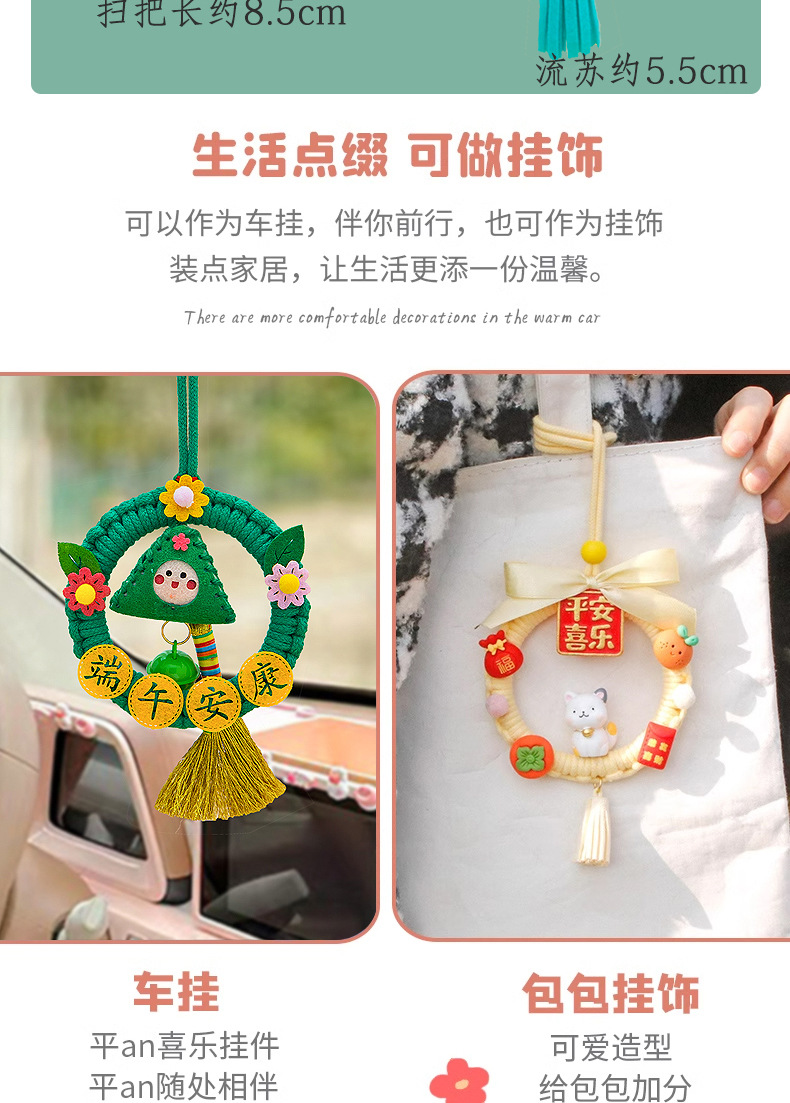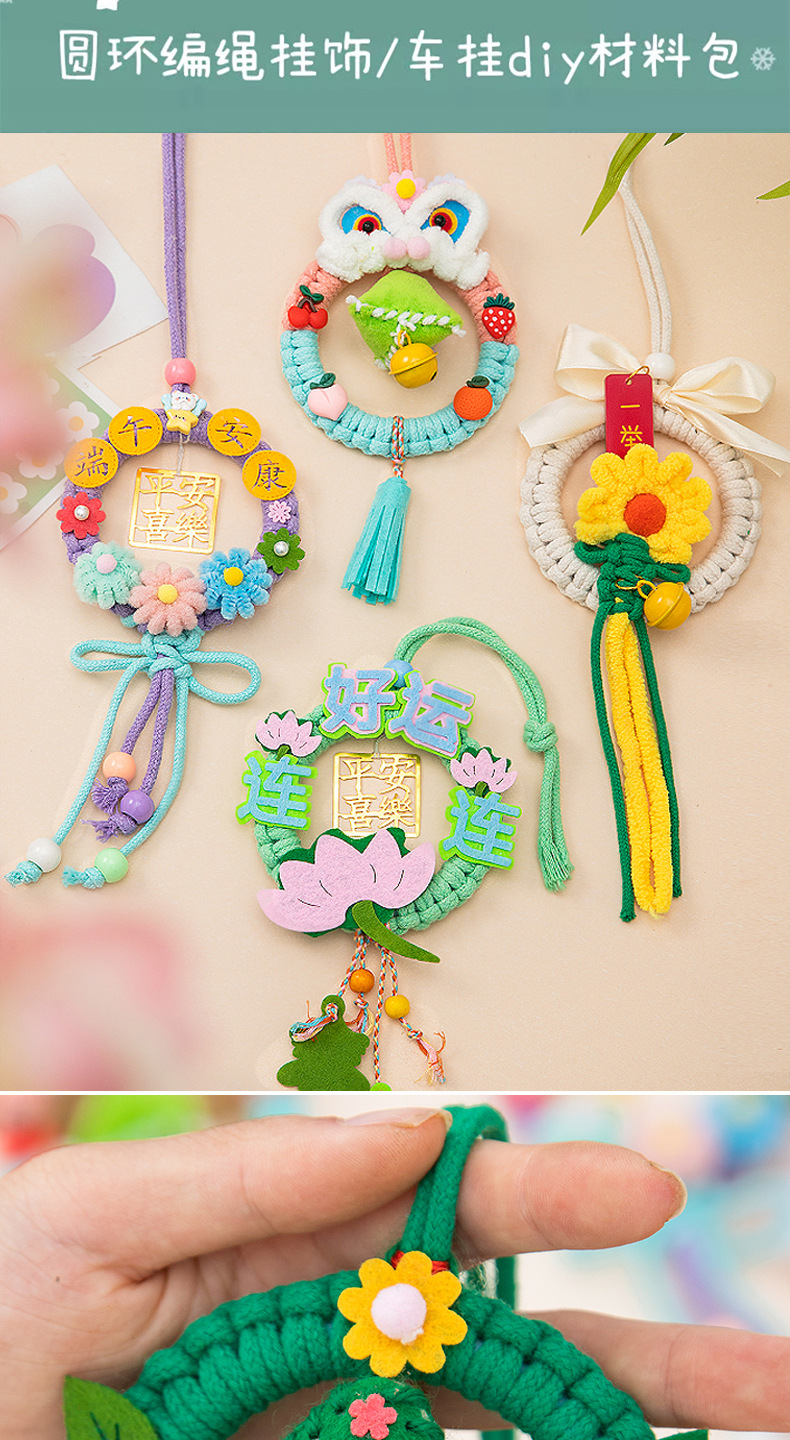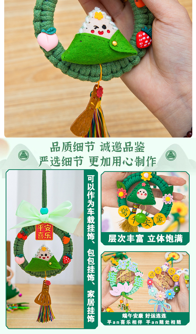 端午节粽子香包挂件diy圆环手工编织车载花环包包挂饰材料包礼物