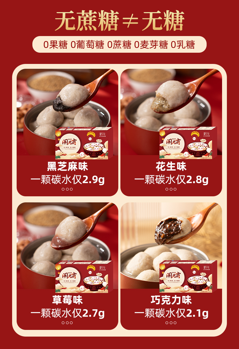 无麸质 无糖 配料干净元宵 生酮饮食可吃 208g/1盒8个 糖学友