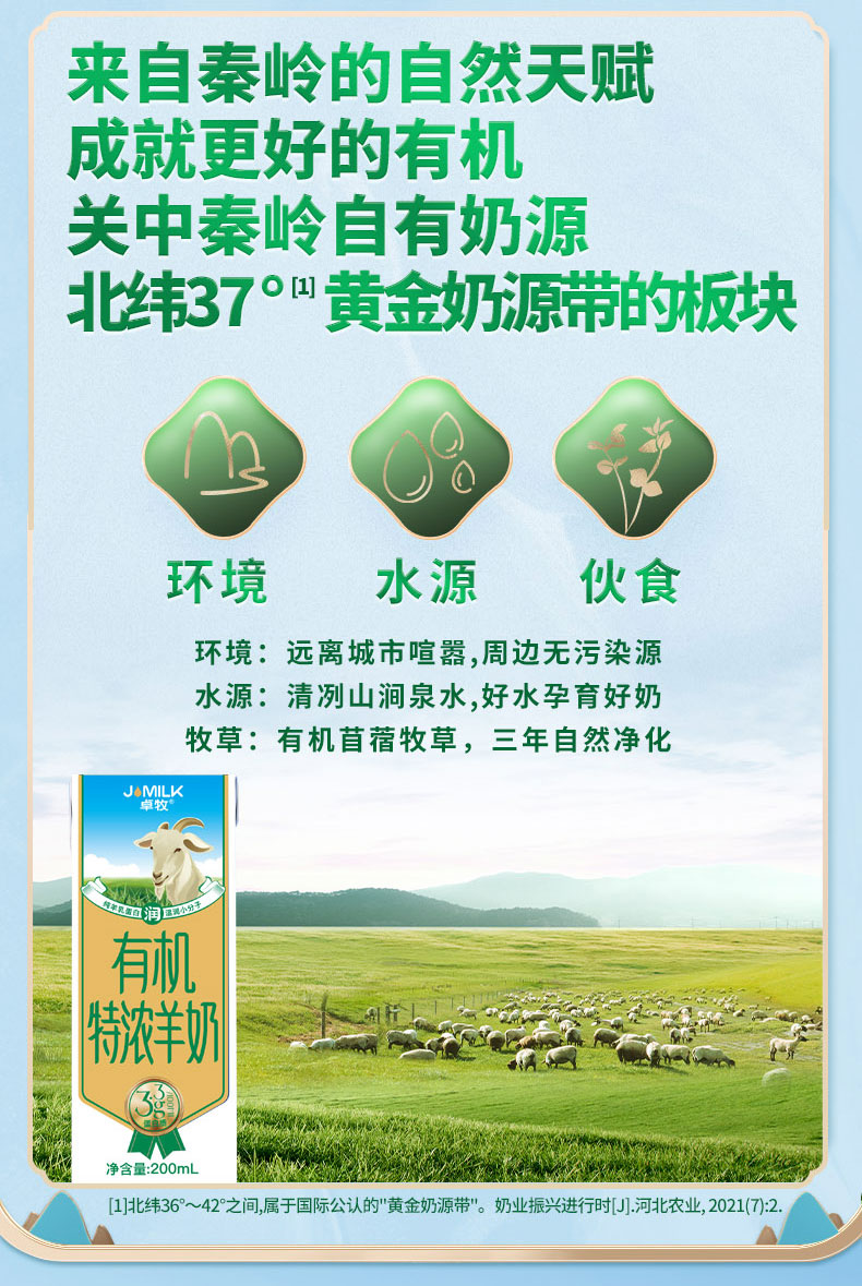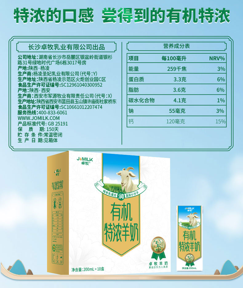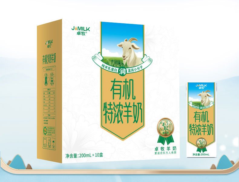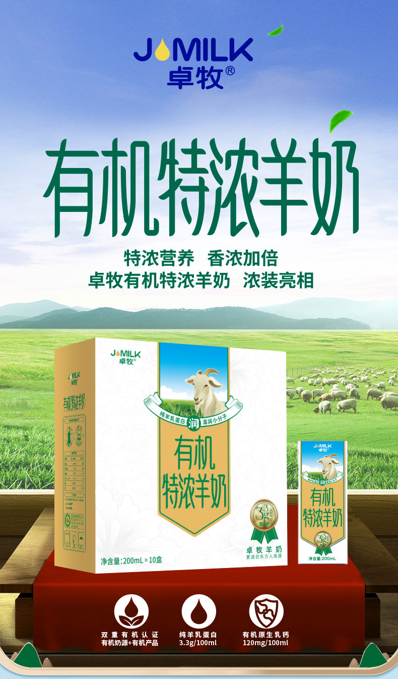 【超低囤货价】卓牧(JOMILK)有机特浓羊奶儿童成人高钙营养早餐A2羊乳蛋白200ML*10