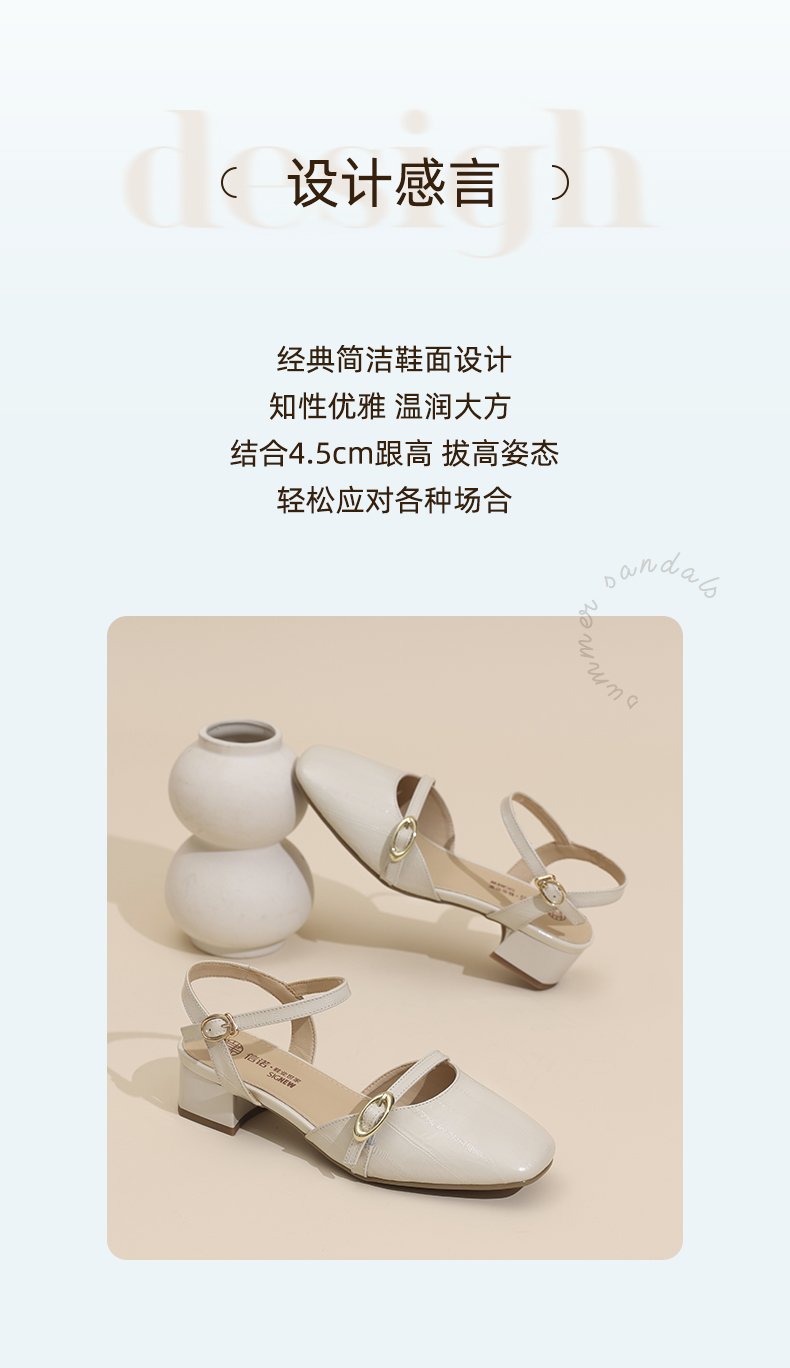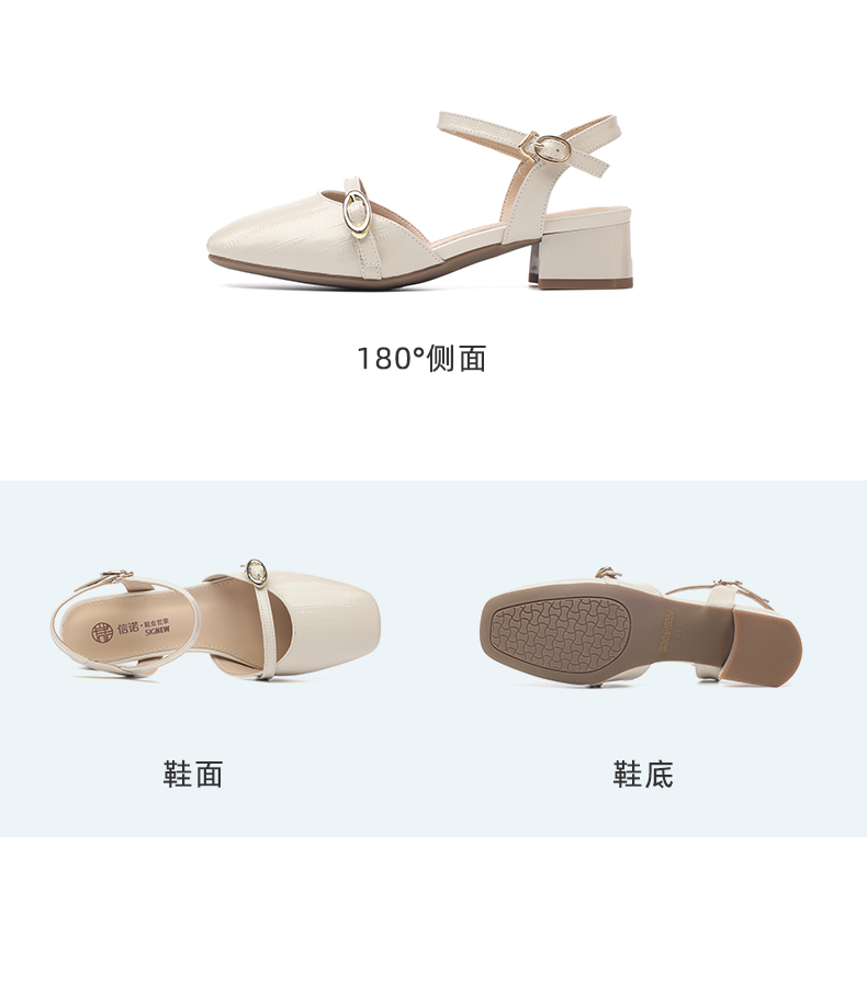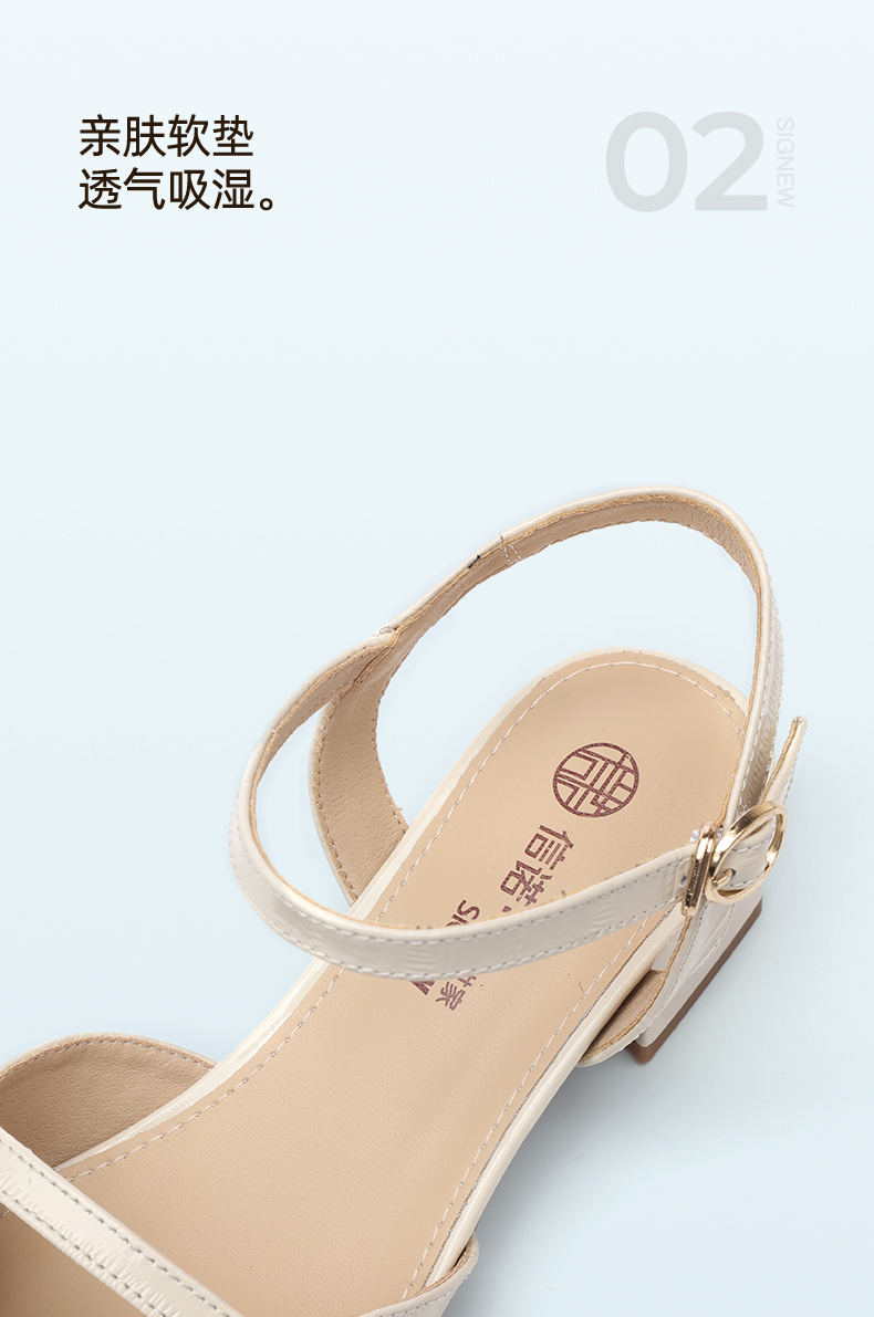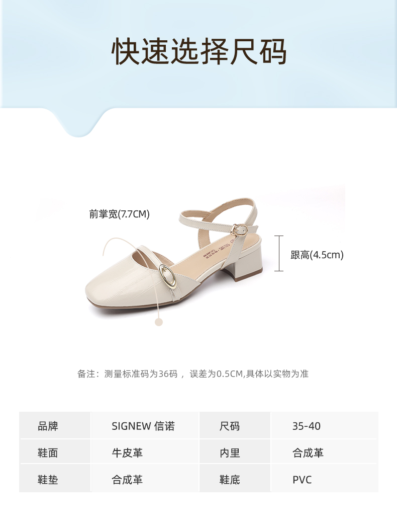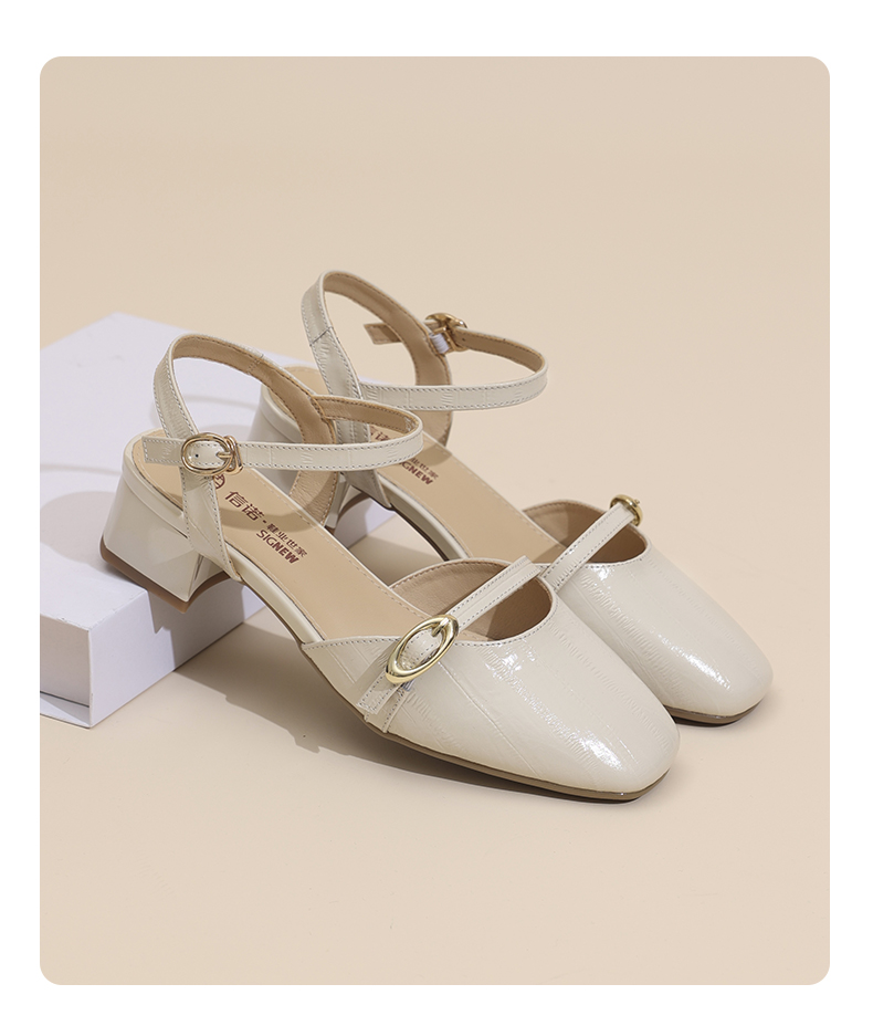 信诺妈妈凉鞋女2025新款夏季真皮法式仙女风气质包头粗跟高跟鞋X5L137-101