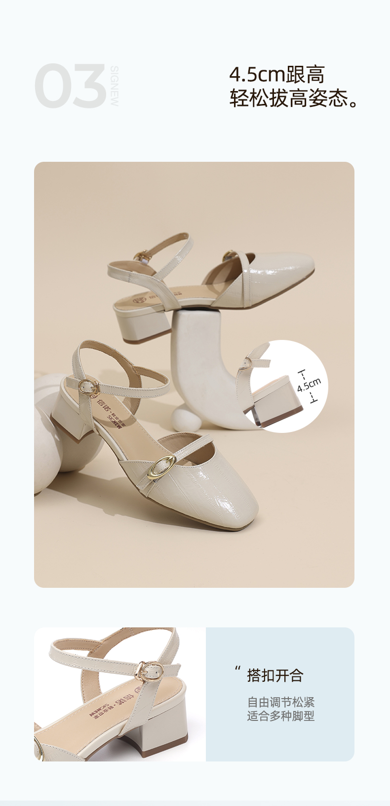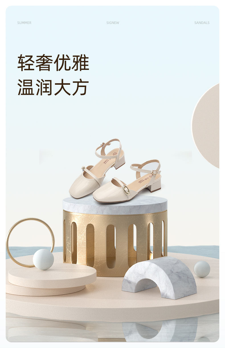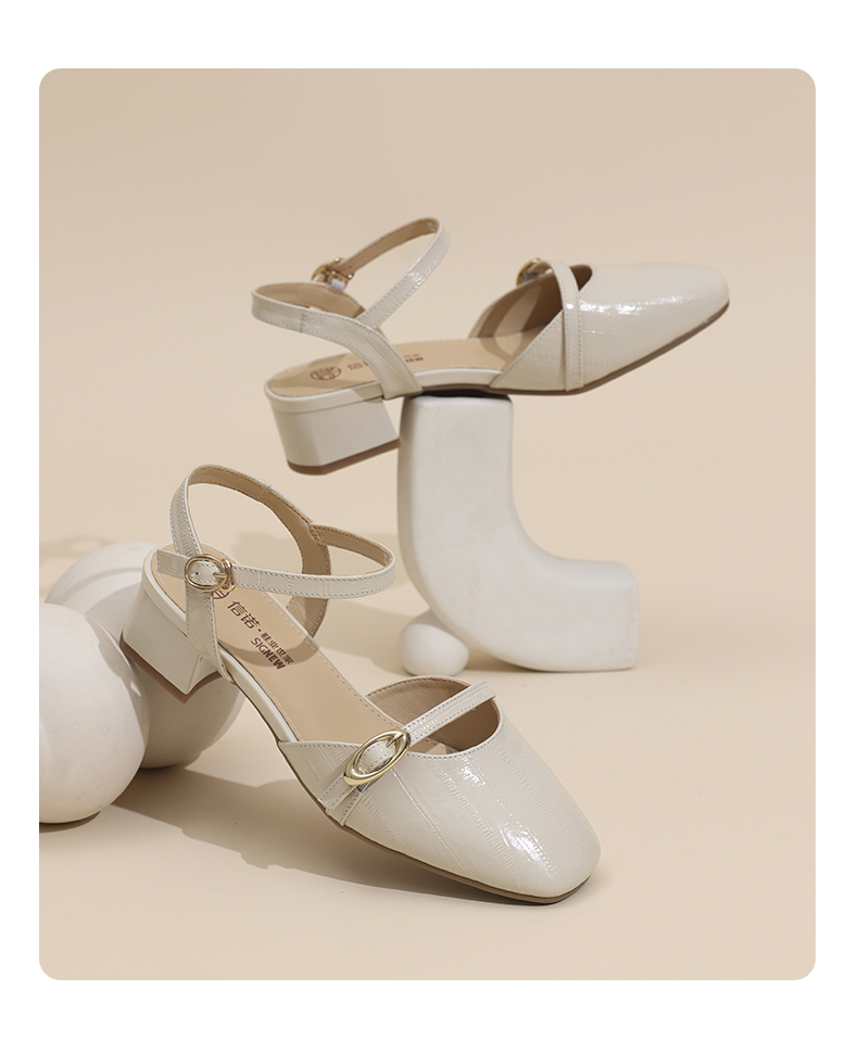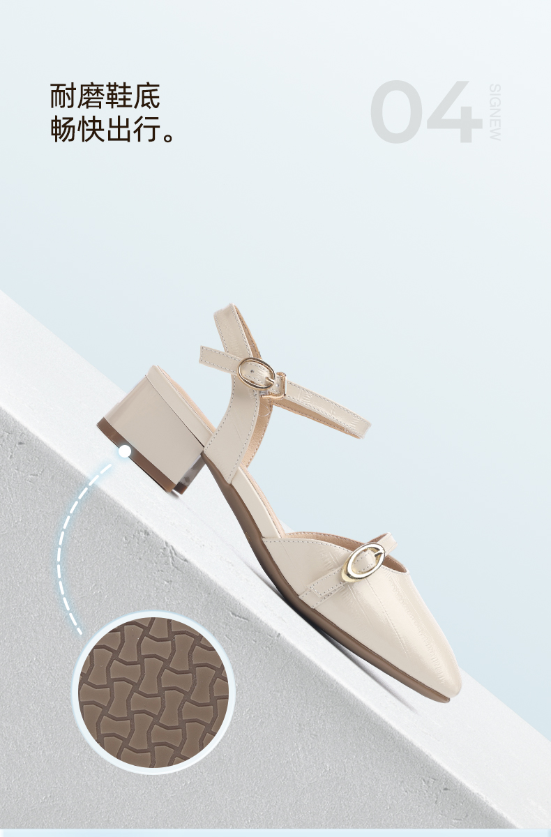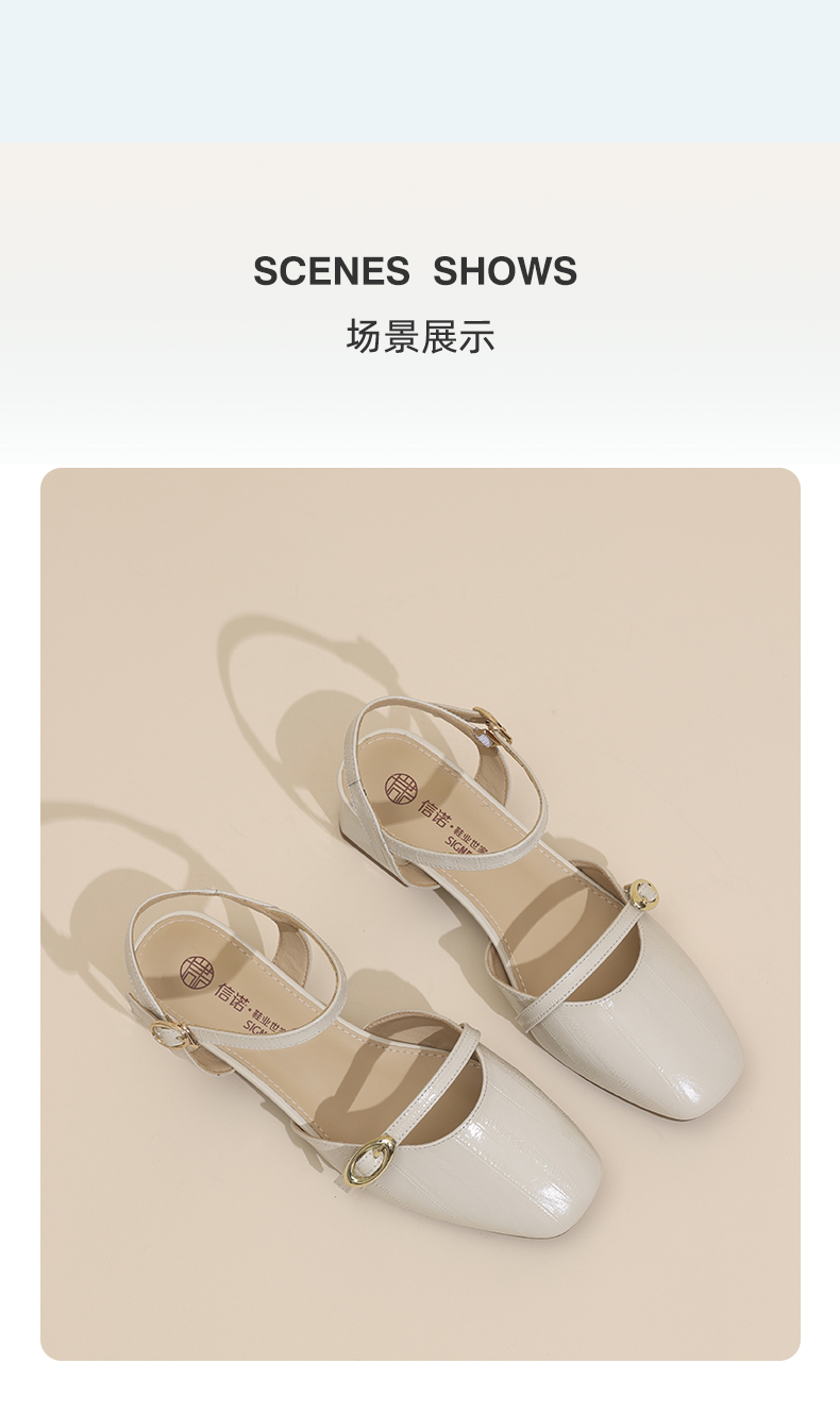 信诺妈妈凉鞋女2025新款夏季真皮法式仙女风气质包头粗跟高跟鞋X5L137-101