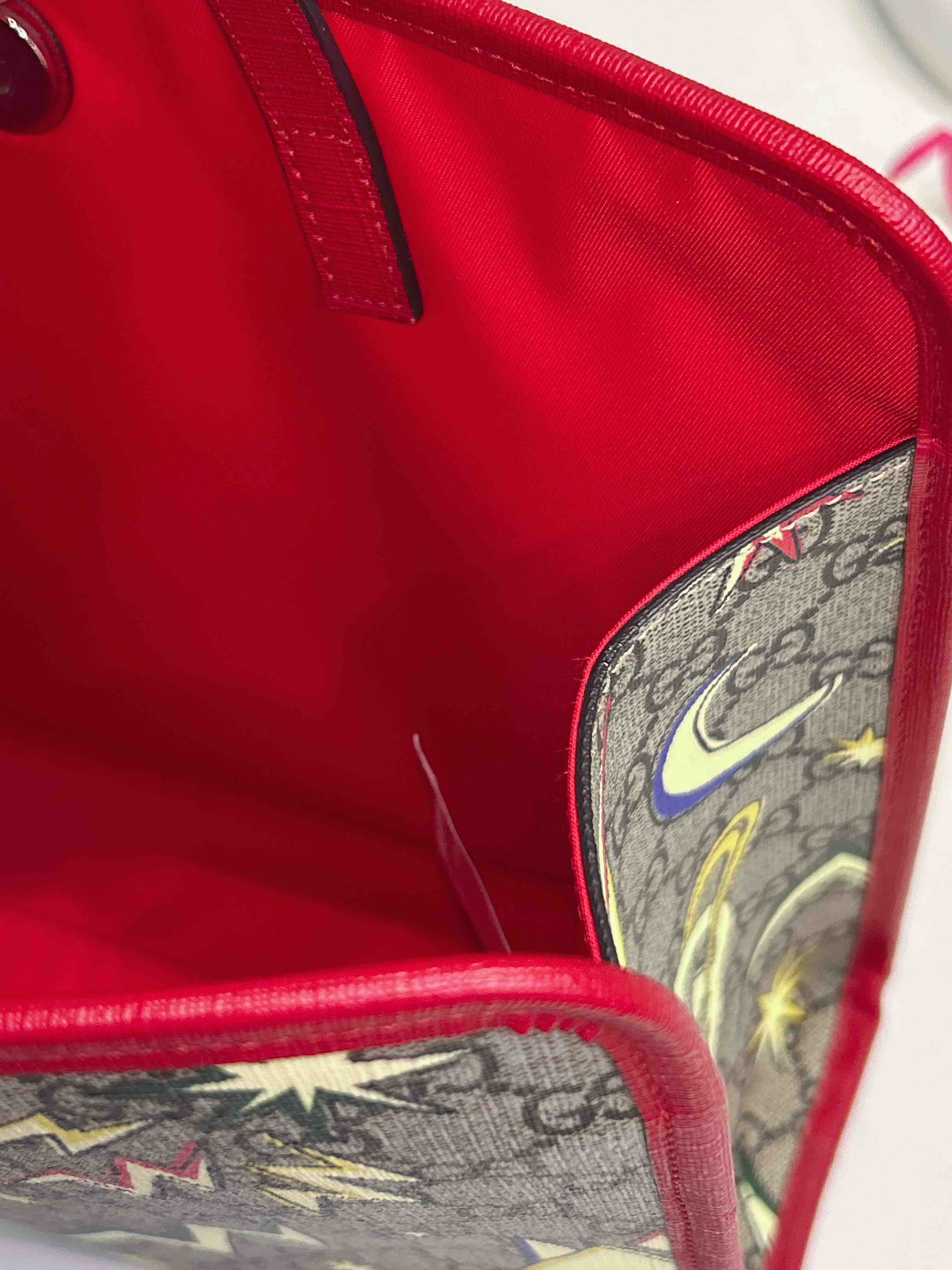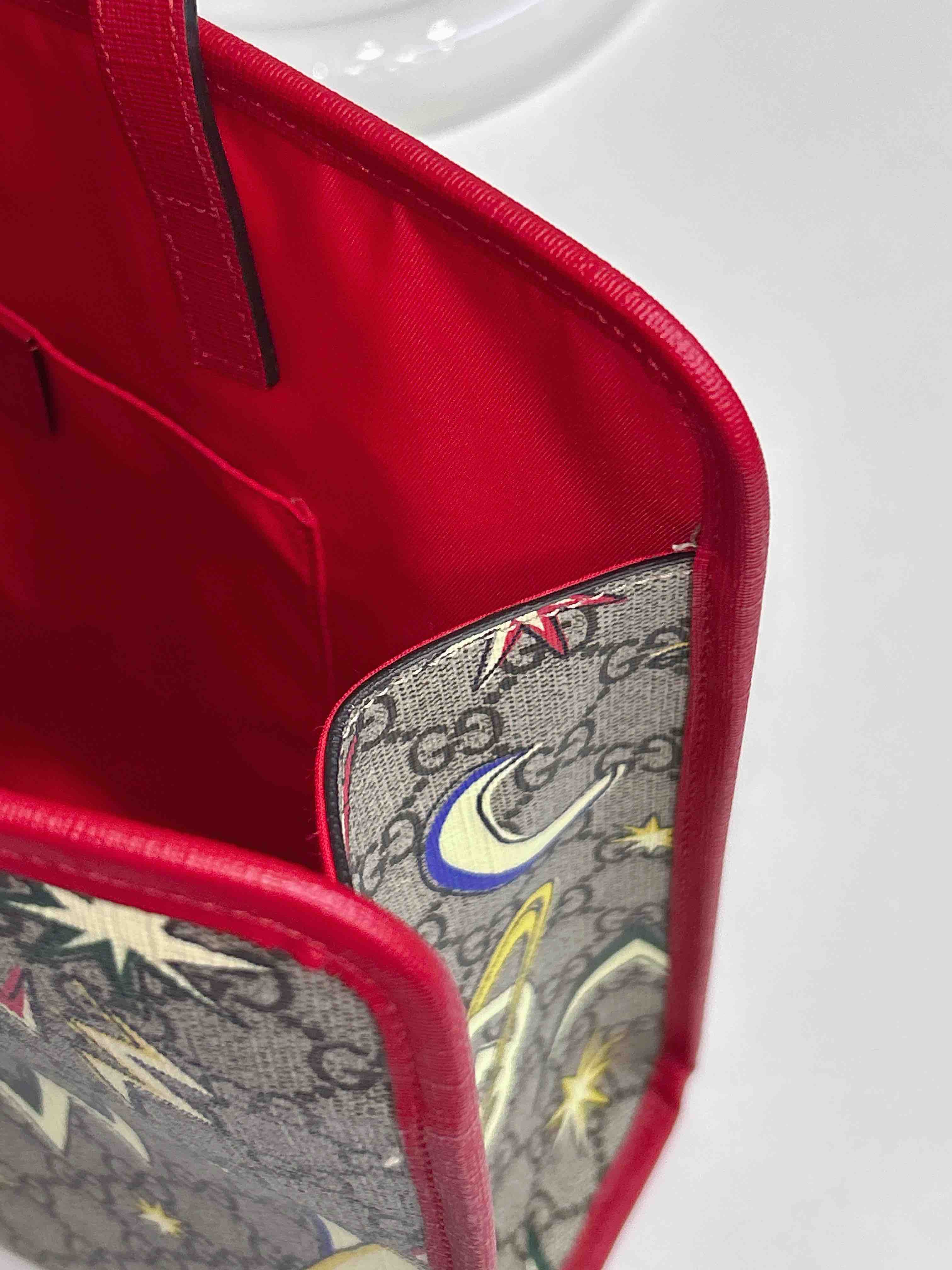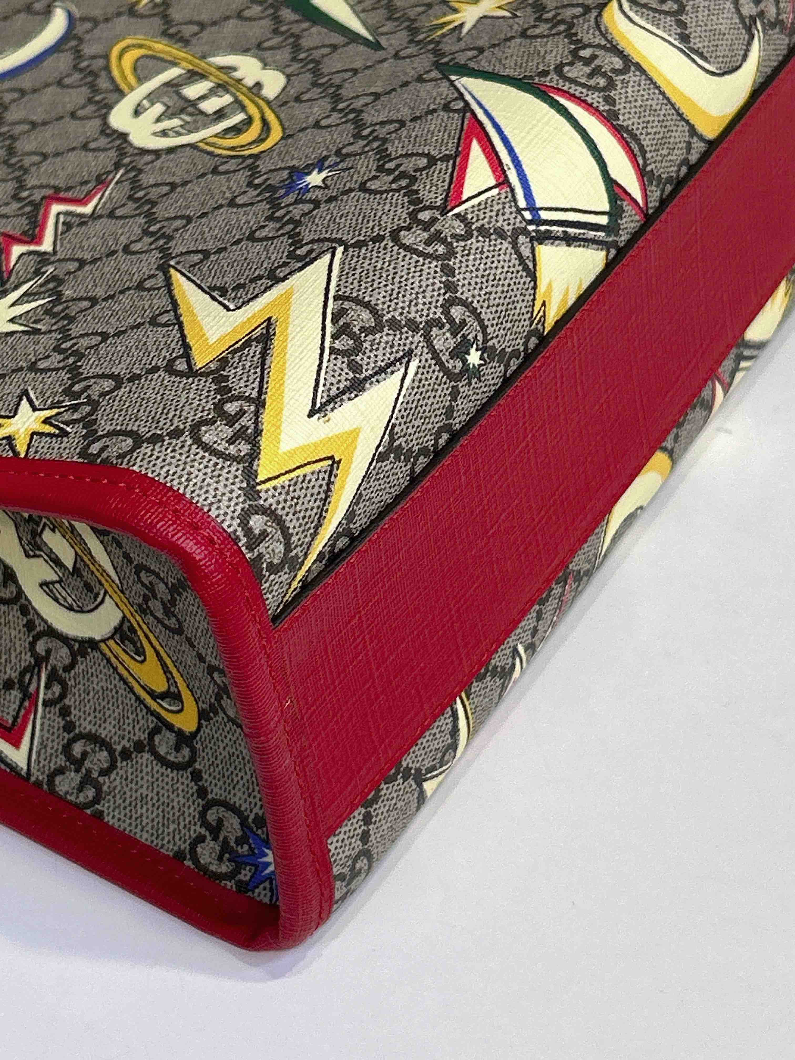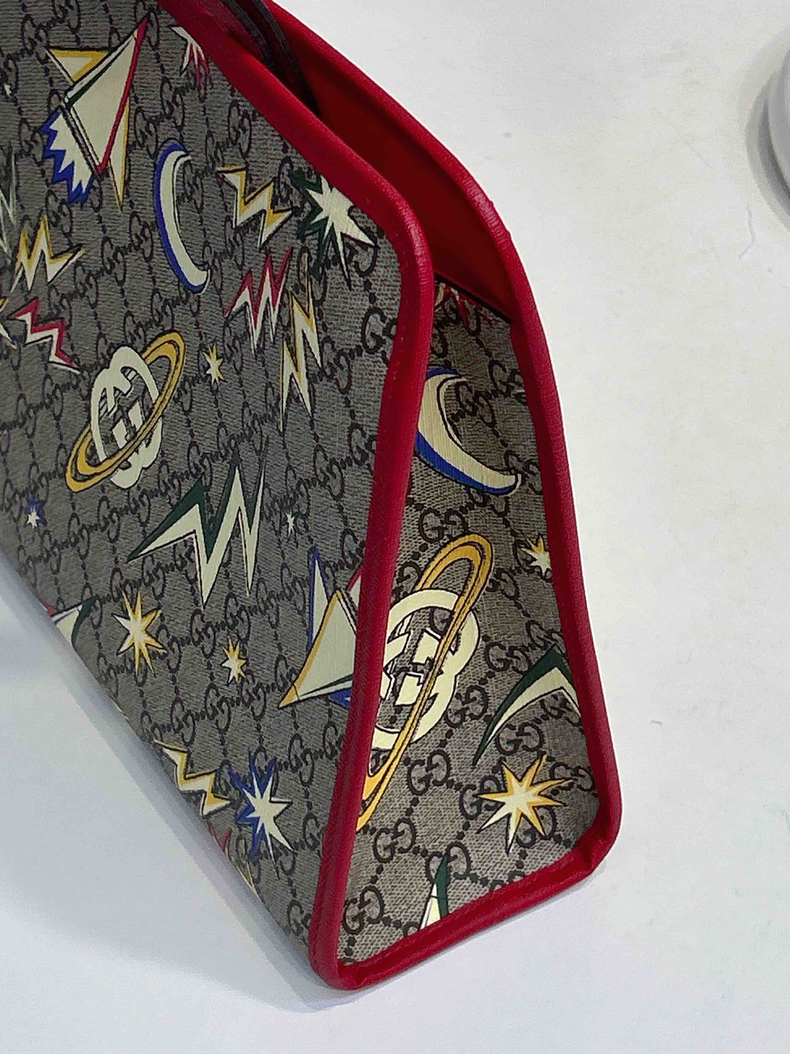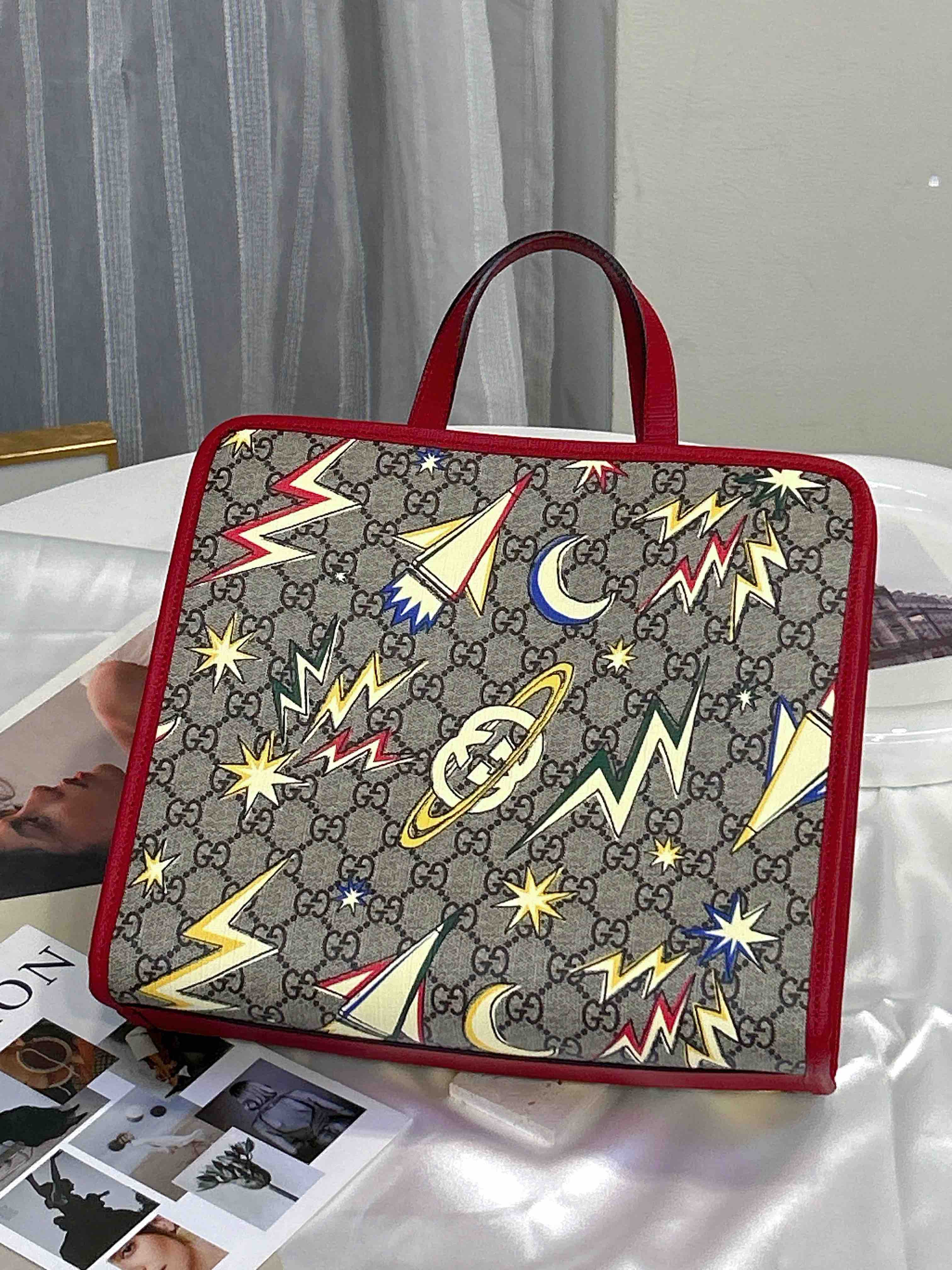【商品详情】正品二手 Gucci 老花拼红色 太空星月 儿童包💫97新 28*24 配件:说明书。内里有一处小污渍。涂鸦彩绘童真可爱