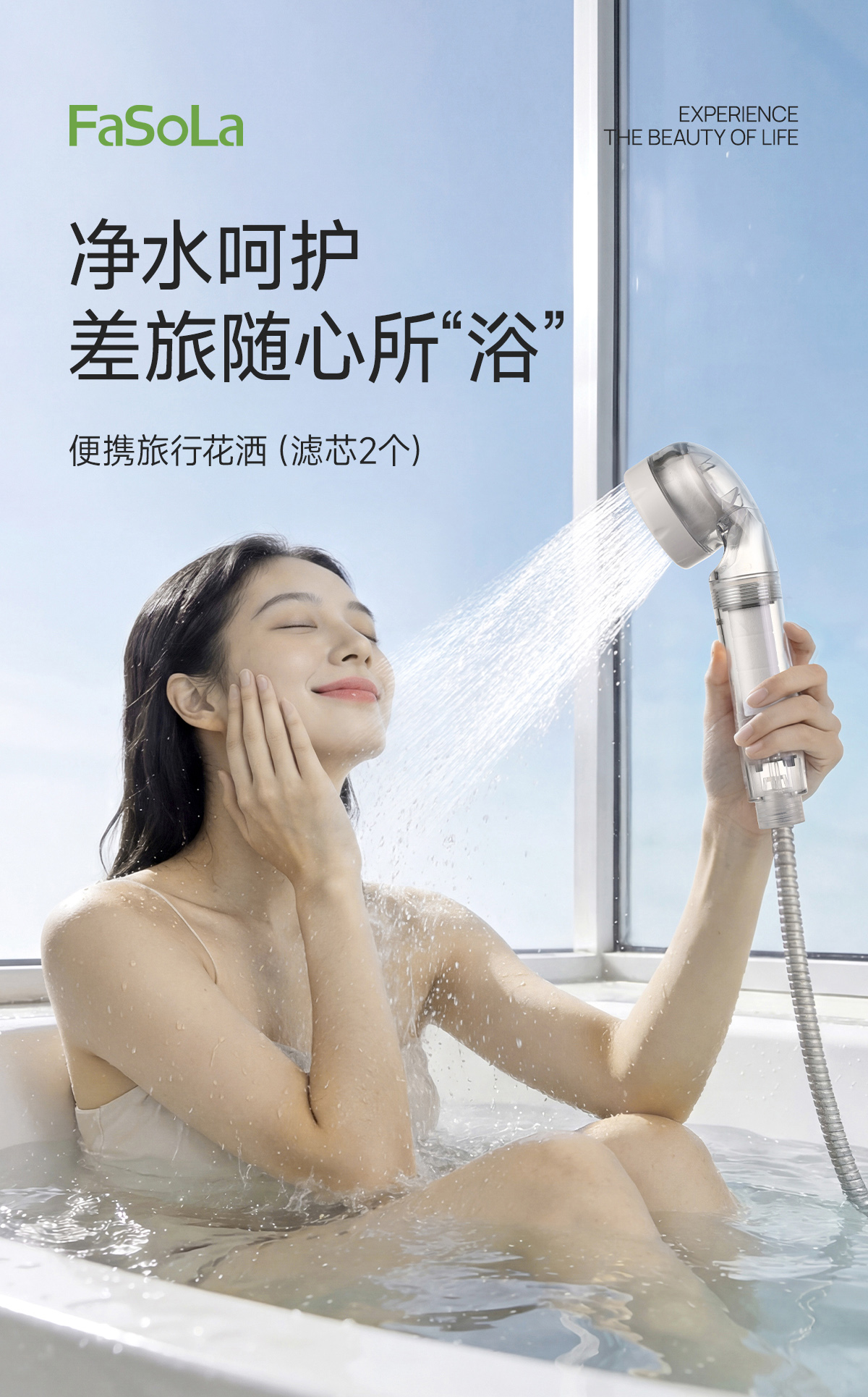 FaSoLa旅行花洒过滤器轻巧便携式淋浴喷头出差旅专用增压净水器