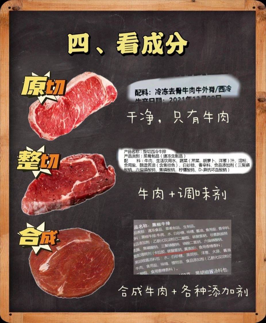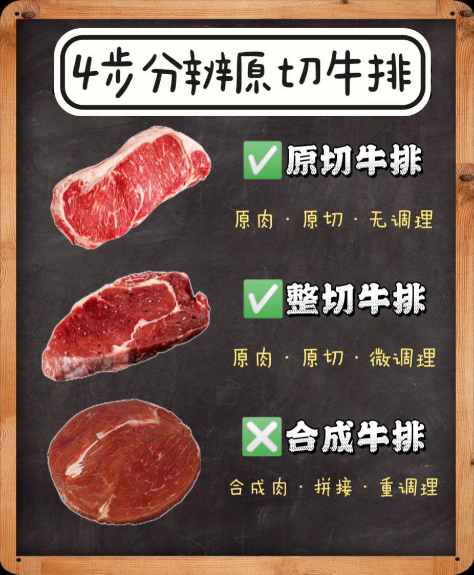 ✅国家规定:原料表上只有“牛肉”或者“牛肉部位”的牛排,才是真正的原切牛排!!