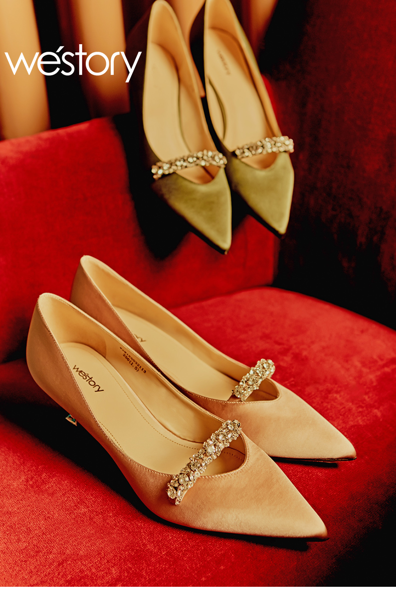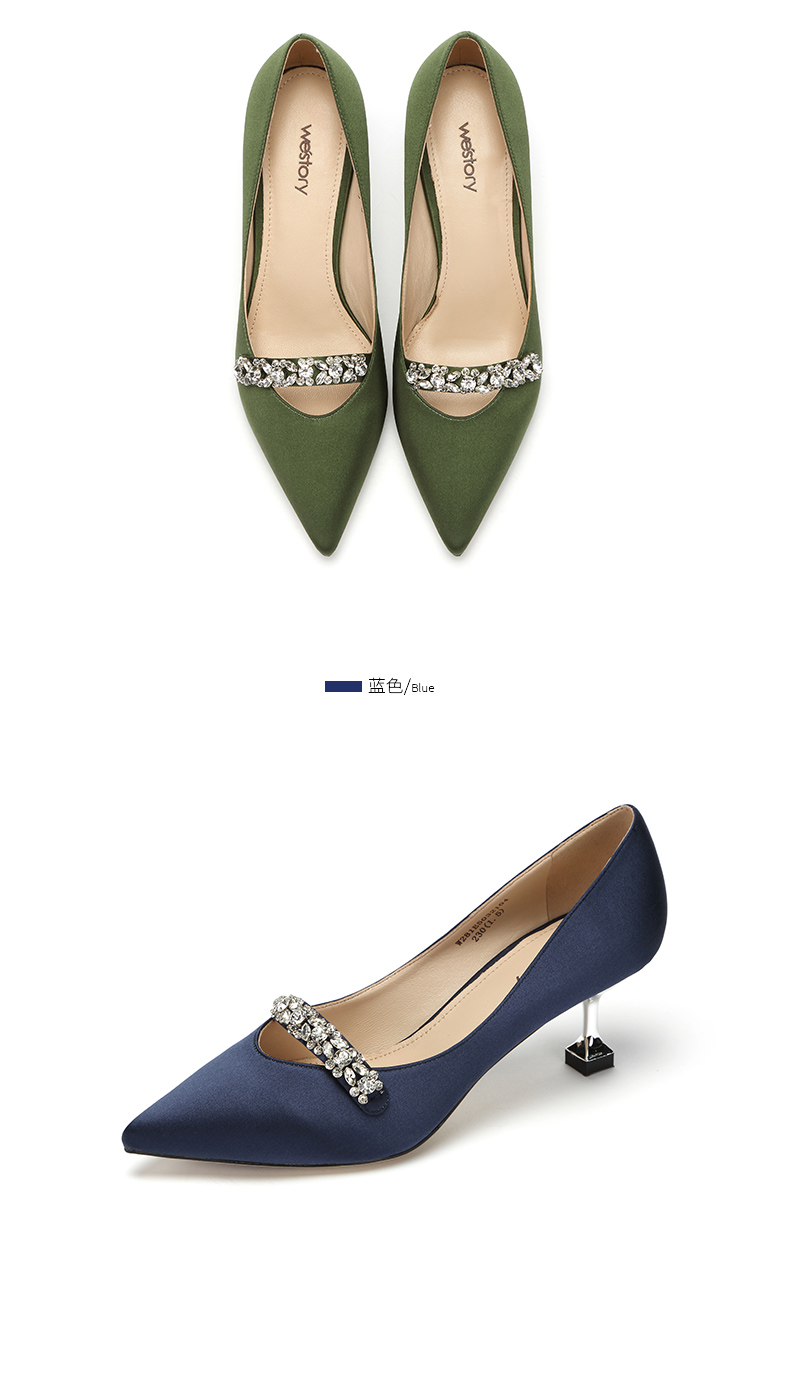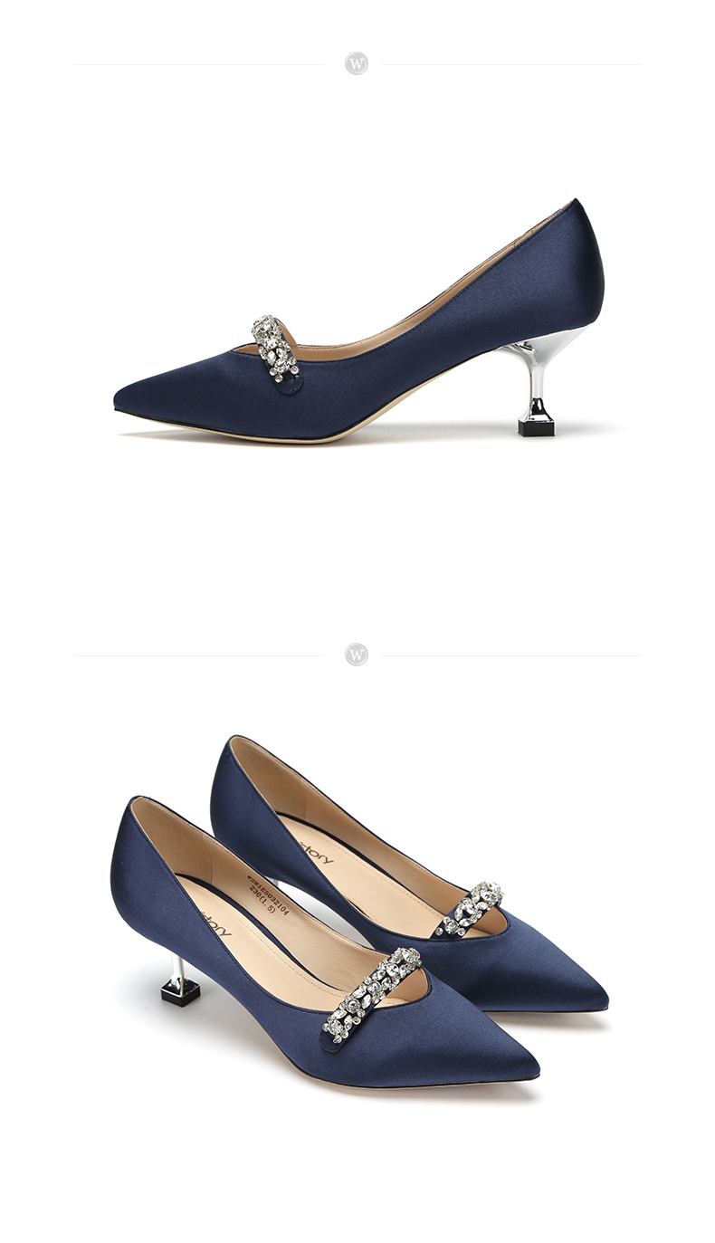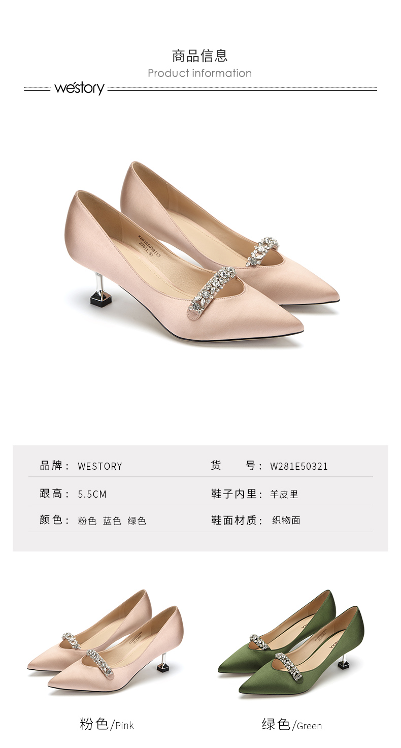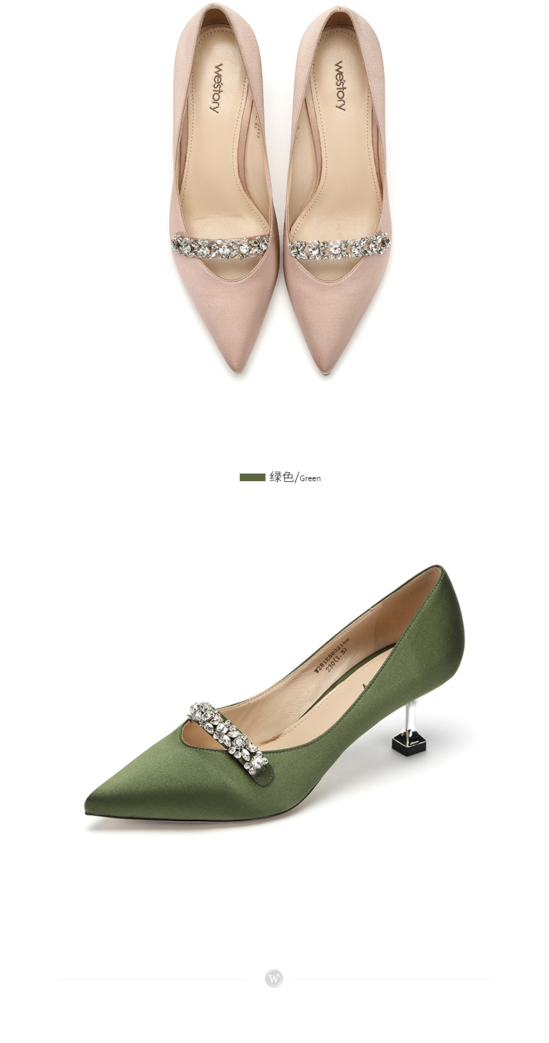 westory商场同款真丝布金典百搭职场社交宴会中根尖头女单鞋W281E50321