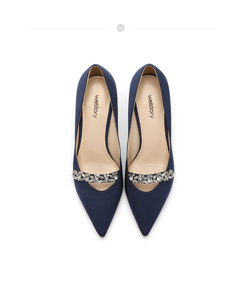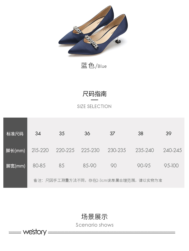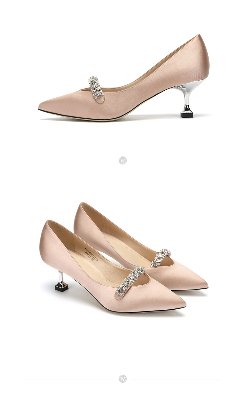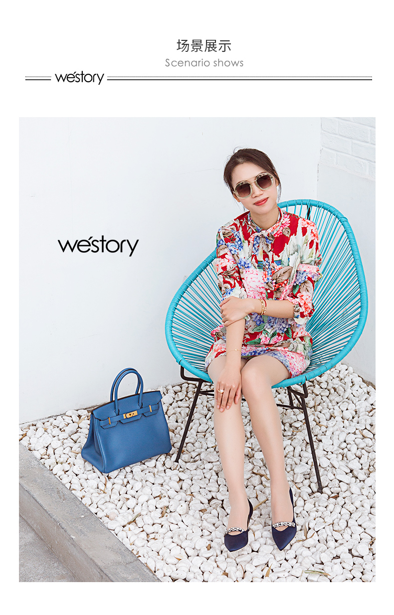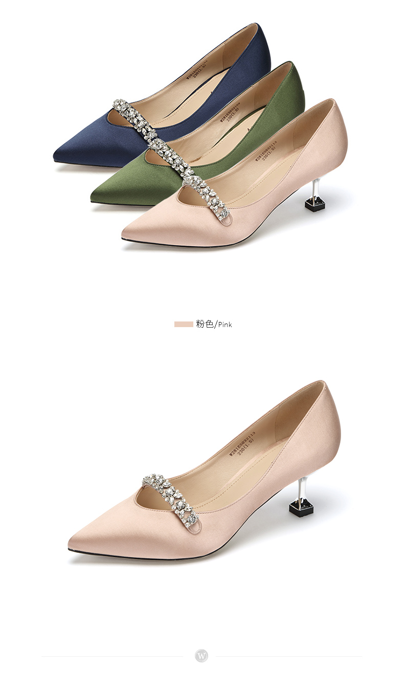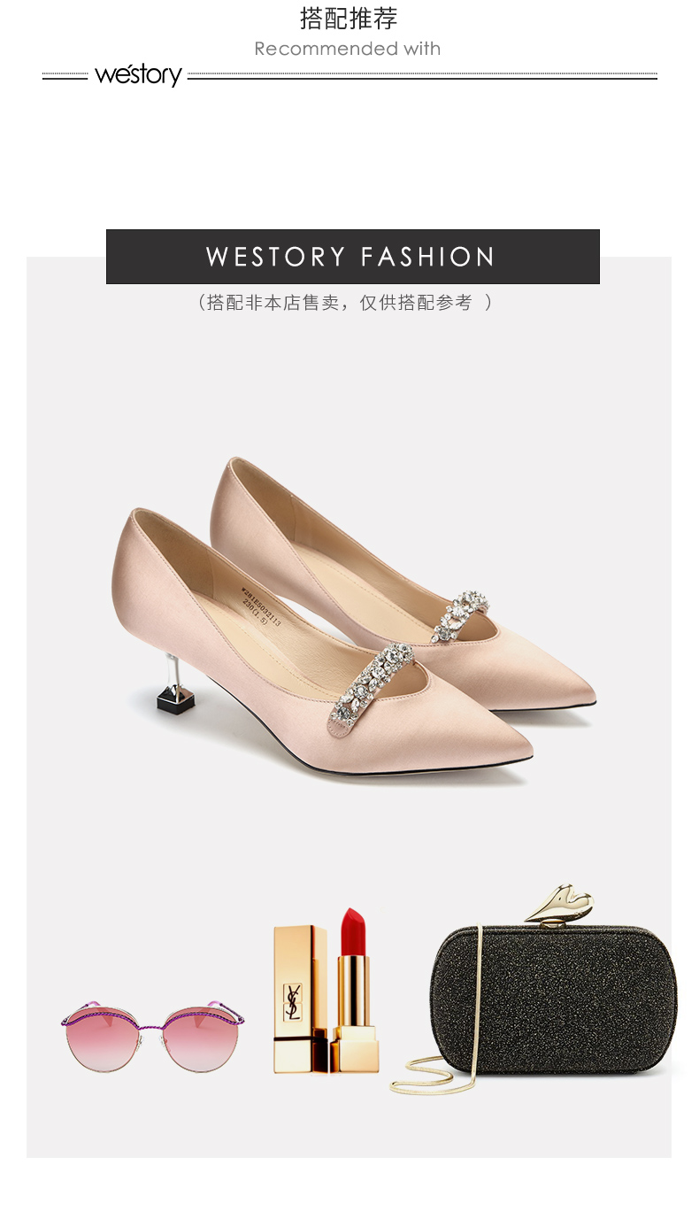 westory商场同款真丝布金典百搭职场社交宴会中根尖头女单鞋W281E50321