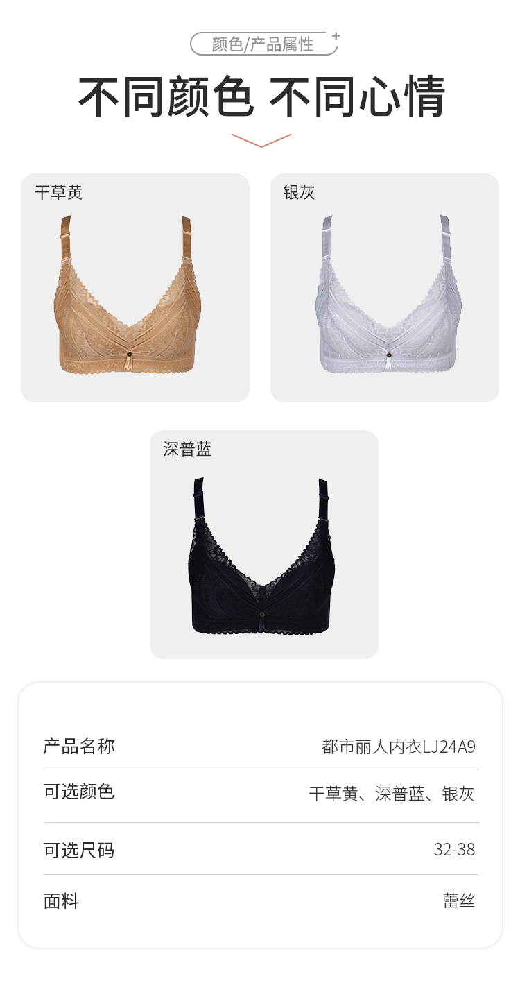 都市丽人少女三步优选AB杯调整型文胸蕾丝AB:中厚3/4杯少女文胸三排扣无钢圈LJ24A9